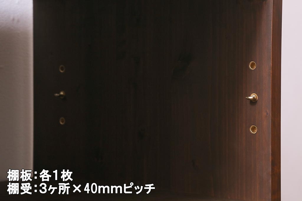 ラフジュ工房> オープンラック・シェルフ> ディスプレイラック > ラフジュ工房オリジナル 古金具リメイク 前板栗材 大正期 丸金具 使い勝手の良いローボード(テレビ台、テレビボード、収納棚)(R-042851)