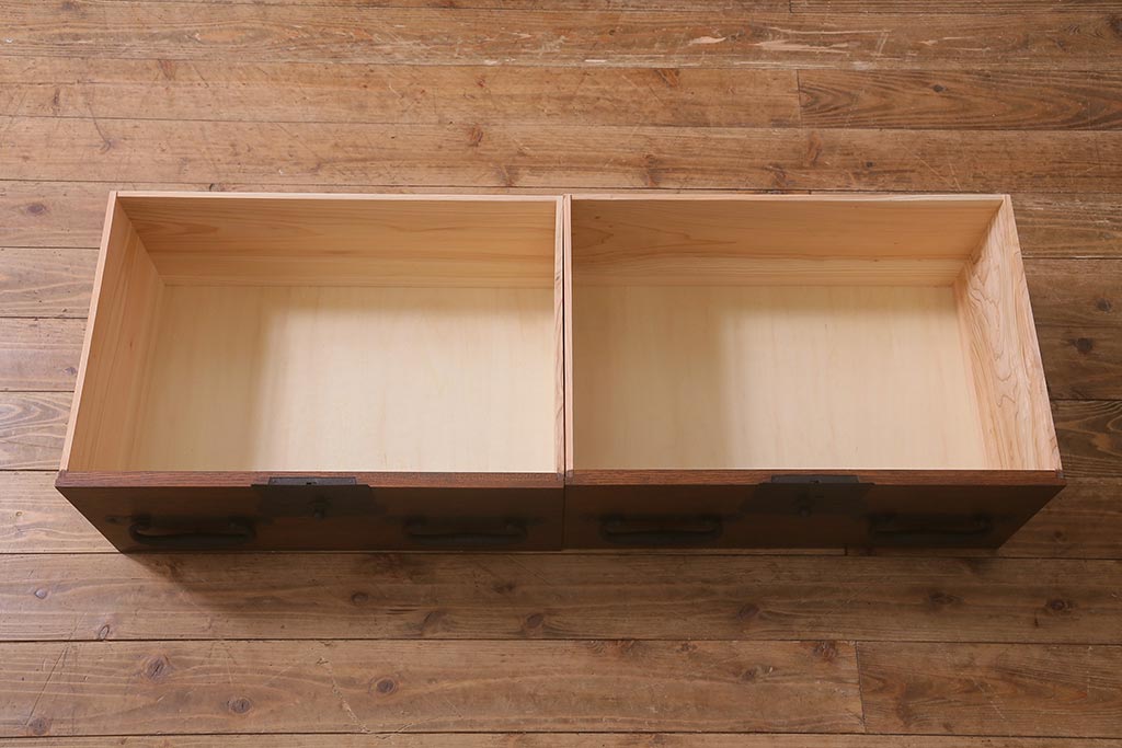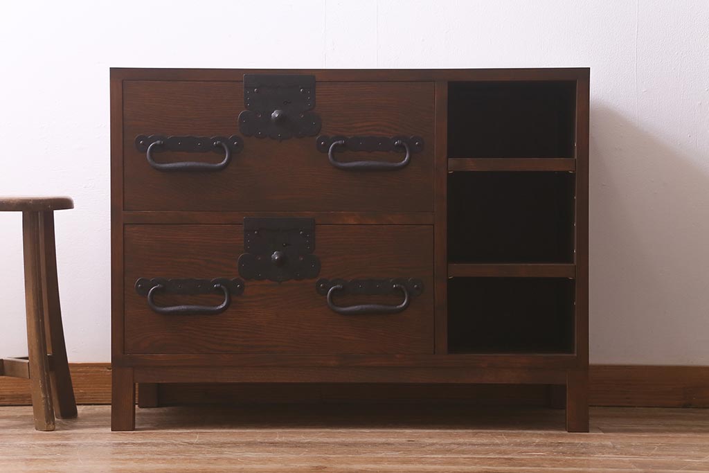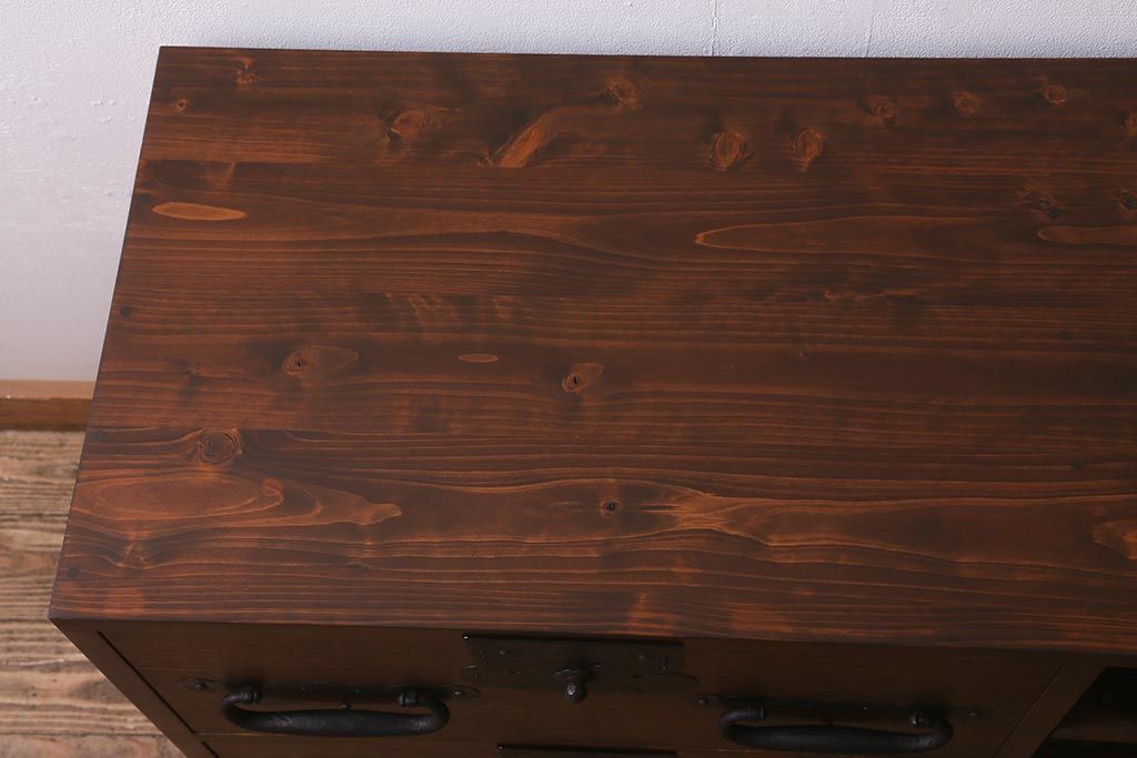 ラフジュ工房オリジナル 前板栗材 大正期 脚付き 古金具を使ったリメイクローボード(テレビ台、リビングボード、収納棚)(R-042854)