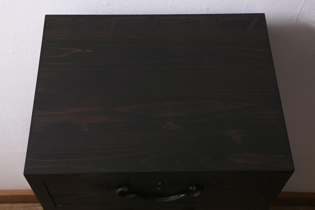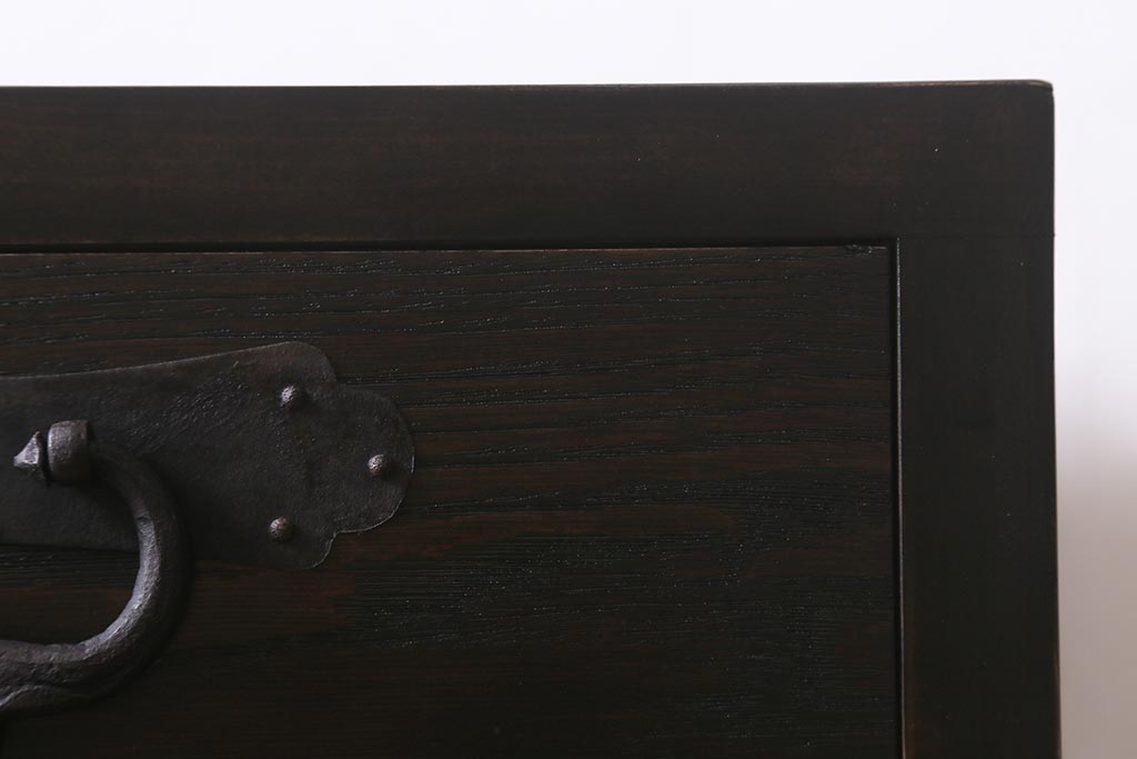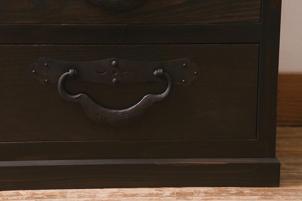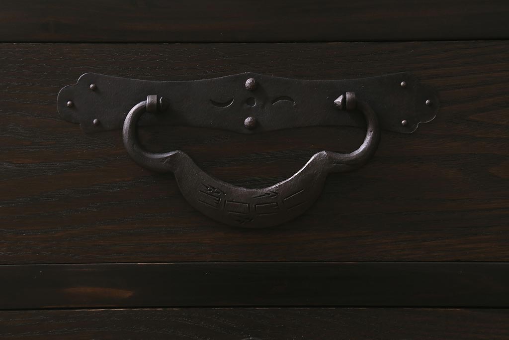 ラフジュ工房オリジナル 古金具リメイク 前板栗材 ヒノキ材 木瓜金具が趣溢れる小引き出し(小物収納、チェスト)(R-042848)です。