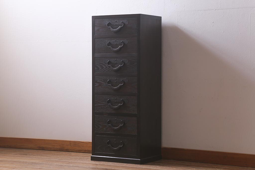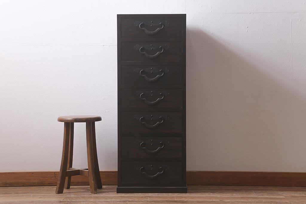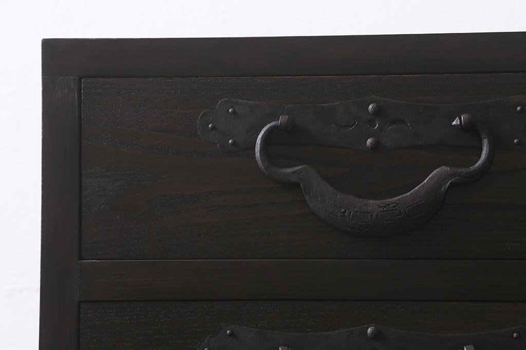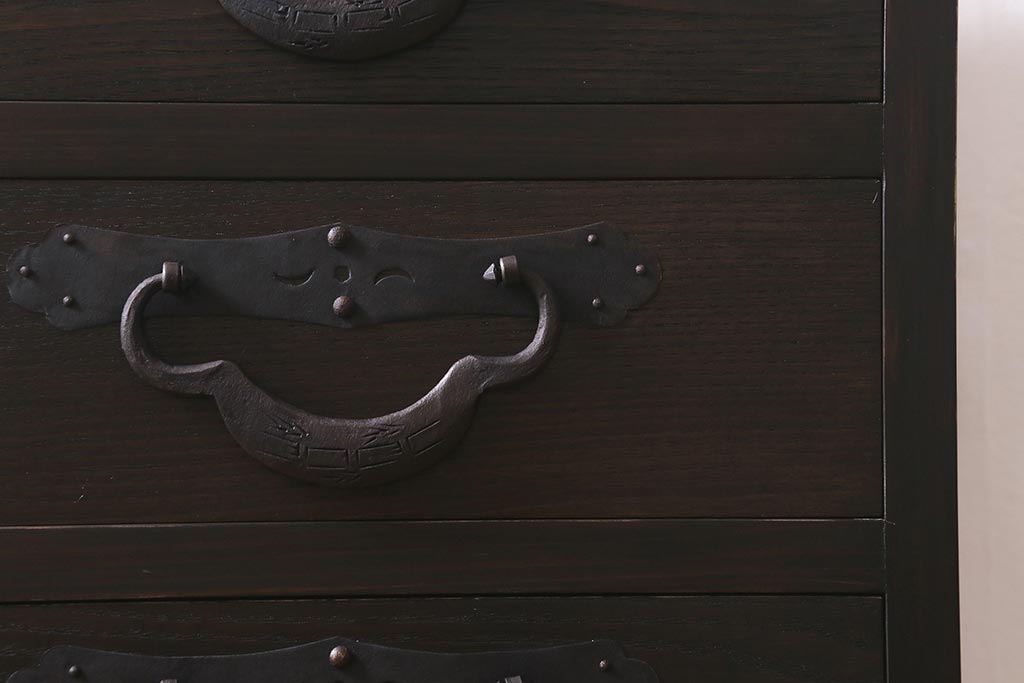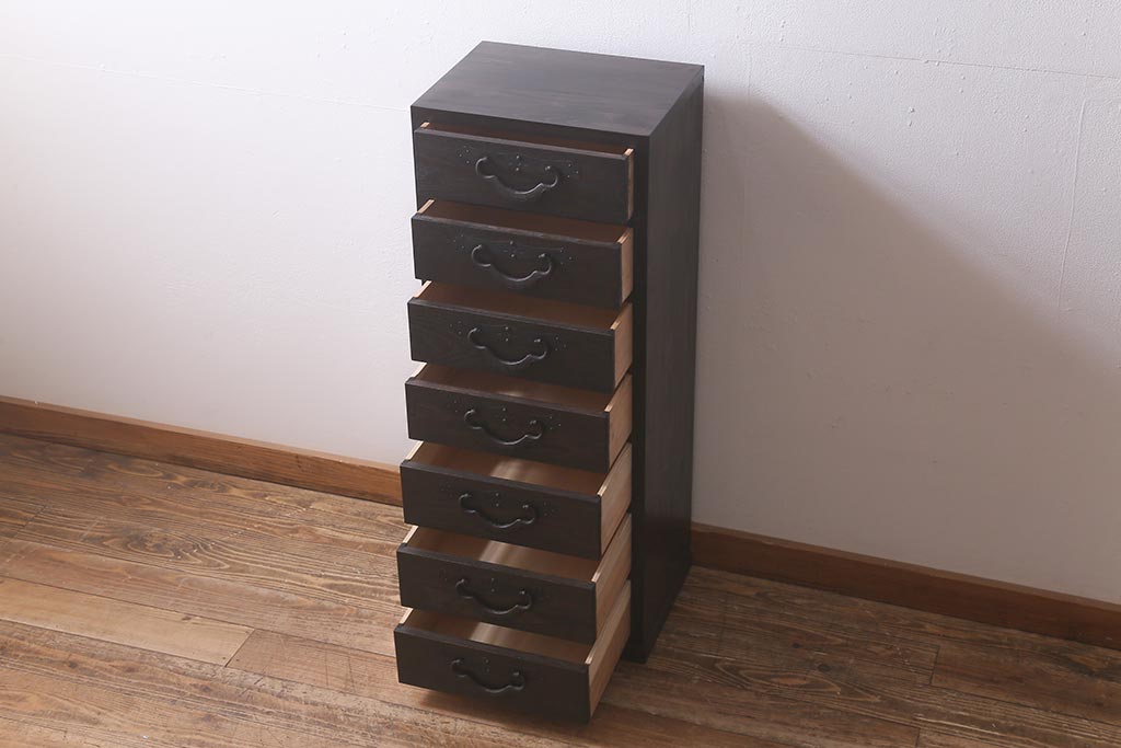 ラフジュ工房オリジナル 古金具リメイク 前板栗材 ヒノキ材 木瓜金具が趣溢れる小引き出し(小物収納、チェスト)(R-042848)です。