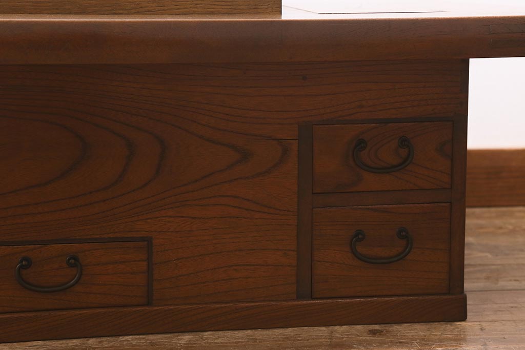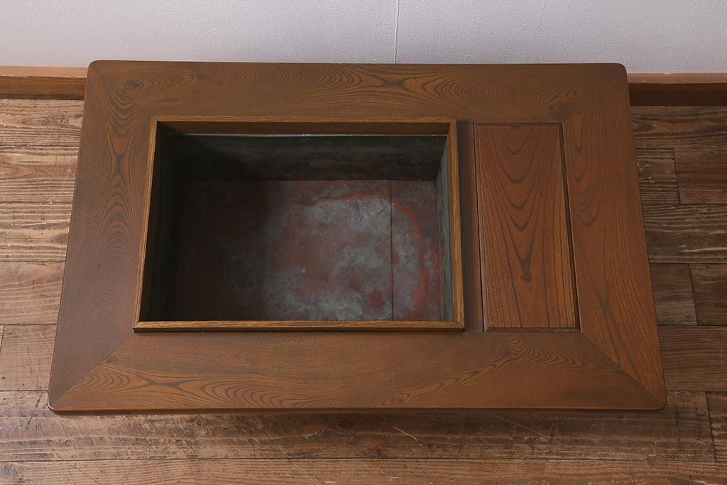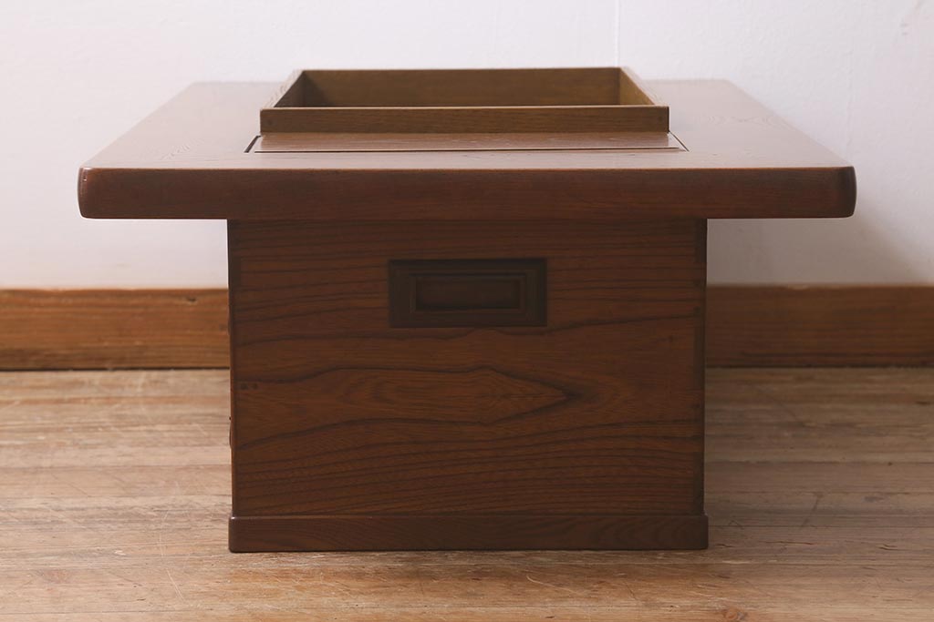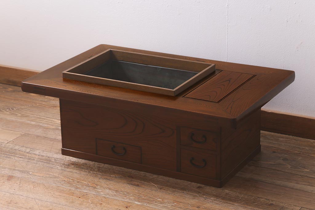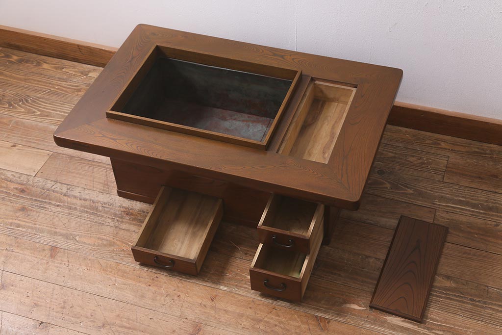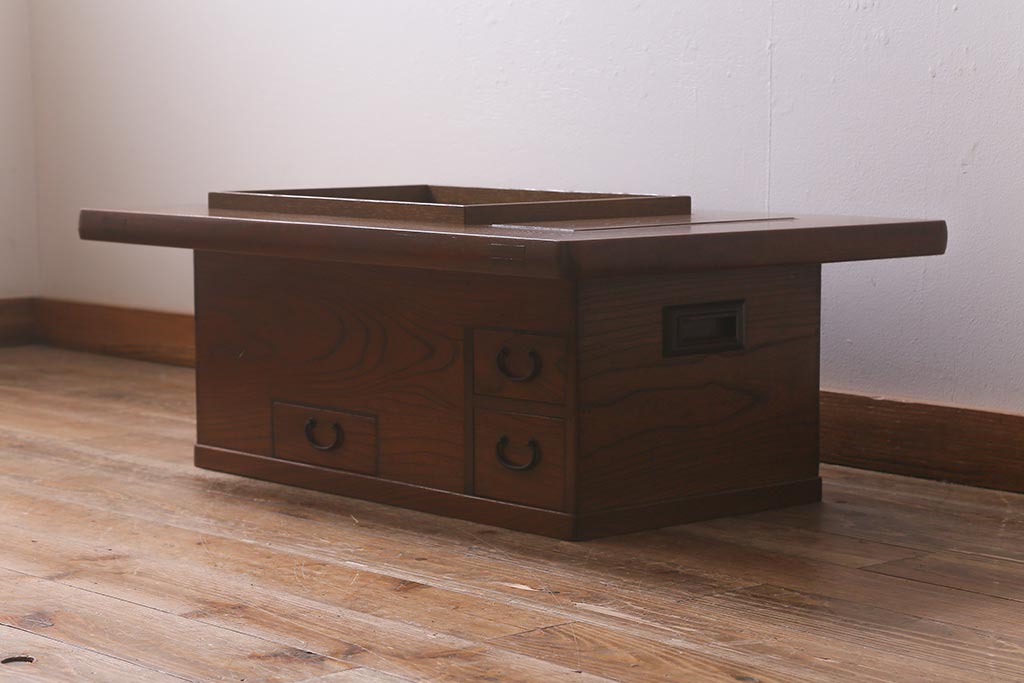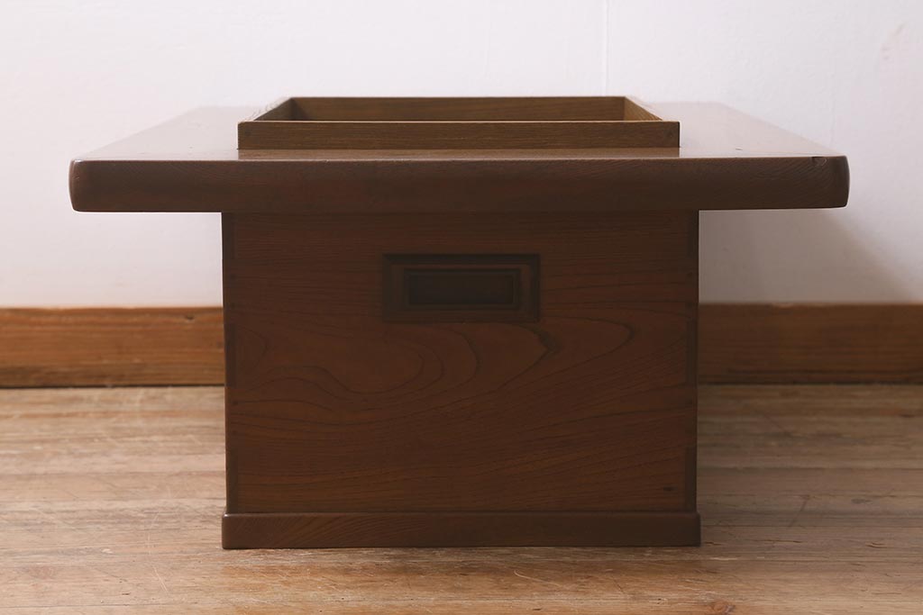 火鉢> 木製火鉢 > アンティーク雑貨 和製アンティーク 総欅材 杢目が美しい関西長火鉢(囲炉裏、長火鉢)(R-042852)