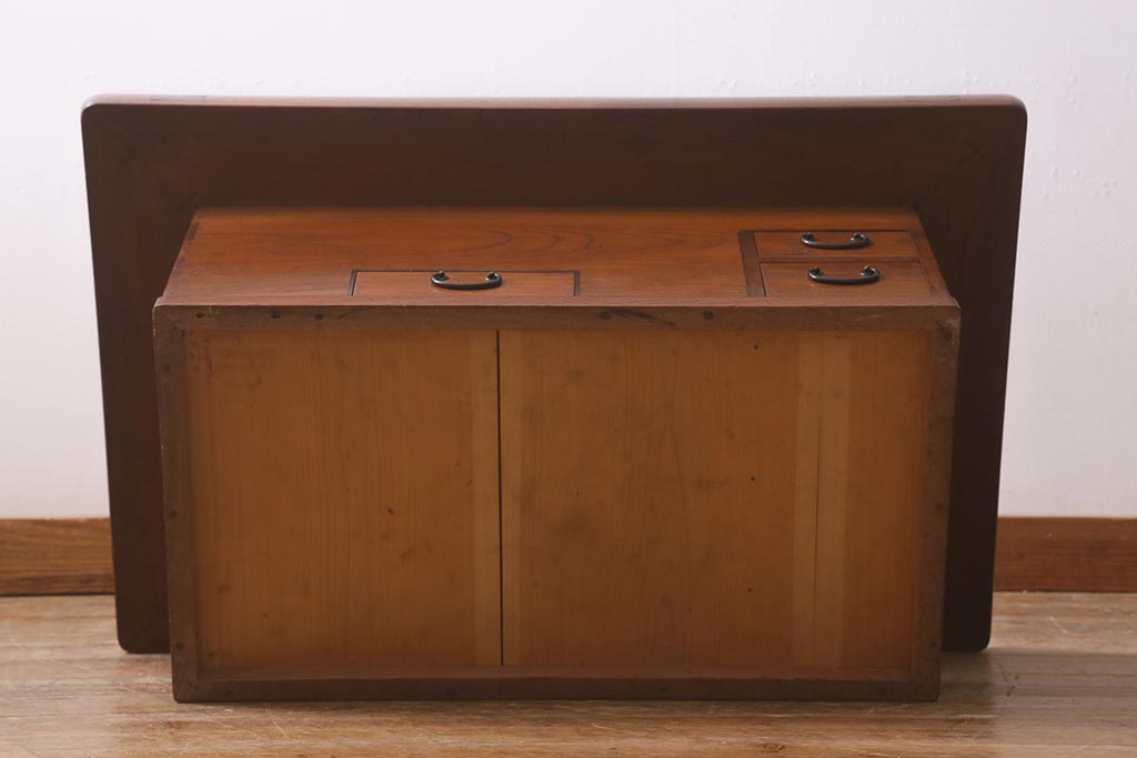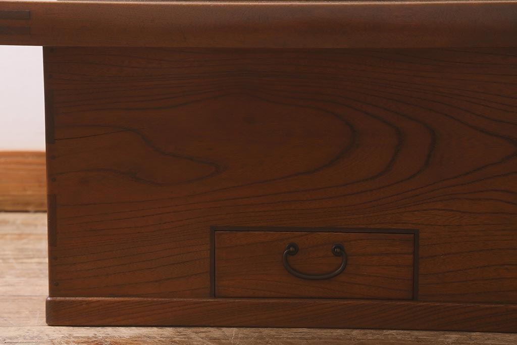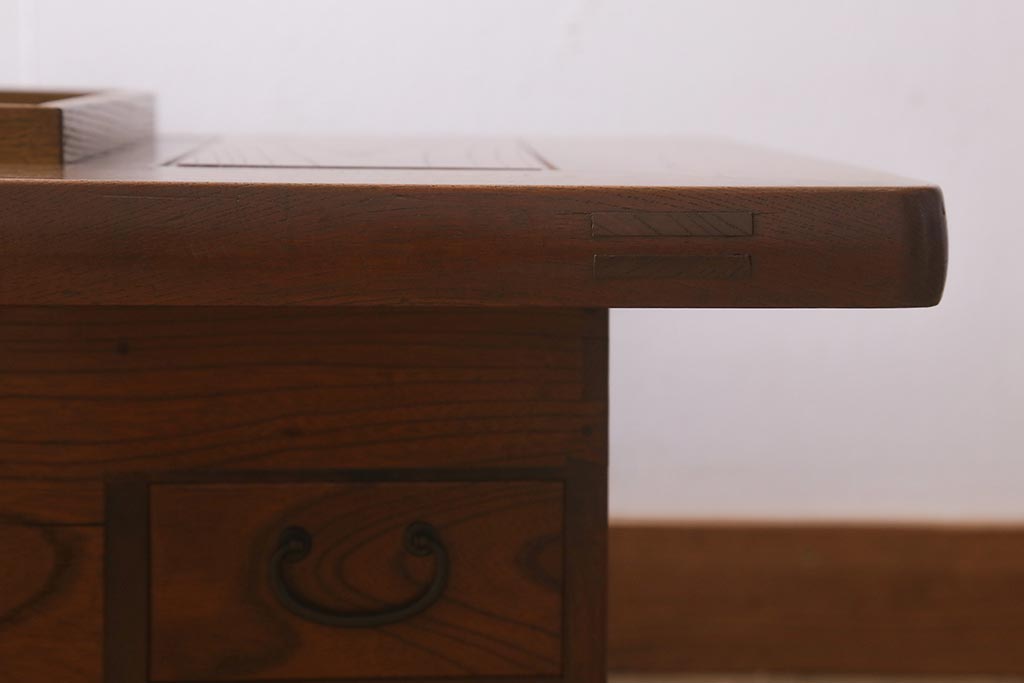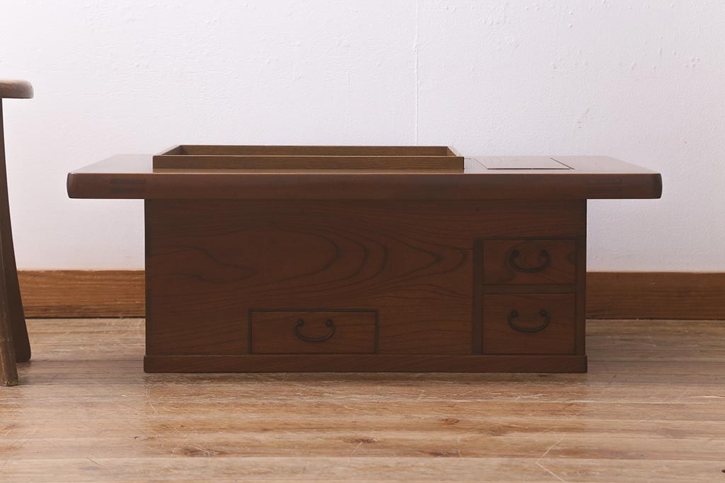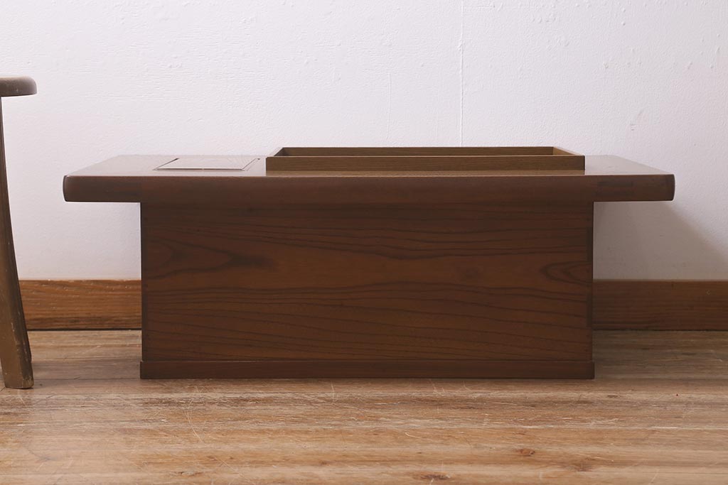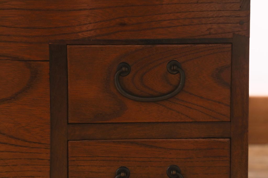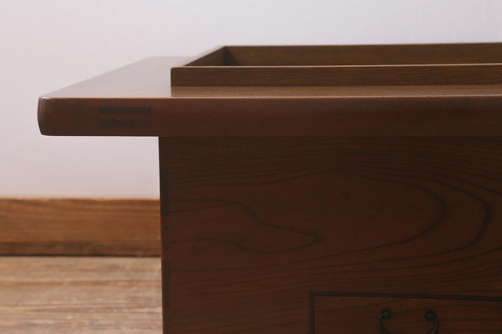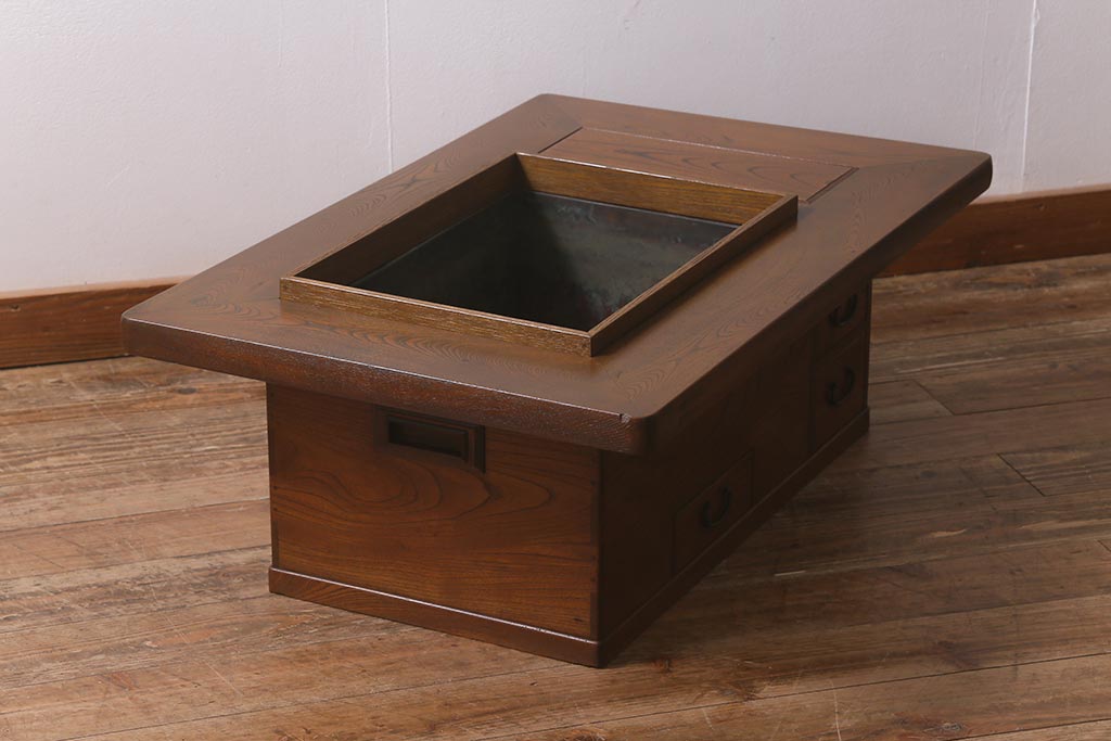 火鉢> 木製火鉢 > アンティーク雑貨 和製アンティーク 総欅材 杢目が美しい関西長火鉢(囲炉裏、長火鉢)(R-042852)