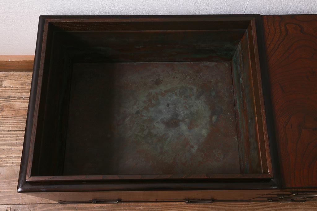 火鉢> 長火鉢 > アンティーク雑貨 和製アンティーク 欅材 猫板付き 上質な和の空間を演出する長火鉢(木製火鉢)(R-042853)