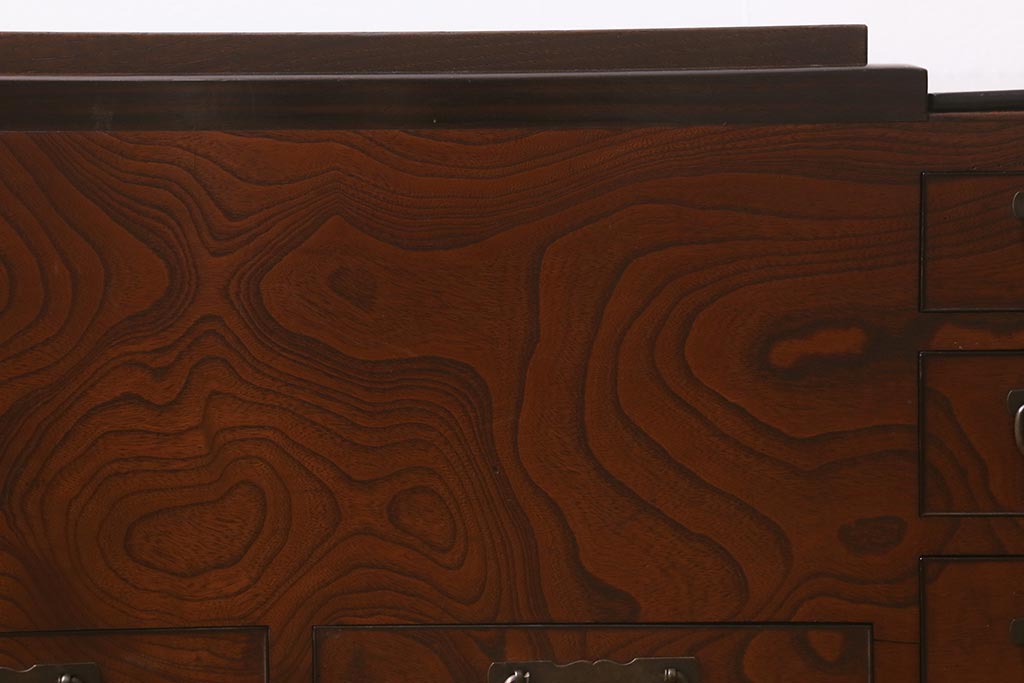 欅材の迫力のある杢目が美しく