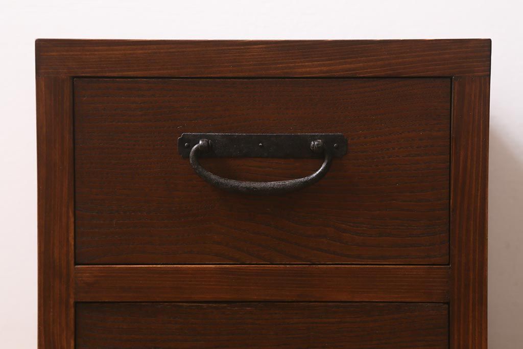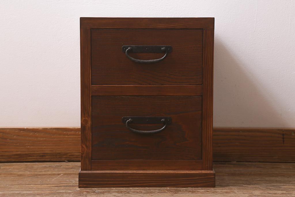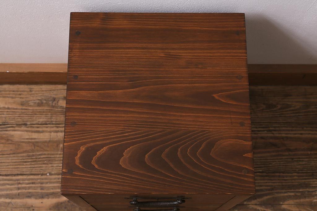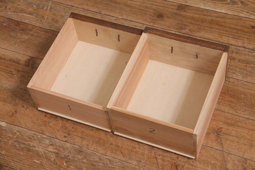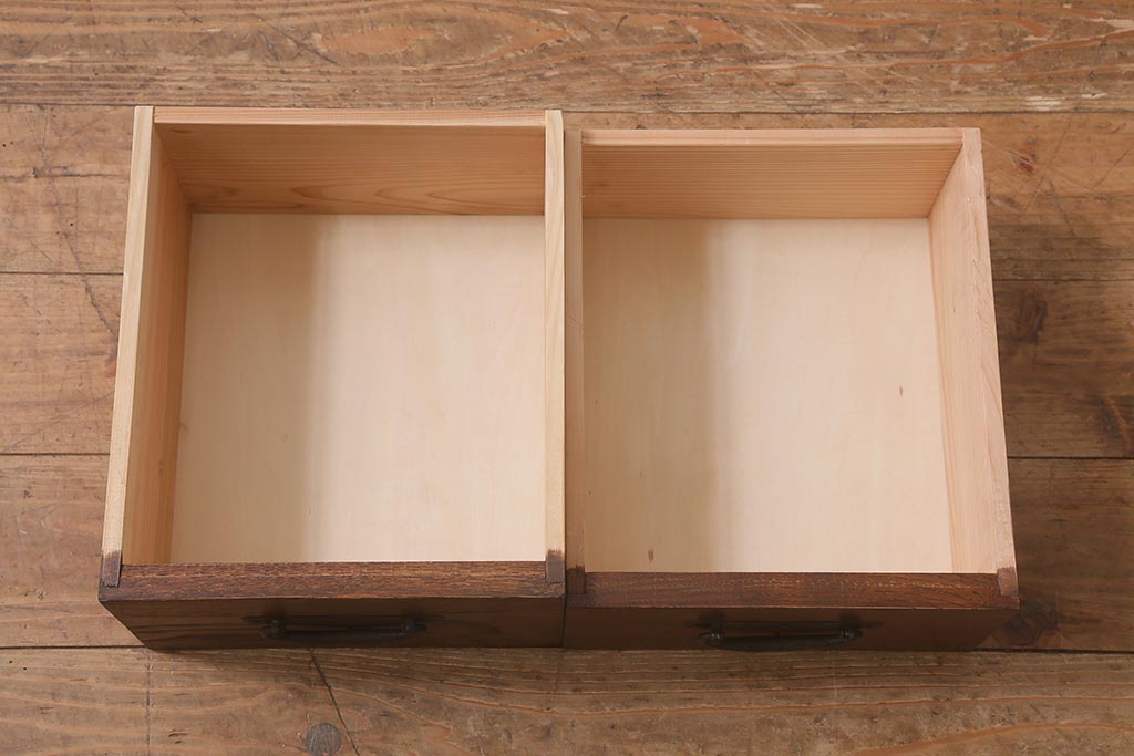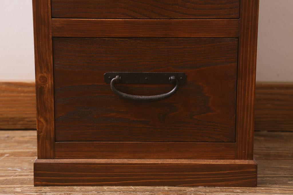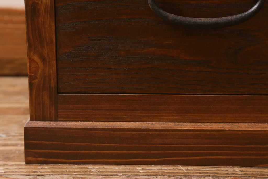ラフジュ工房オリジナル 古金具リメイク 前板栗材 ヒノキ材 引手が魅力の小引き出し(小物収納)(R-042649)