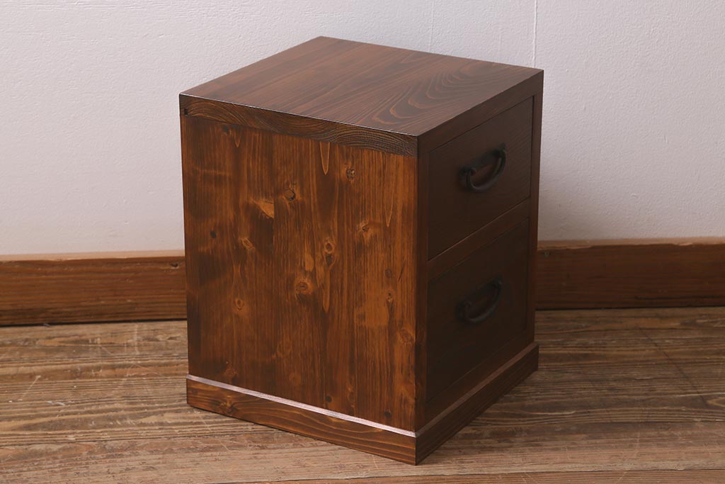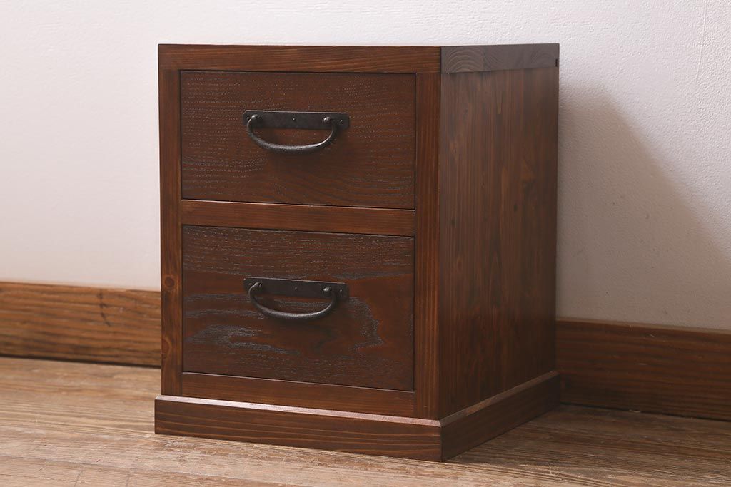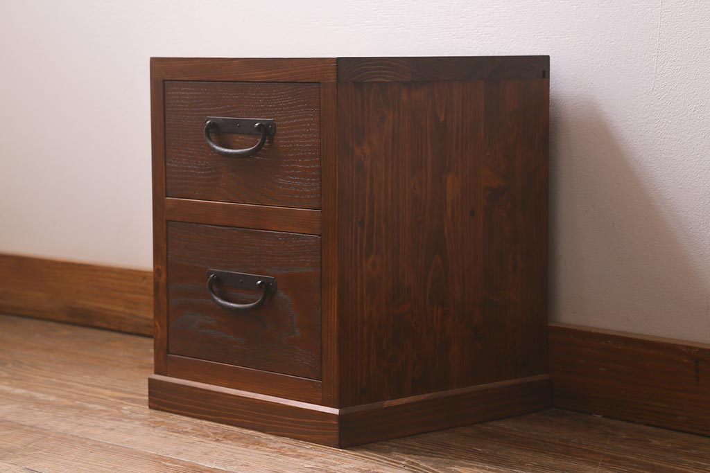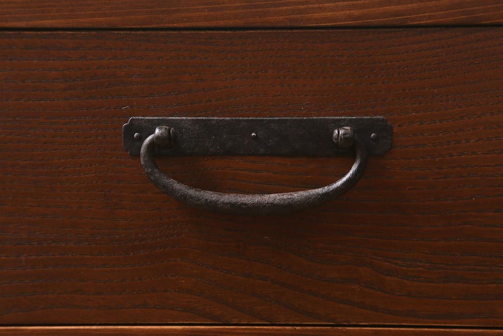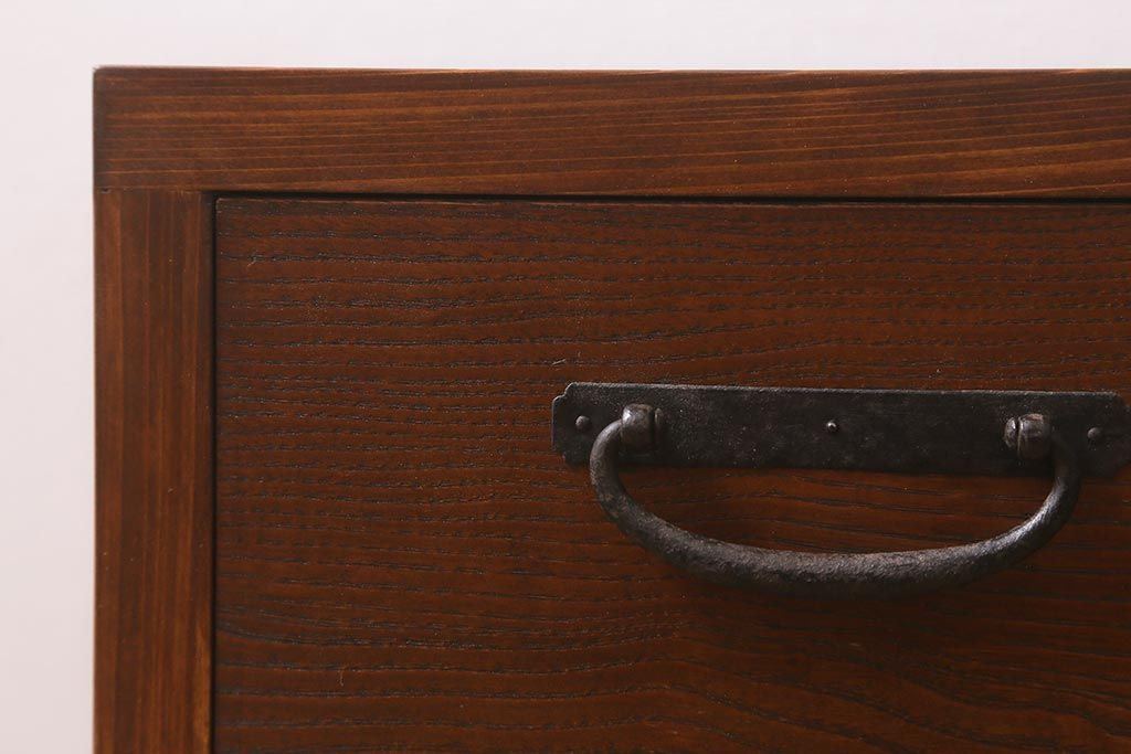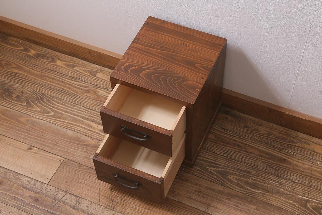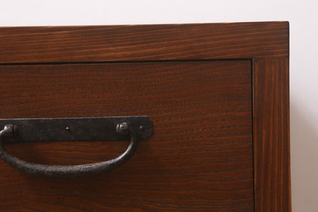 ラフジュ工房オリジナル 古金具リメイク 前板栗材 ヒノキ材 引手が魅力の小引き出し(小物収納)(R-042649)