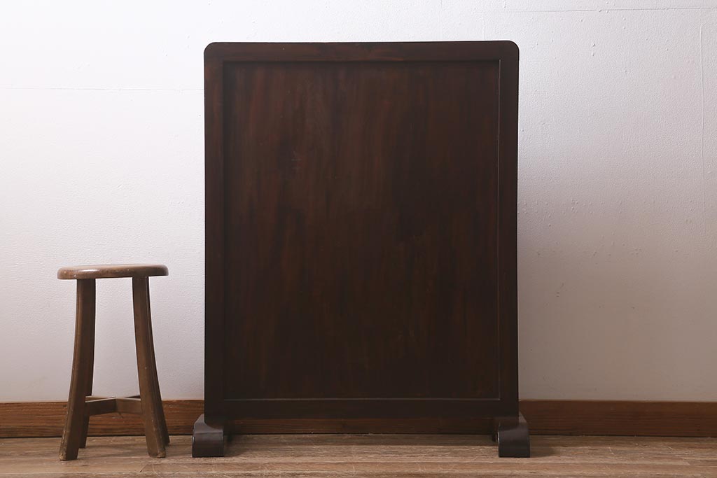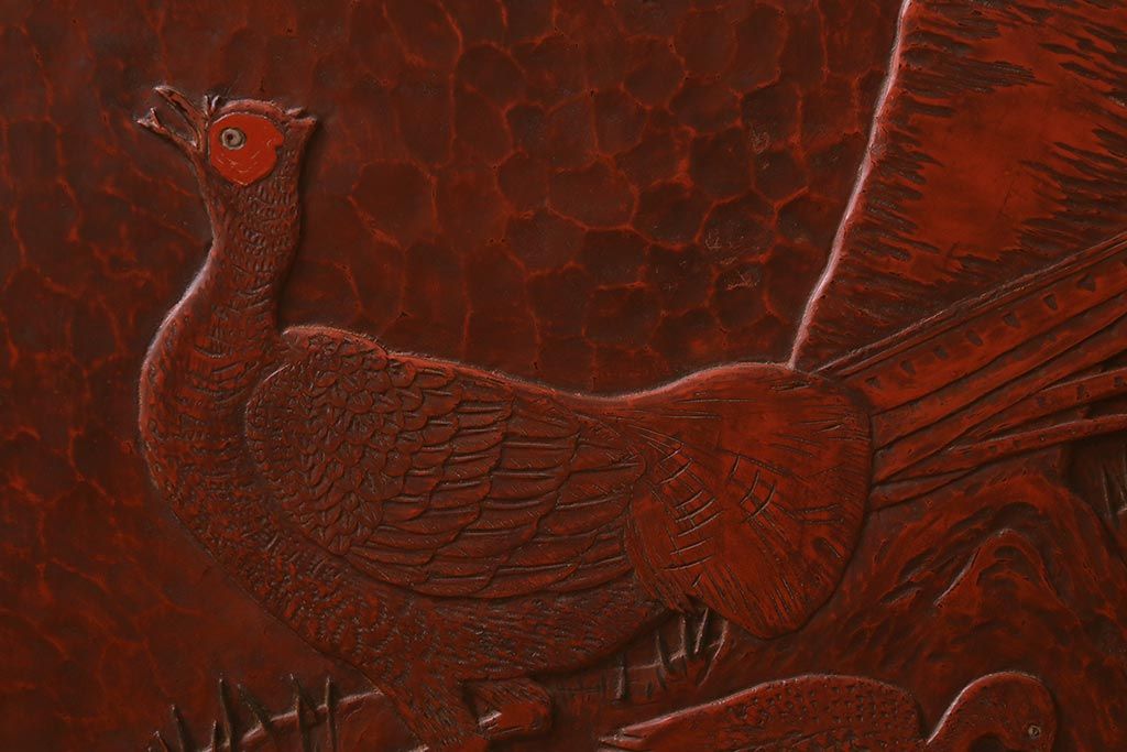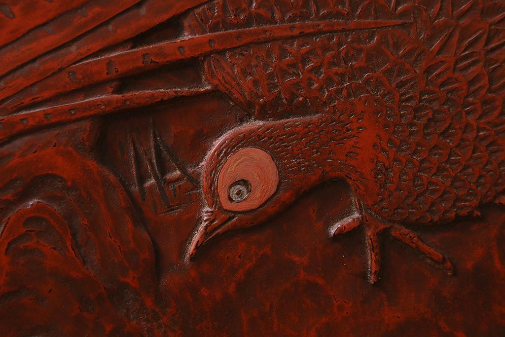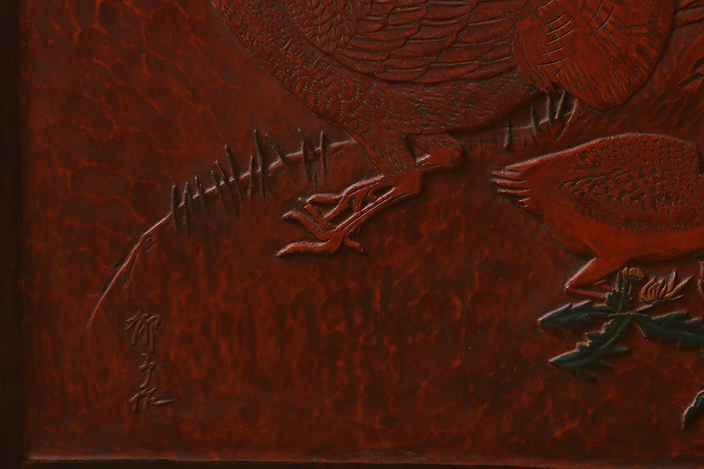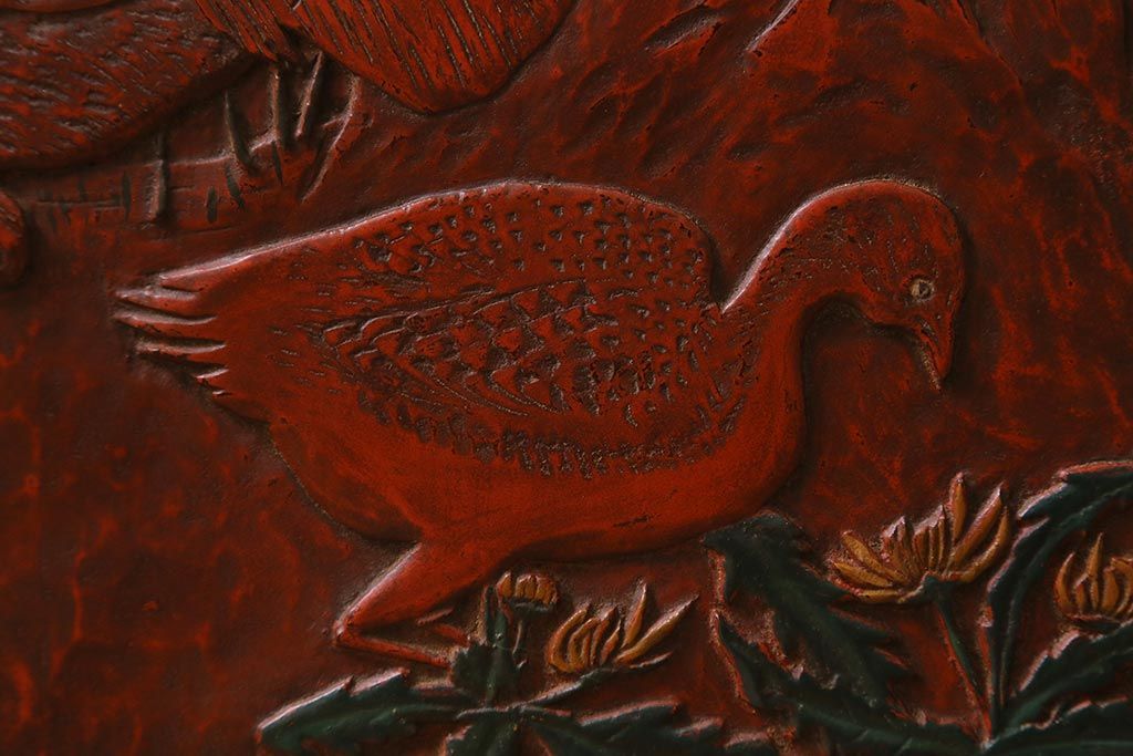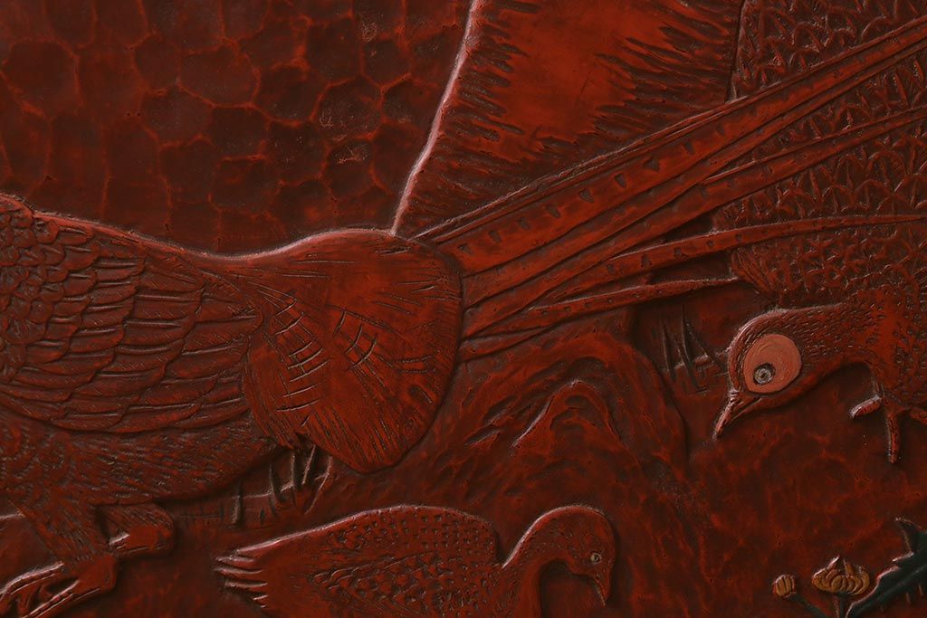 中古 伝統工芸 鎌倉彫り 桜・雉(キジ) 衝立(パーテーション、つい立て)(R-042641)