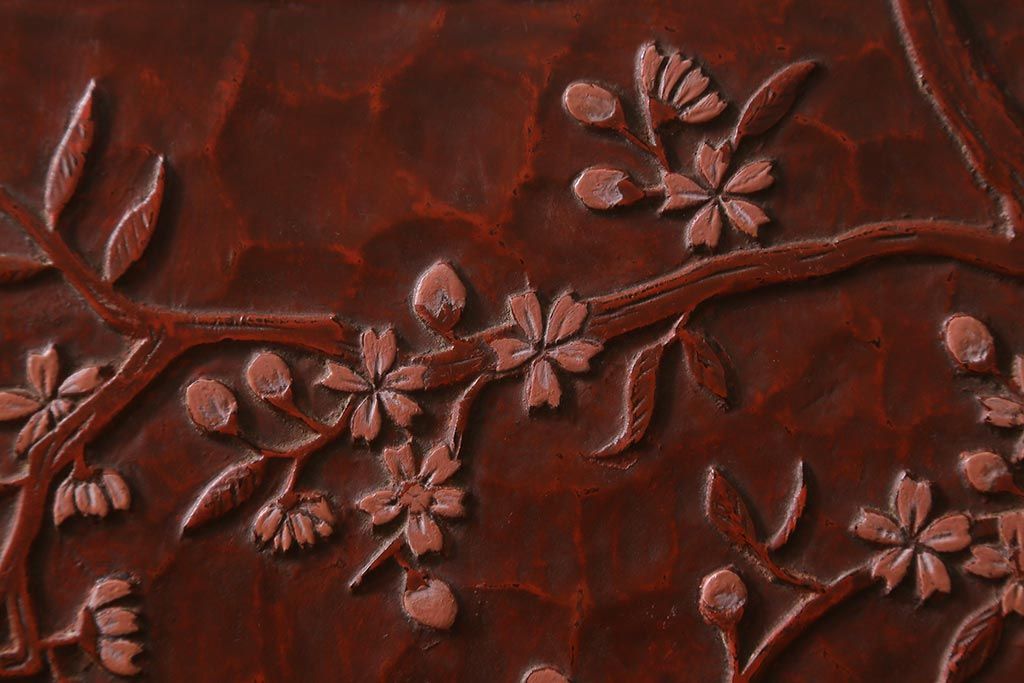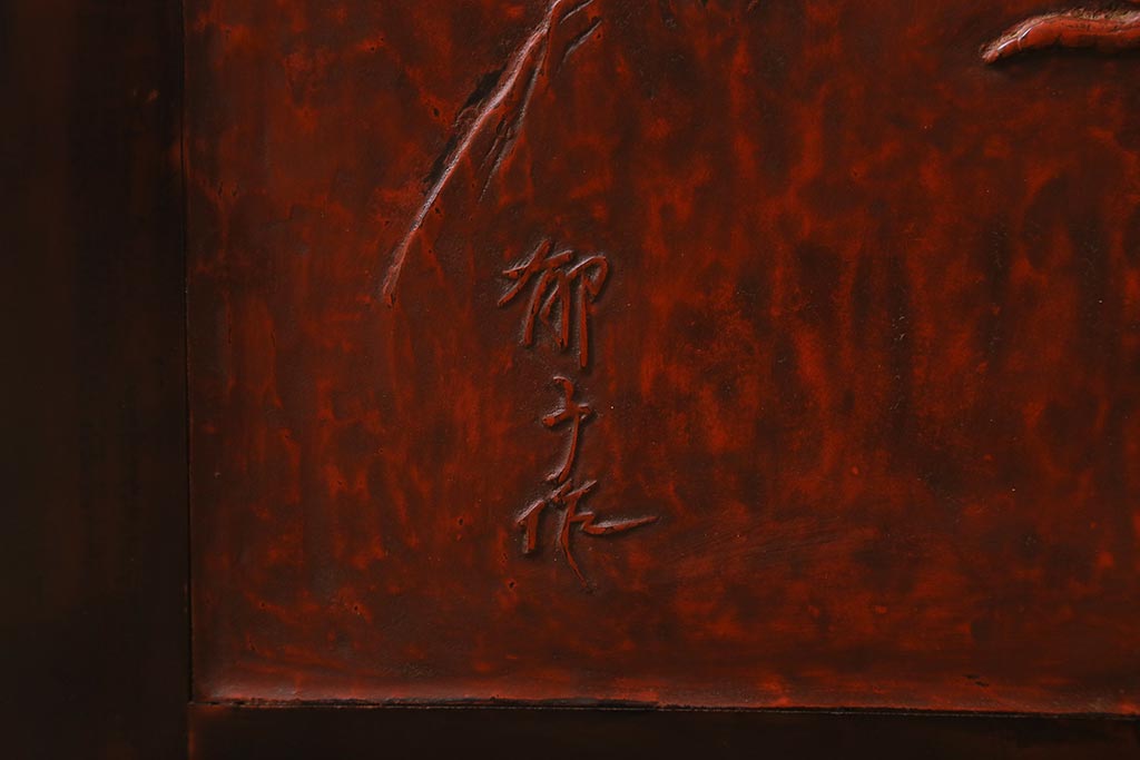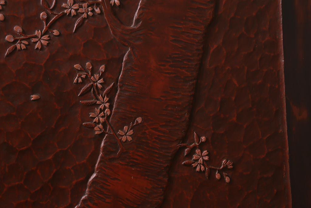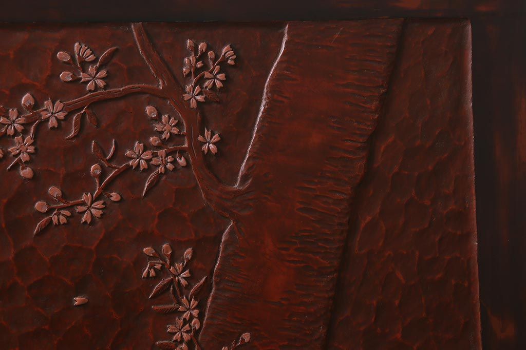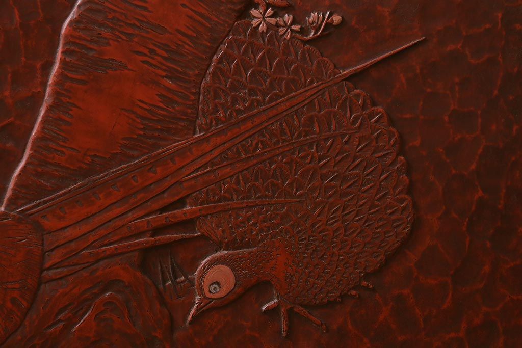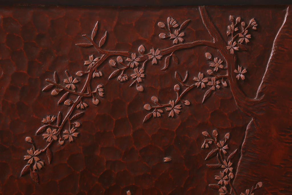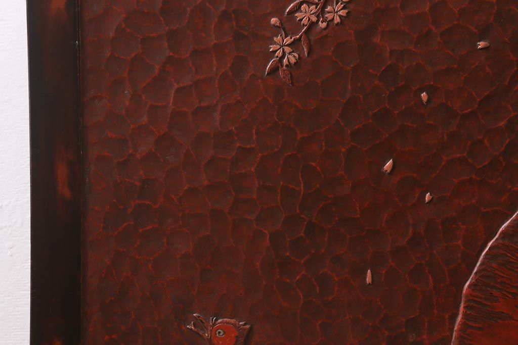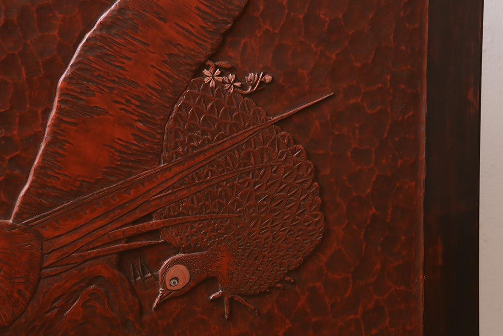 中古 伝統工芸 鎌倉彫り 桜・雉(キジ) 衝立(パーテーション、つい立て)(R-042641)です。