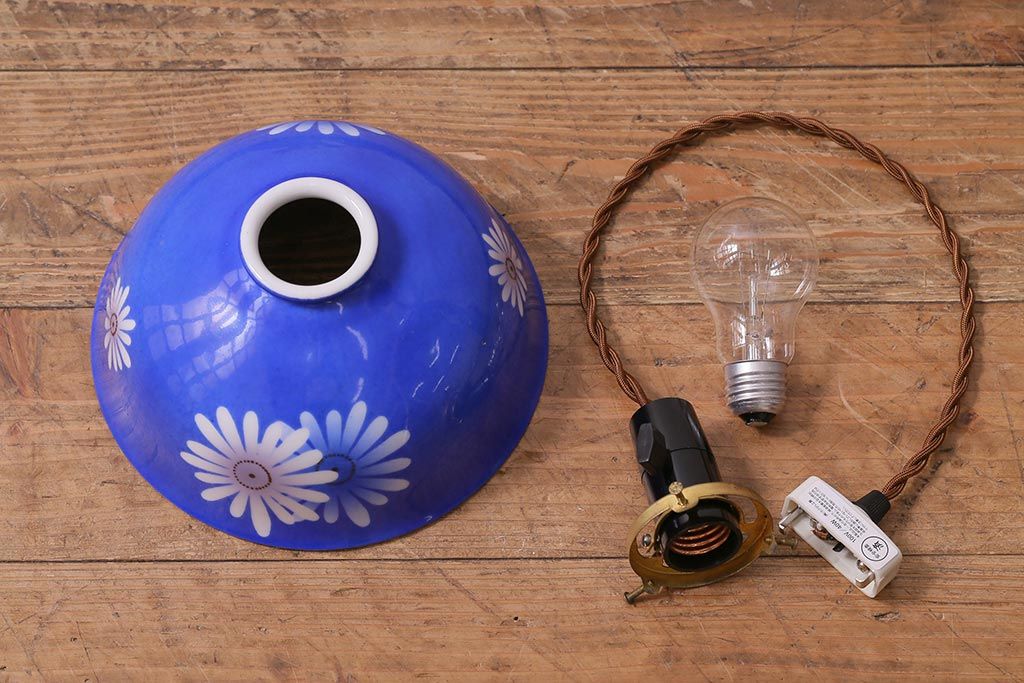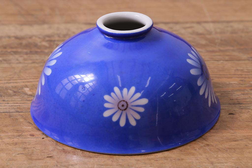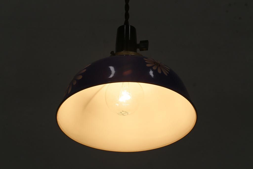 アンティーク照明 戦前 大正昭和初期 色絵磁器花文電笠 シェード(ノリタケ?、ペンダントライト、天井照明)(R-042735)