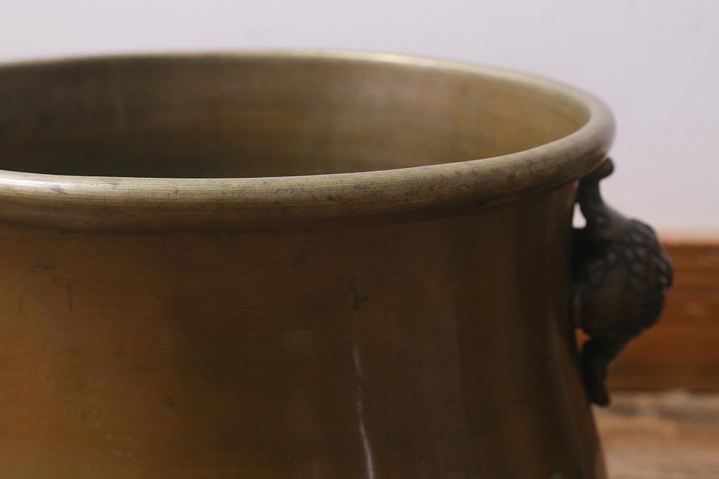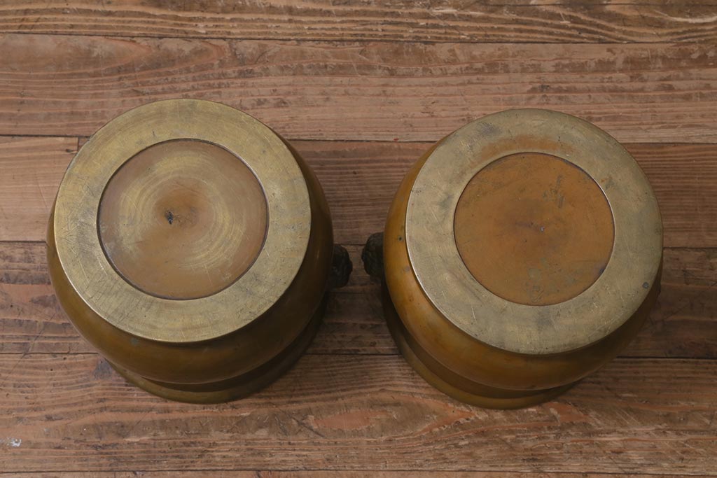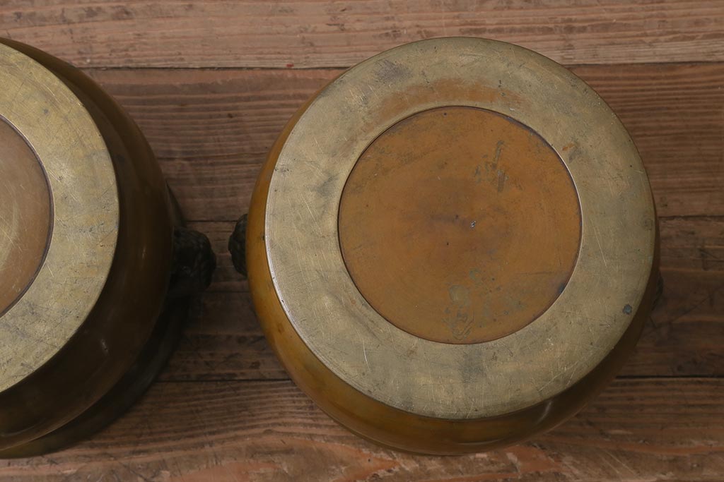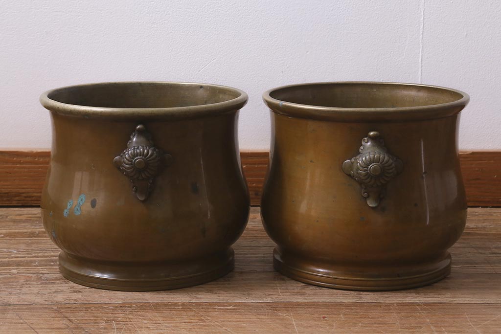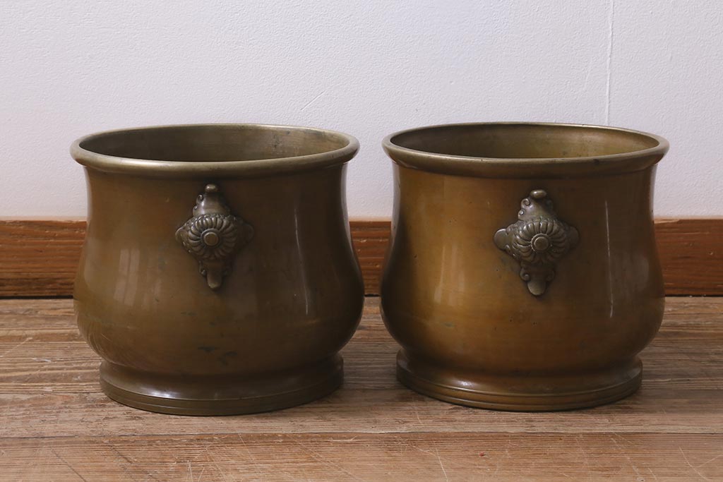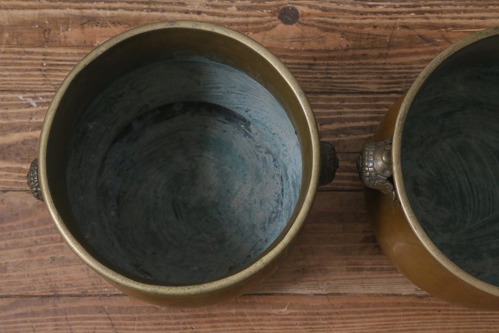 火鉢> 金属火鉢 > アンティーク雑貨 取っ手がおしゃれな真鍮火鉢一対(手あぶり、金属火鉢)(R-042571)