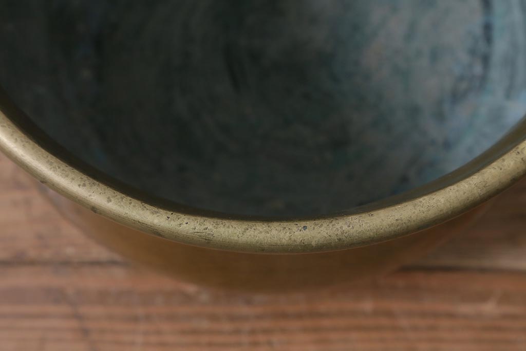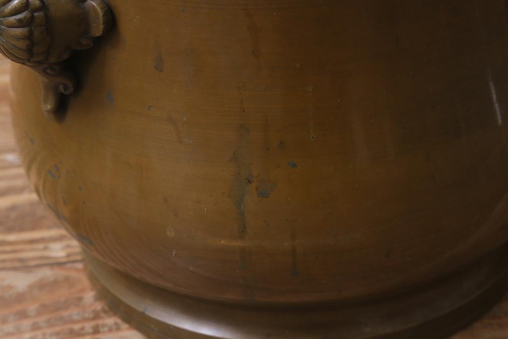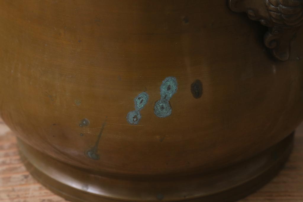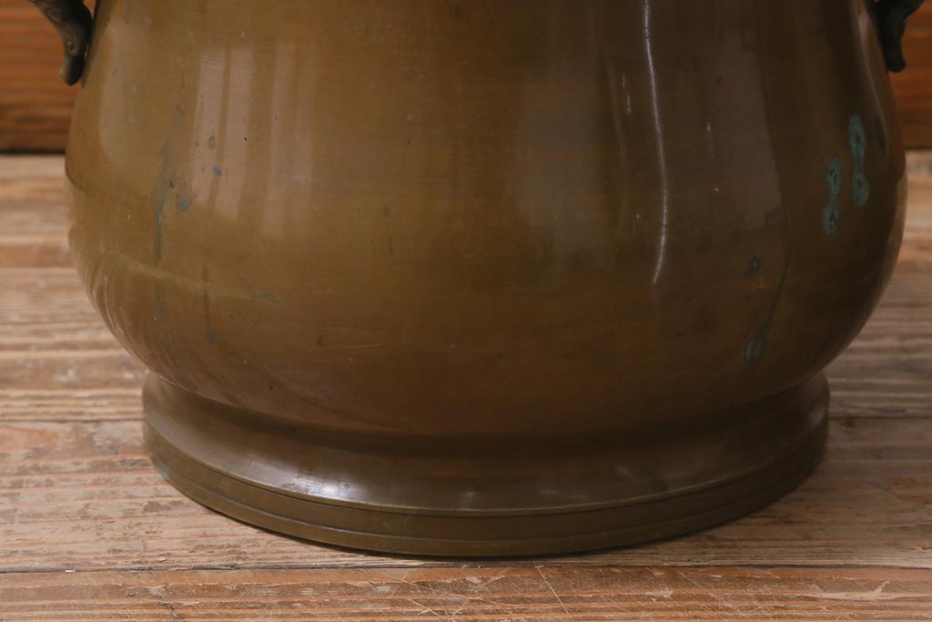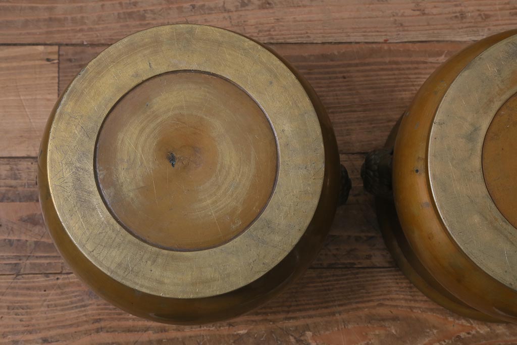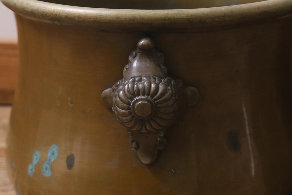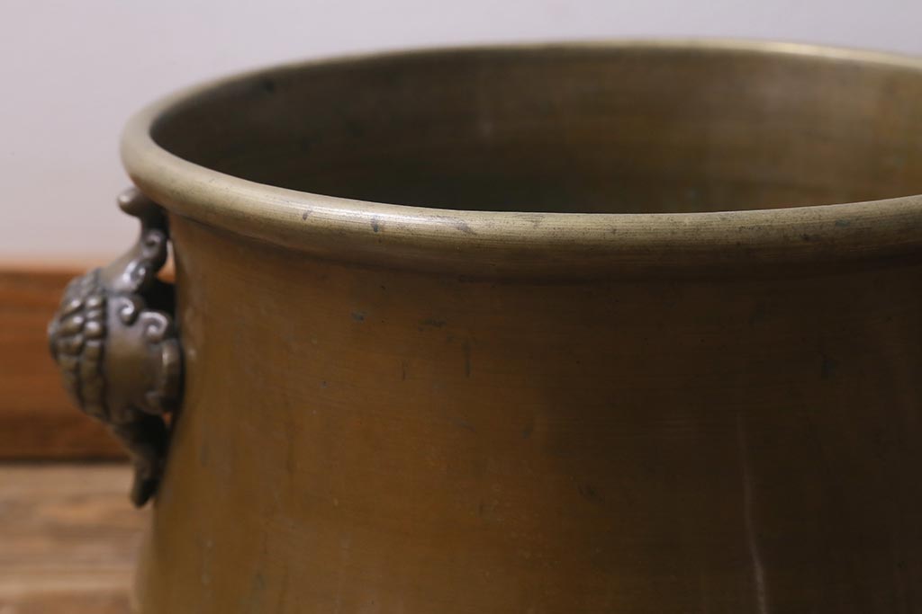 火鉢> 金属火鉢 > アンティーク雑貨 取っ手がおしゃれな真鍮火鉢一対(手あぶり、金属火鉢)(R-042571)