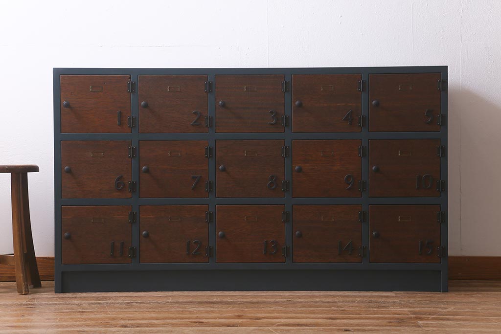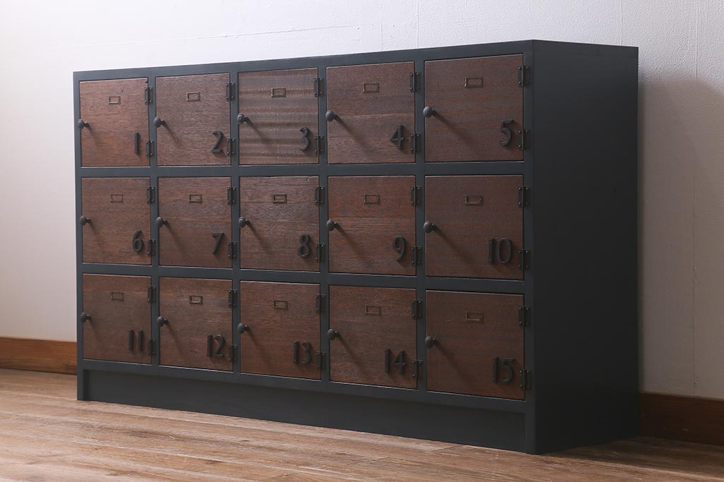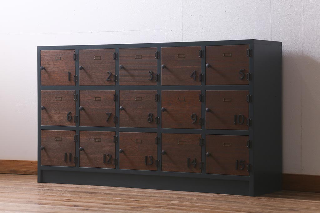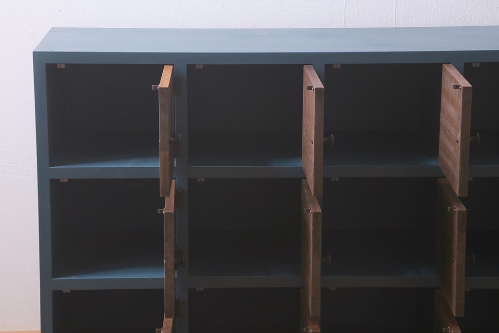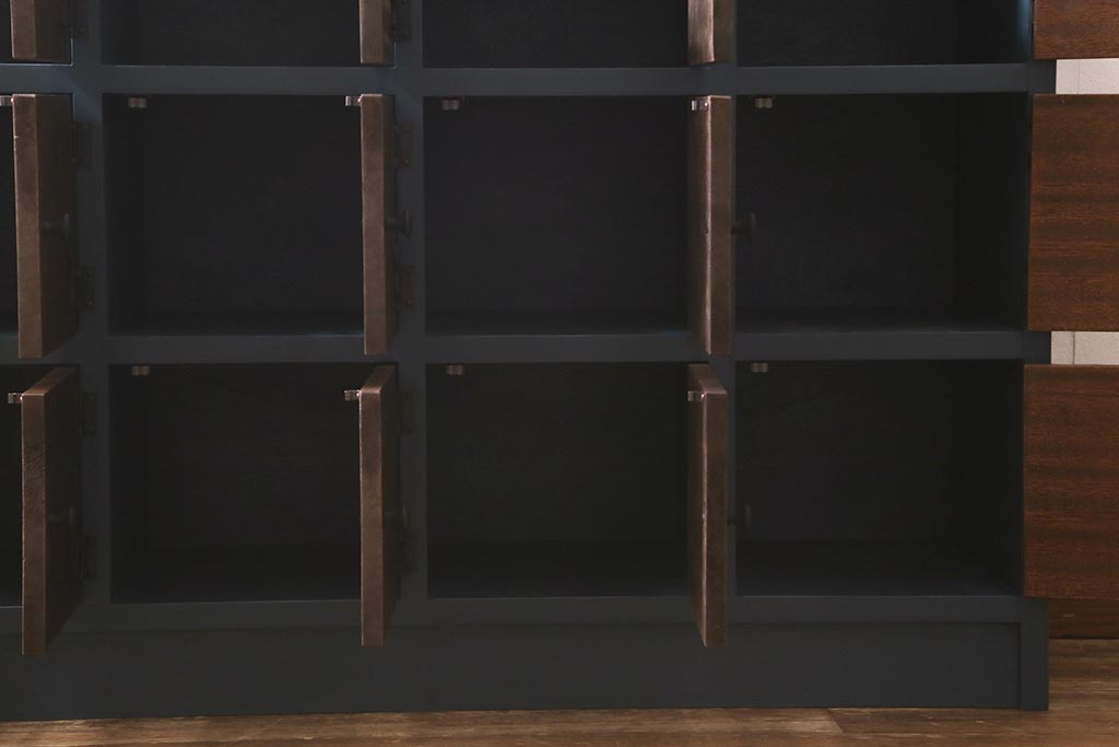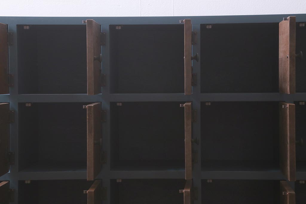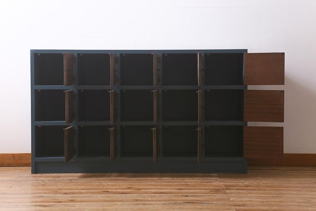 ワードローブ・ロッカー> ロッカー > ラフジュ工房オリジナル 3×5マス 古材リメイク ヒノキ無垢材・ラワン古材 ビンテージ風のペイントマス目棚・右開き(収納棚、ロッカー、下駄箱)(R-042666)