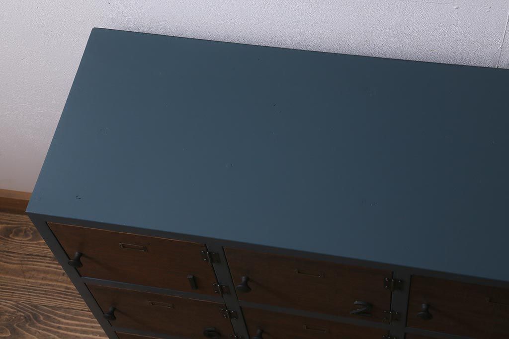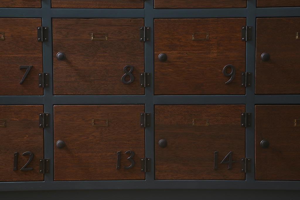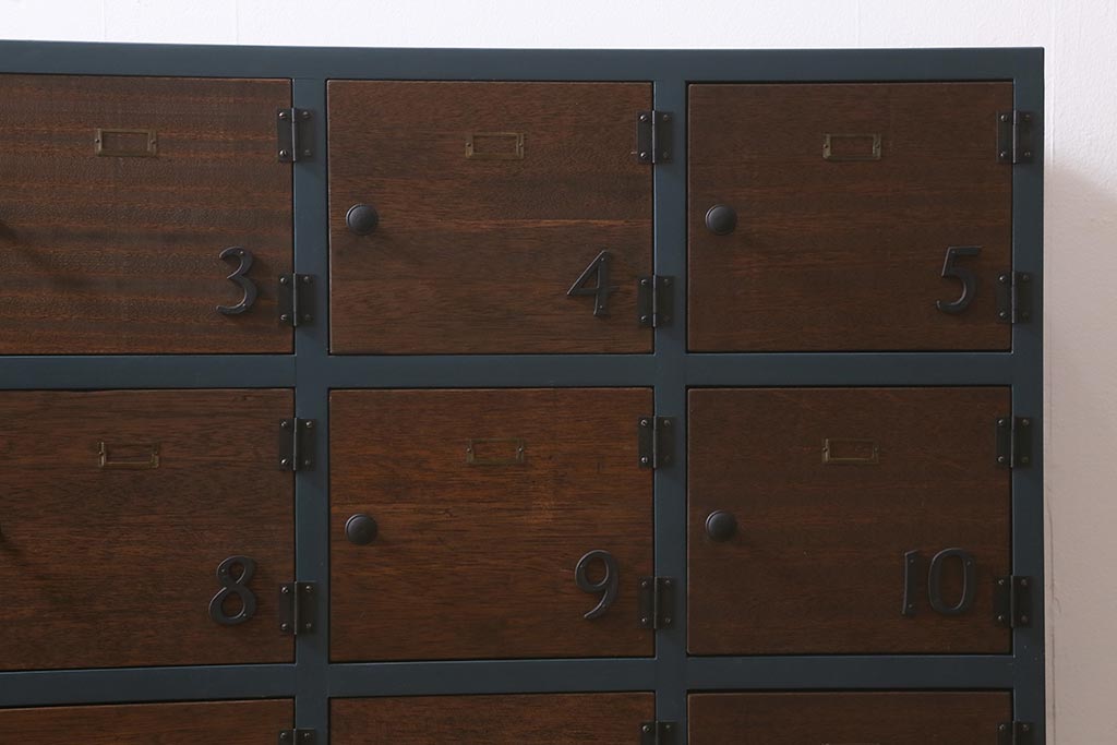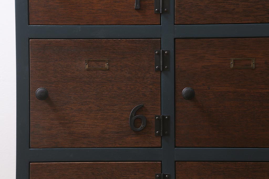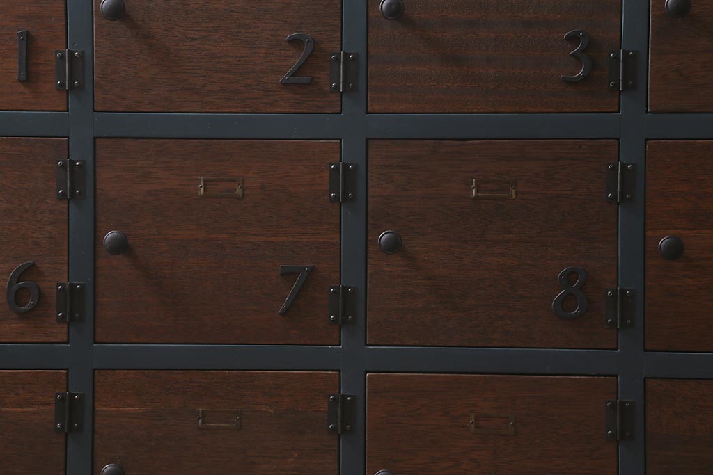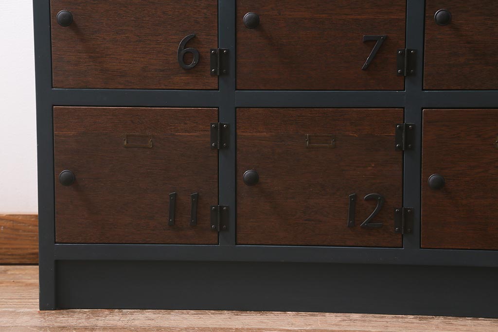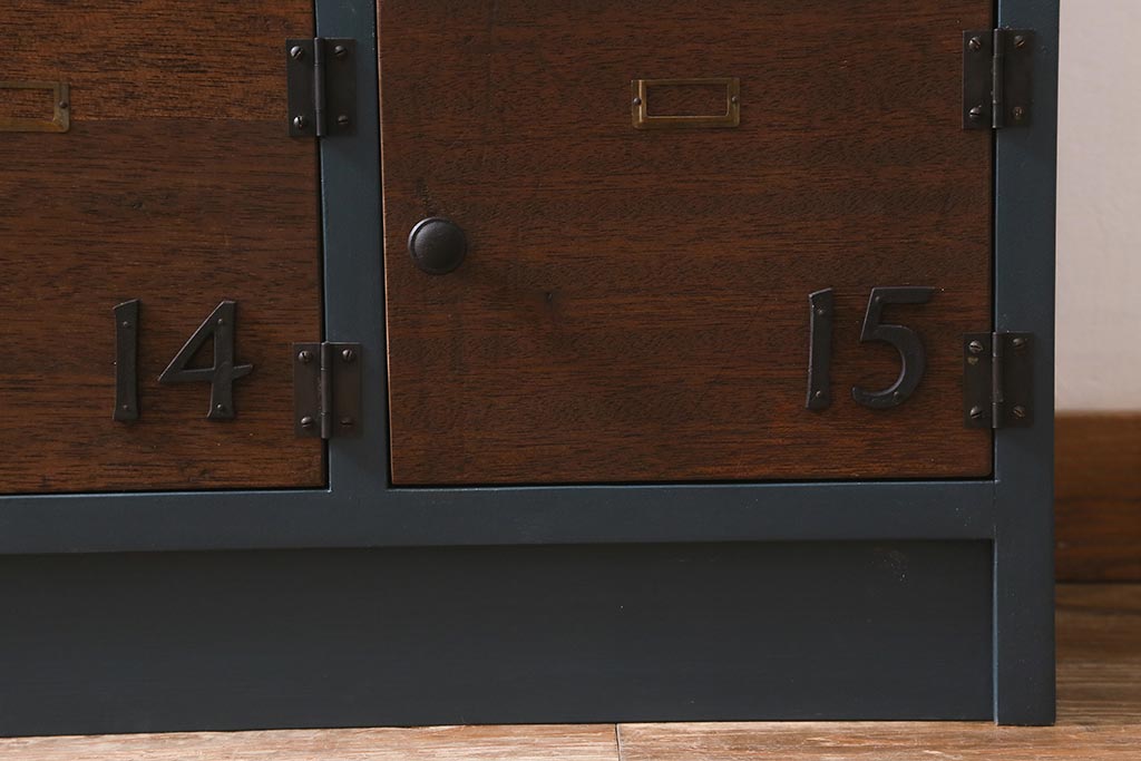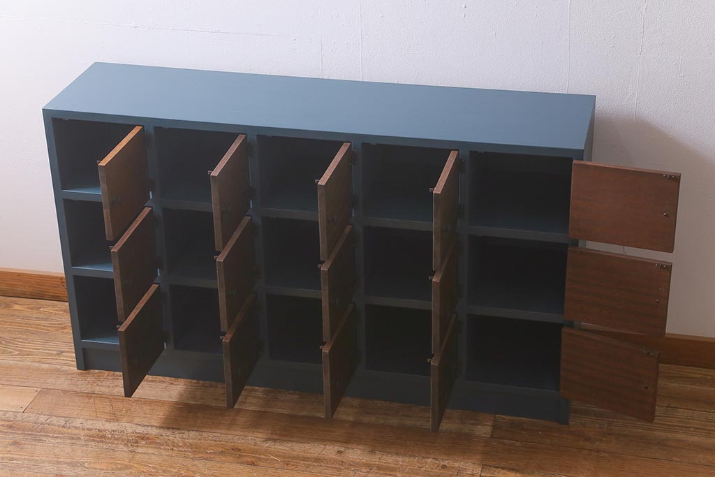 ワードローブ・ロッカー> ロッカー > ラフジュ工房オリジナル 3×5マス 古材リメイク ヒノキ無垢材・ラワン古材 ビンテージ風のペイントマス目棚・右開き(収納棚、ロッカー、下駄箱)(R-042666)