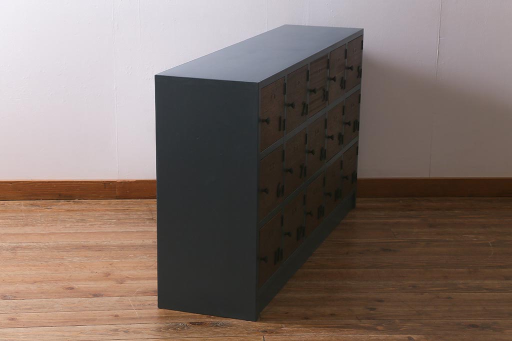 ラフジュ工房オリジナル 3×5マス 古材リメイク ヒノキ無垢材・ラワン古材 ビンテージ風のペイントマス目棚・右開き(収納棚、ロッカー、下駄箱)(R-042666)です。