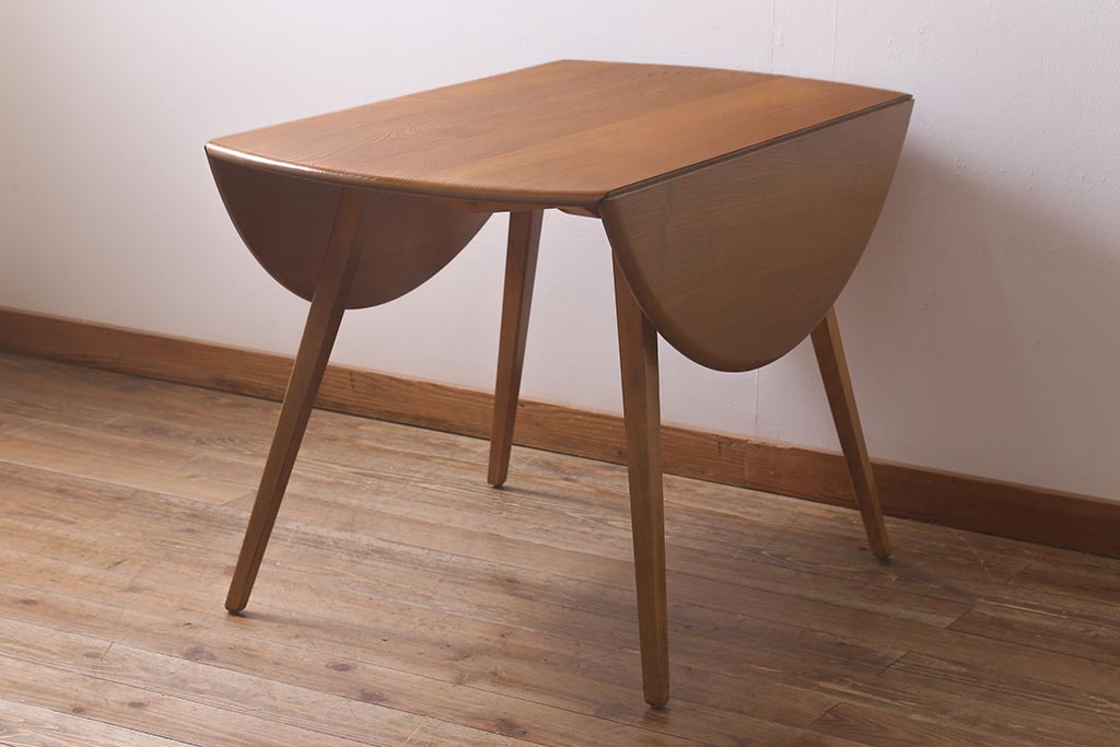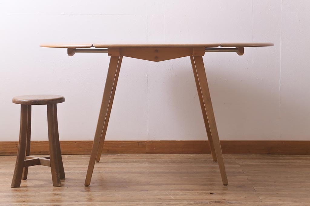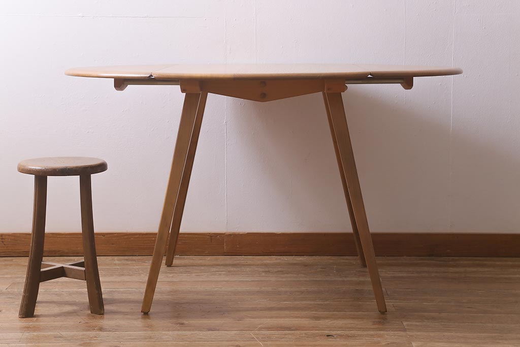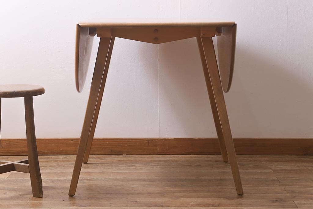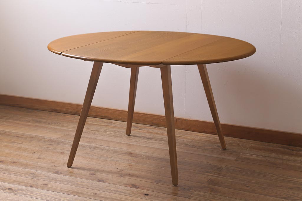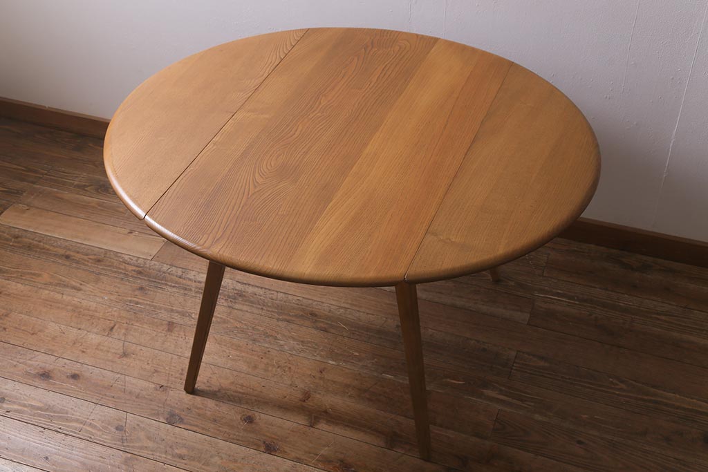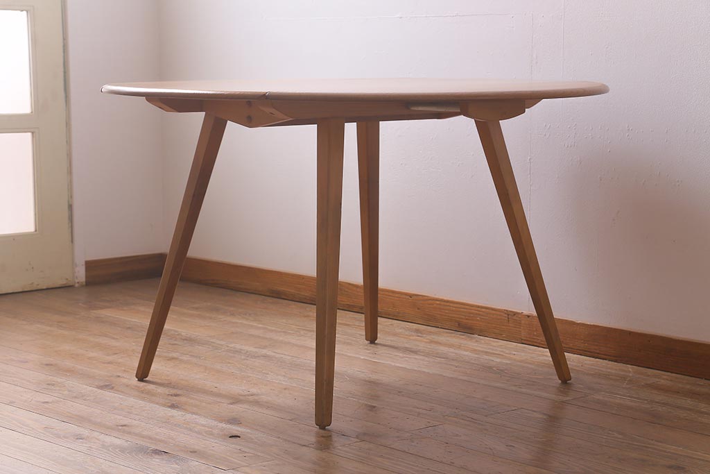 ヴィンテージ家具 イギリスビンテージ ERCOL(アーコール) ウィンザードロップリーフテーブル(バタフライテーブル、ラウンドテーブル)(R-042709)です。