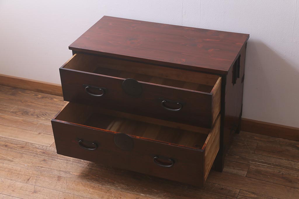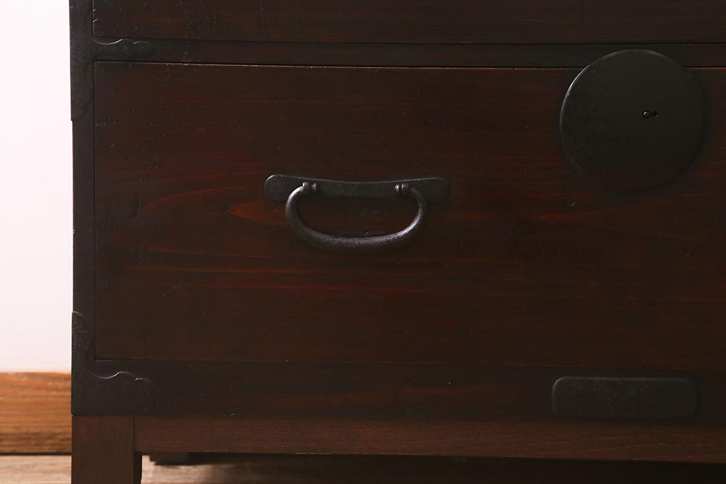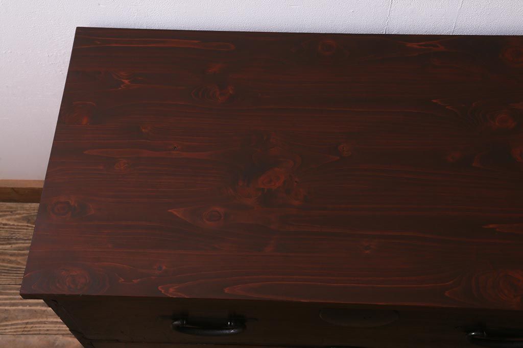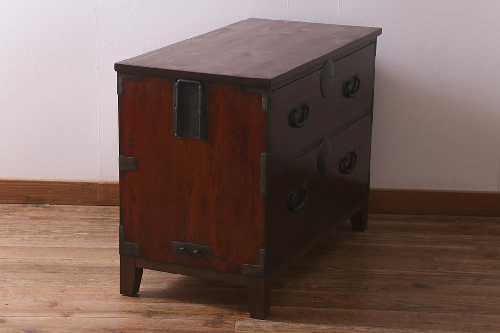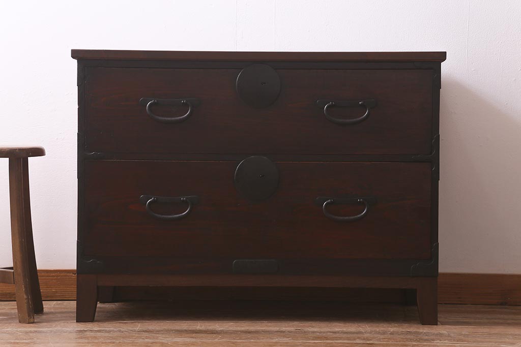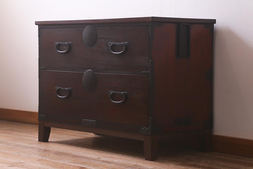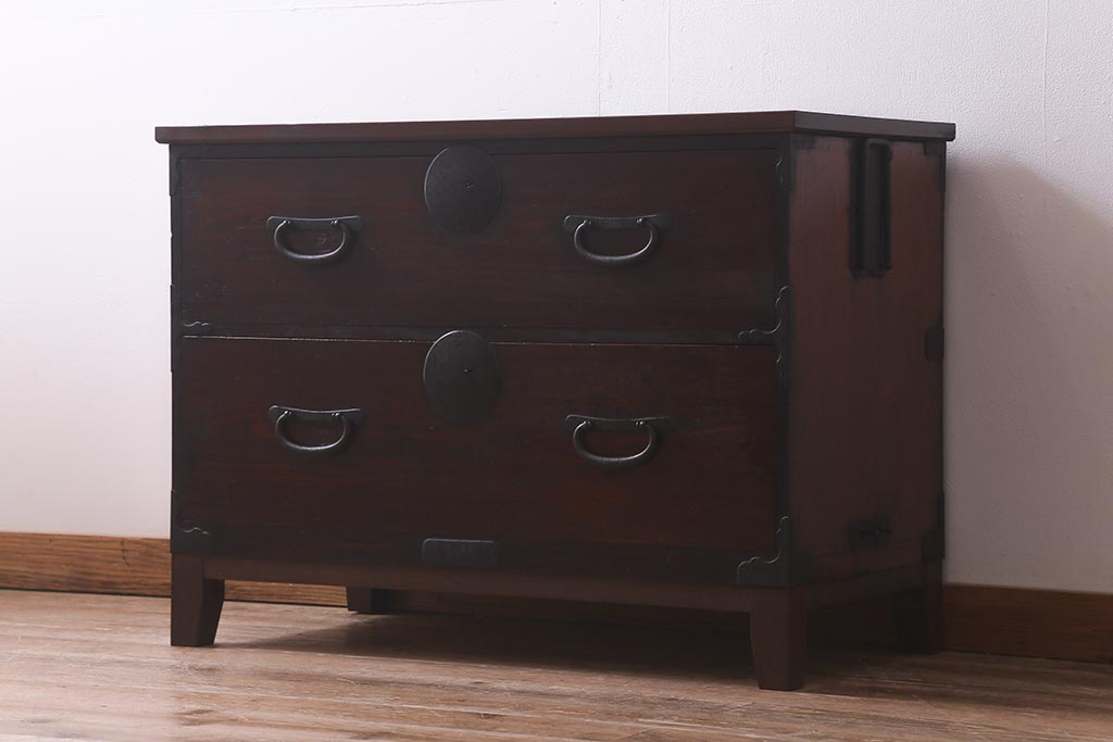 和箪笥> 衣装箪笥 > アンティーク家具 脚付きリメイク 和空間におすすめな箪笥ローボード(ローチェスト、テレビ台)(R-042707)