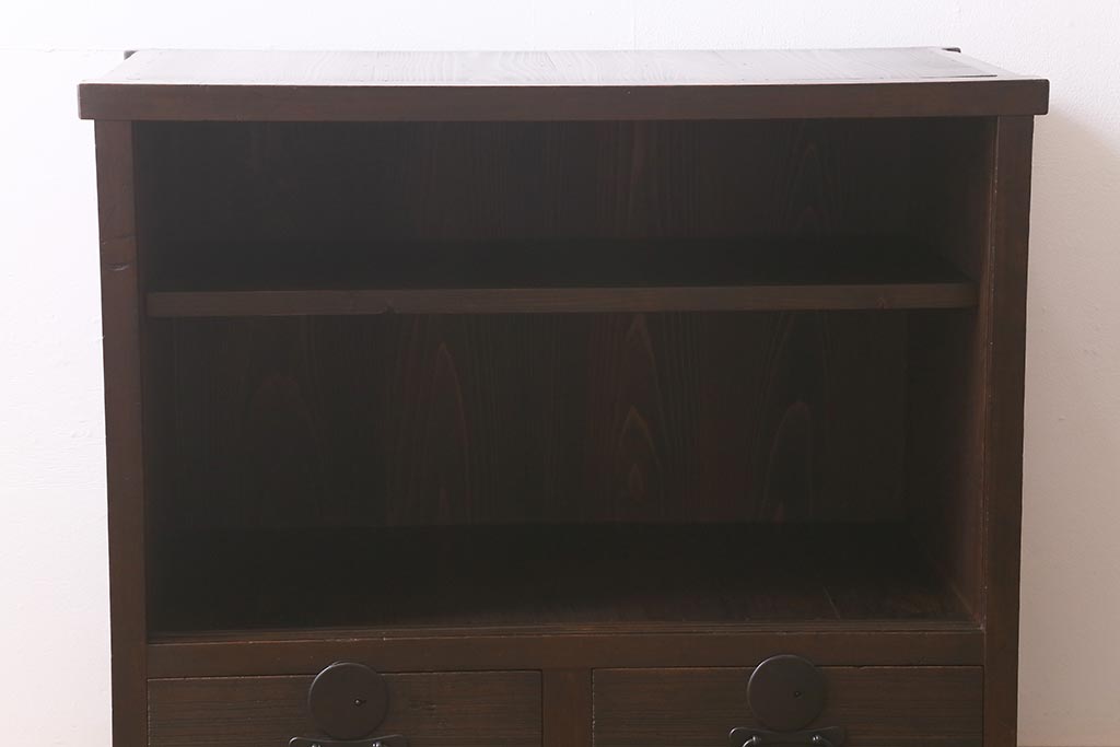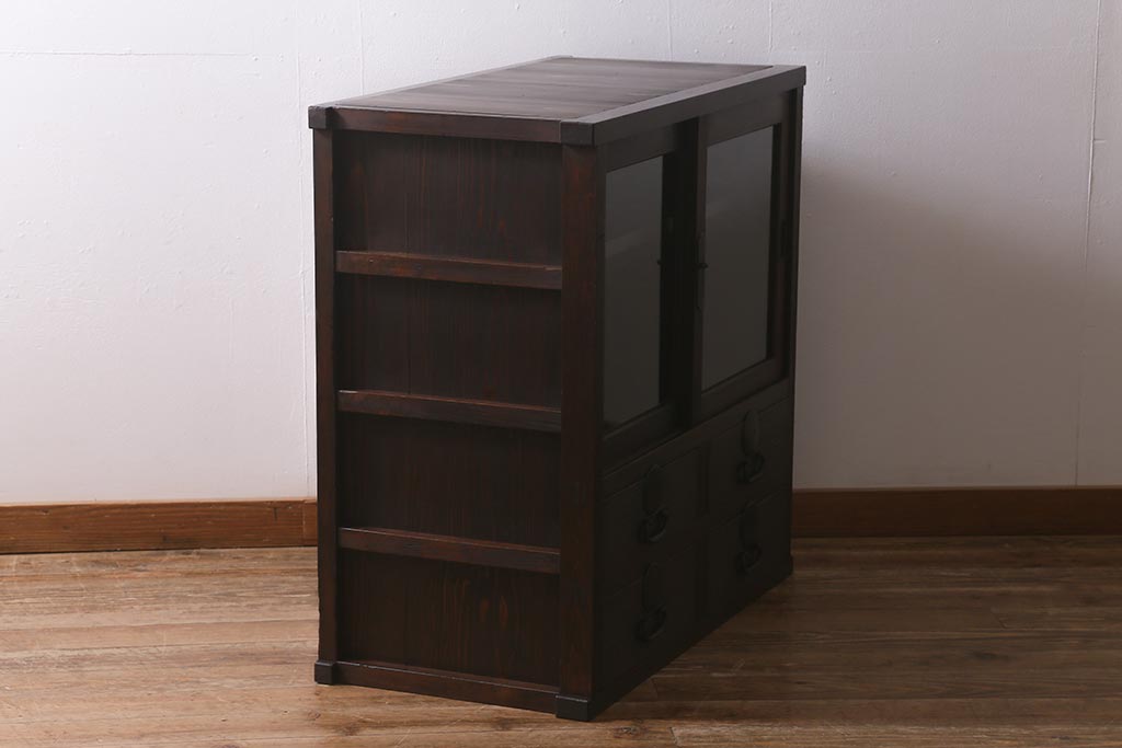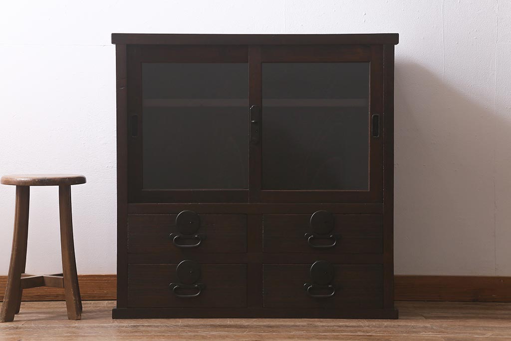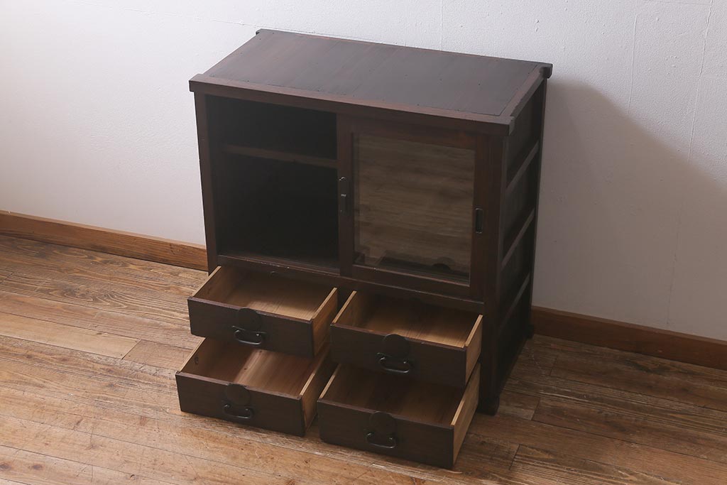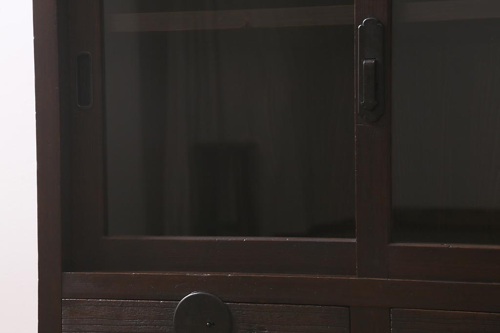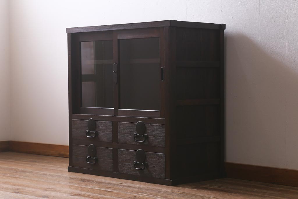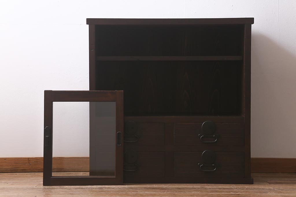 和箪笥 > アンティーク家具 引き出し付き 和の雰囲気漂うガラス戸棚(収納棚、キャビネット)(R-042712)