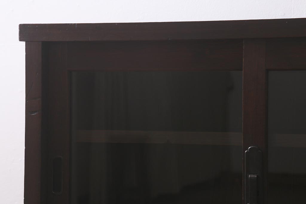 アンティーク家具 引き出し付き 和の雰囲気漂うガラス戸棚(収納棚、キャビネット)(R-042712)