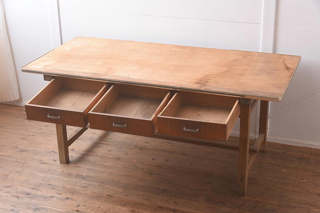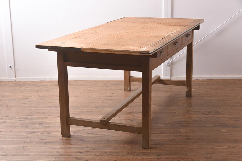 ラフジュ工房> テーブル> 6人用ダイニングテーブル > アンティーク家具 昭和レトロな雰囲気漂う作業台(ダイニングテーブル)(R-042809)