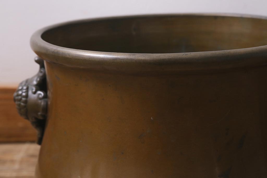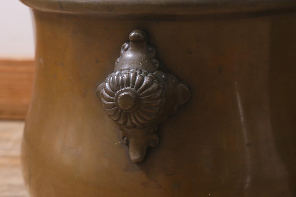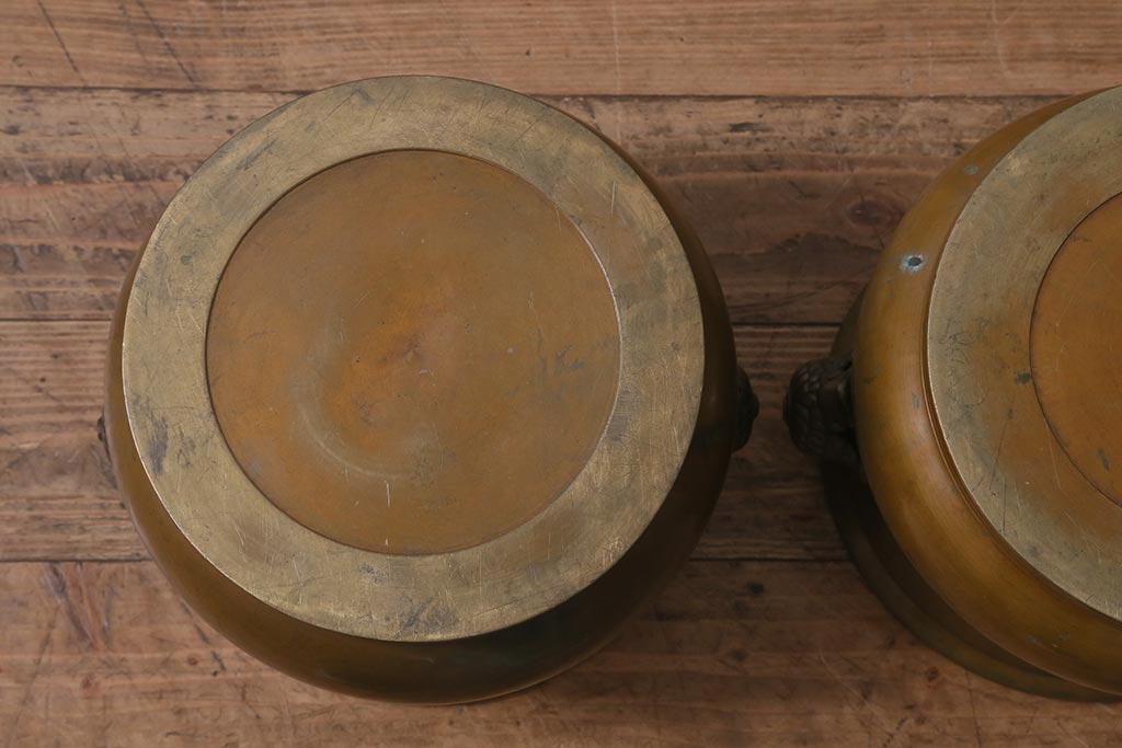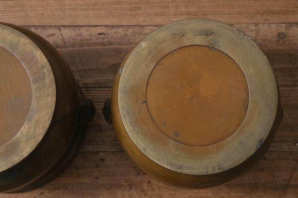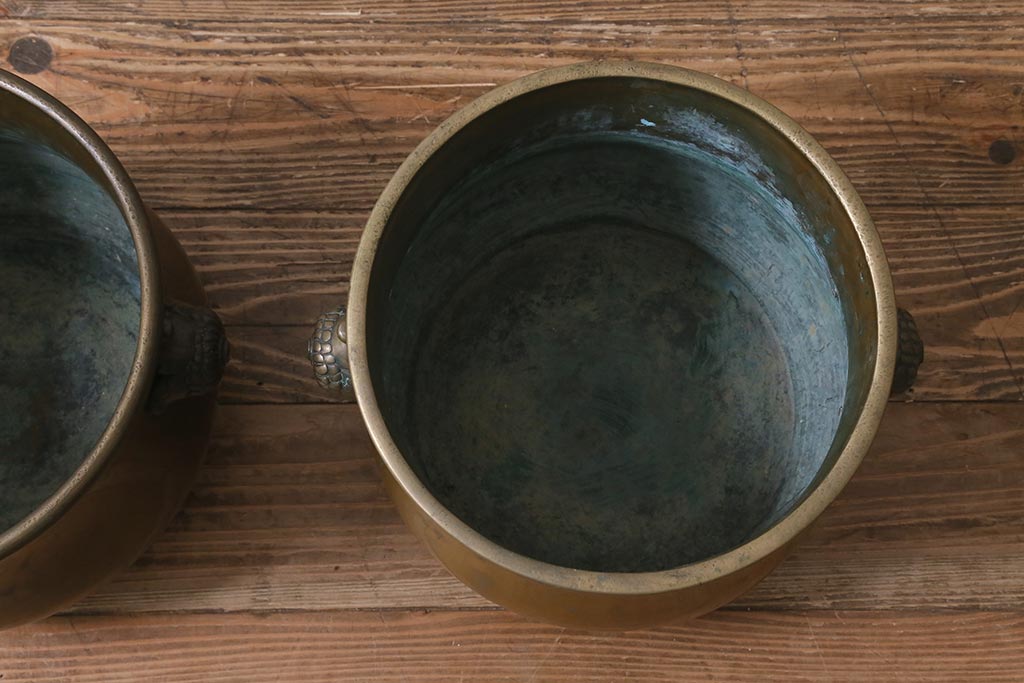 火鉢> 金属火鉢 > アンティーク雑貨 取っ手がおしゃれな真鍮火鉢一対(手あぶり、金属火鉢)(R-042677)