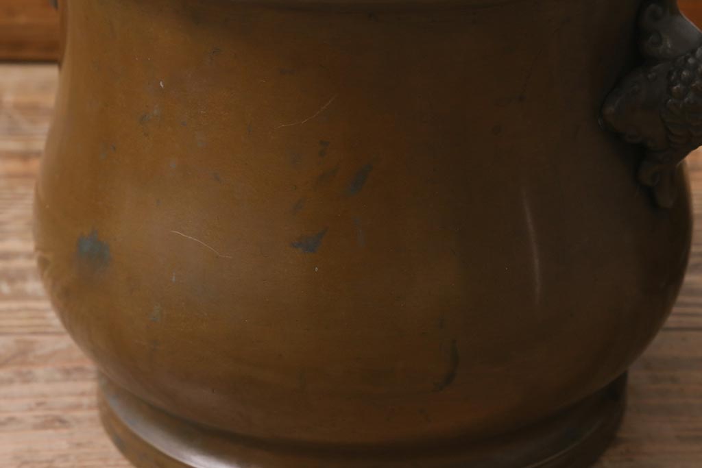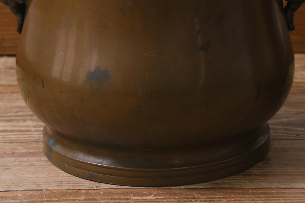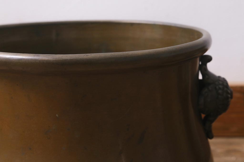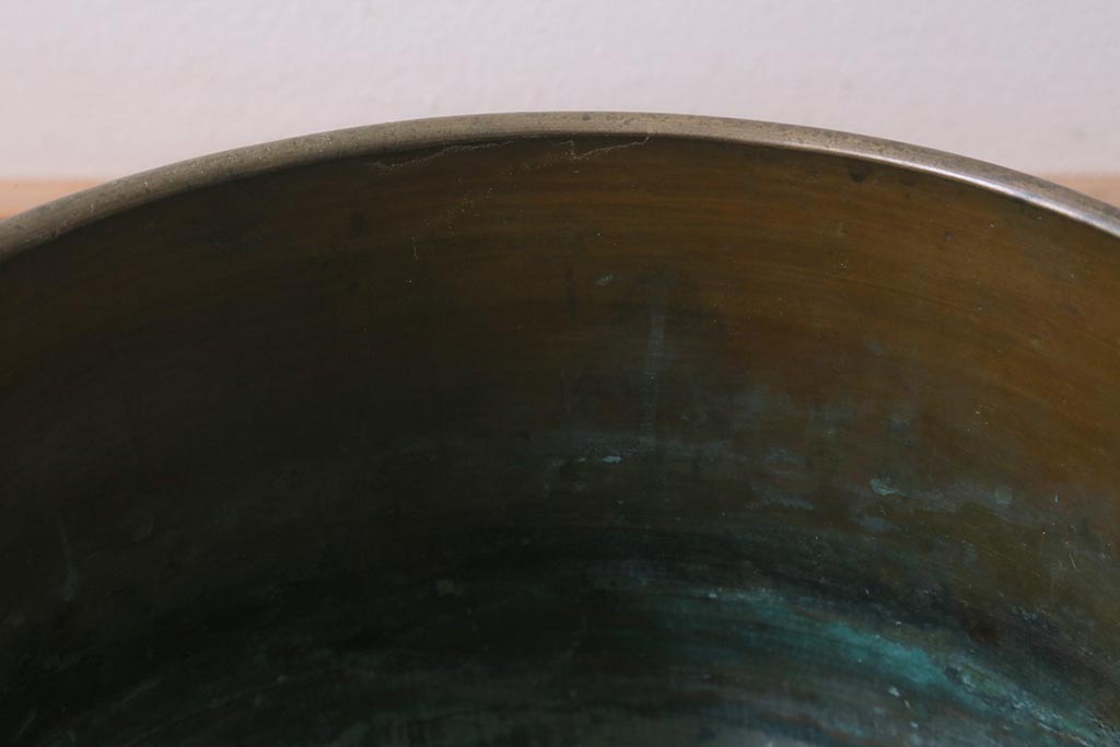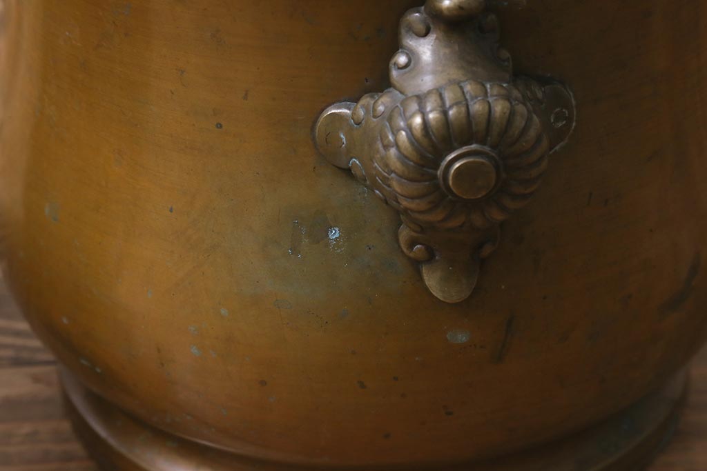 火鉢> 金属火鉢 > アンティーク雑貨 取っ手がおしゃれな真鍮火鉢一対(手あぶり、金属火鉢)(R-042677)