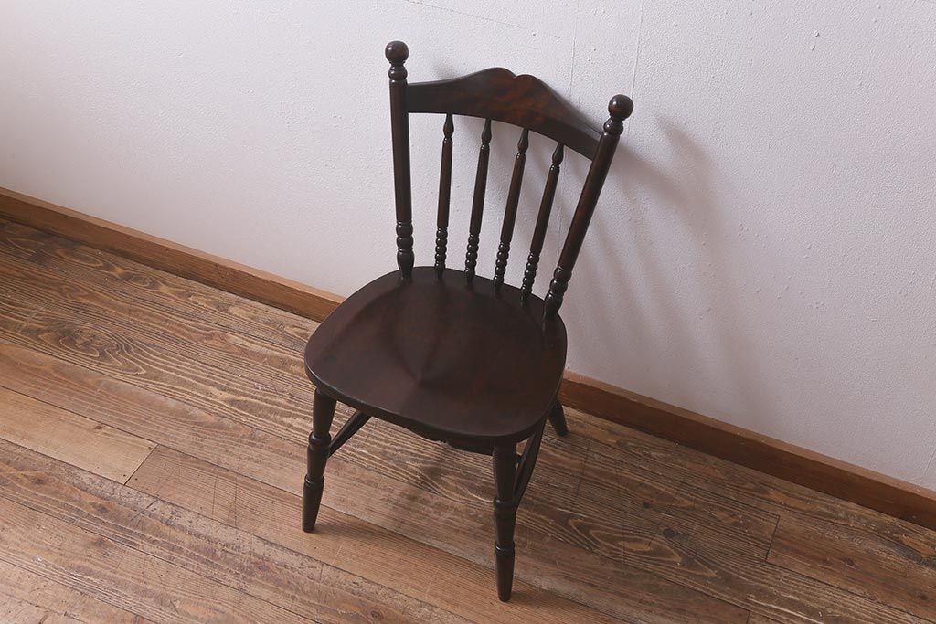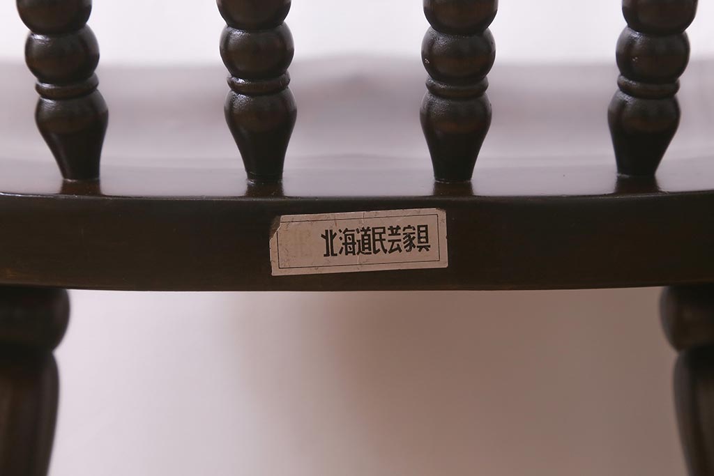 中古 北海道民芸家具 HM626 クラシカルな雰囲気漂うダイニングチェア(椅子、ウィンザーチェア、板座チェア)(R-042836)です。