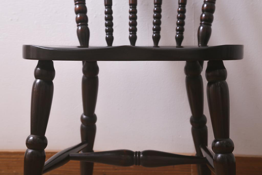 椅子・ベンチ> ウィンザーチェア > 中古 北海道民芸家具 HM626 クラシカルな雰囲気漂うダイニングチェア(椅子、ウィンザーチェア、板座チェア、ウインザーチェア)(R-042836)