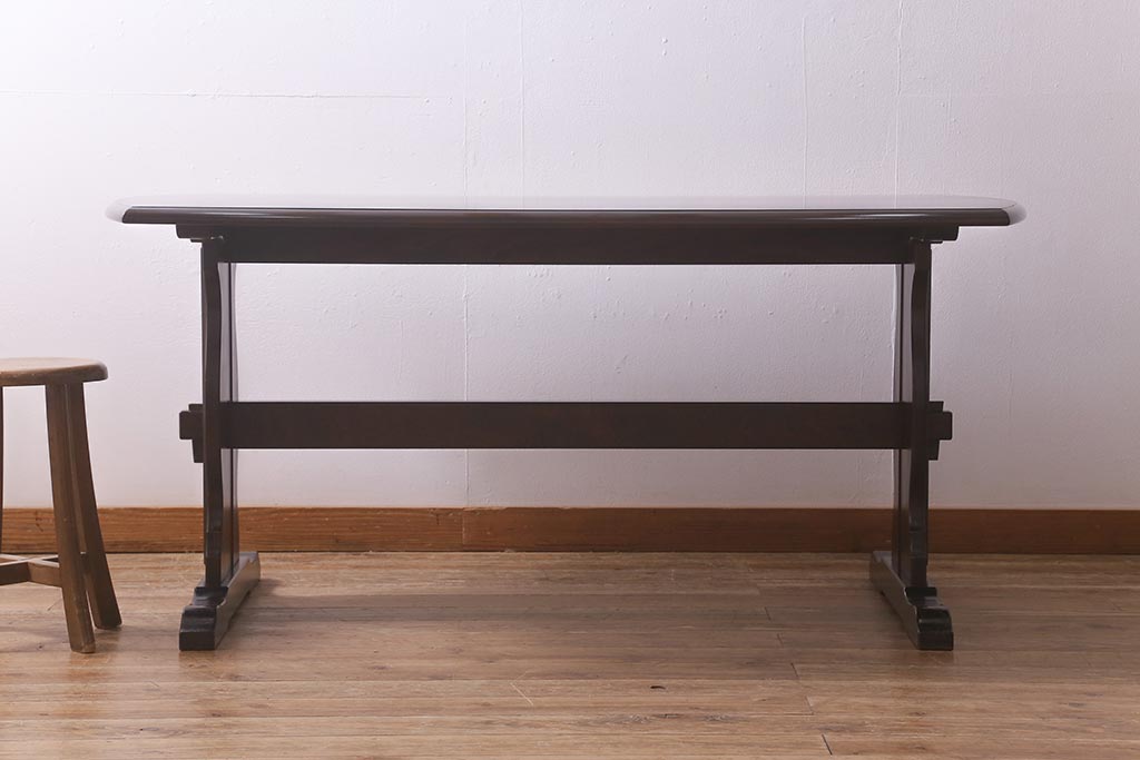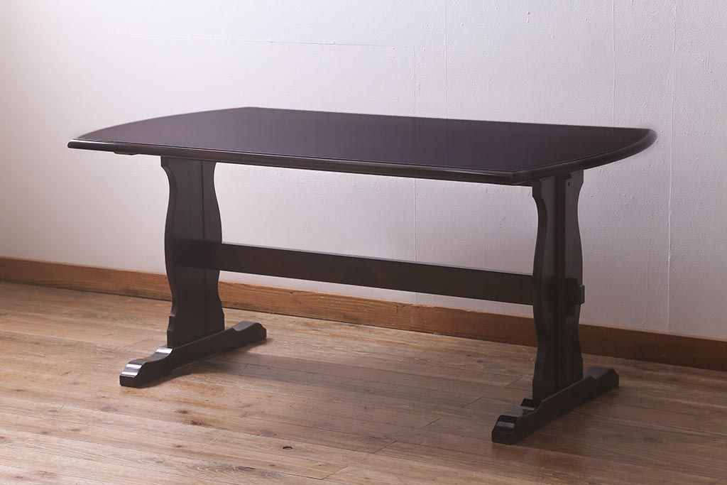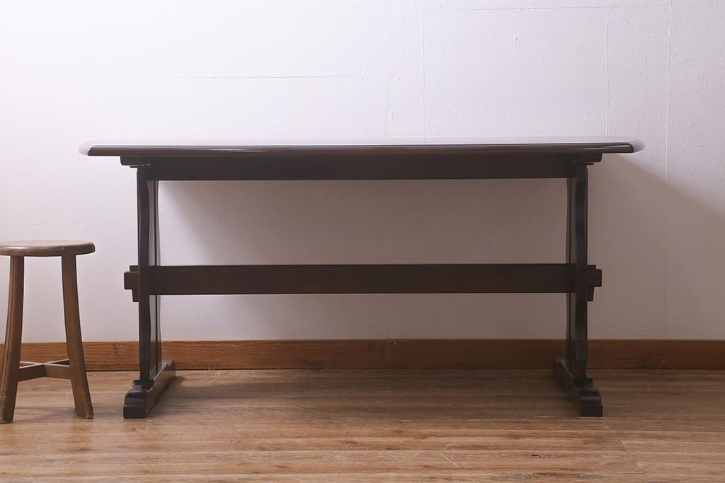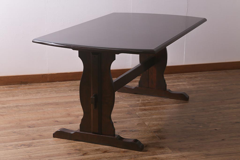 ビンテージ家具 北海道民芸家具 脚のデザインが魅力のシックな4人掛けダイニングテーブル(机)(R-042814)です。