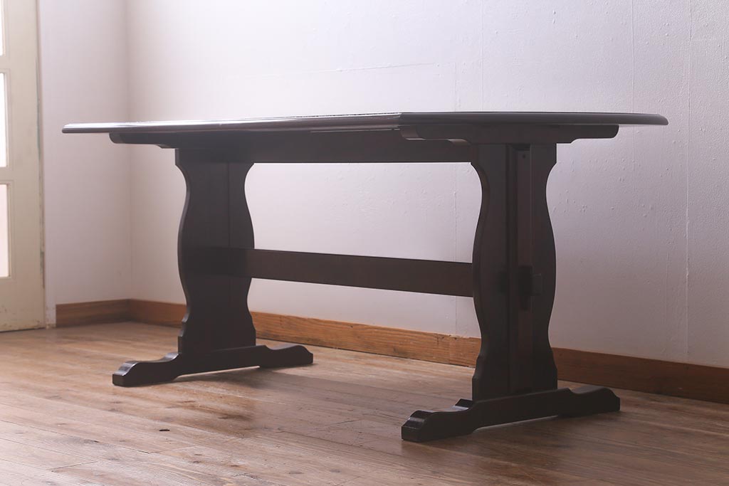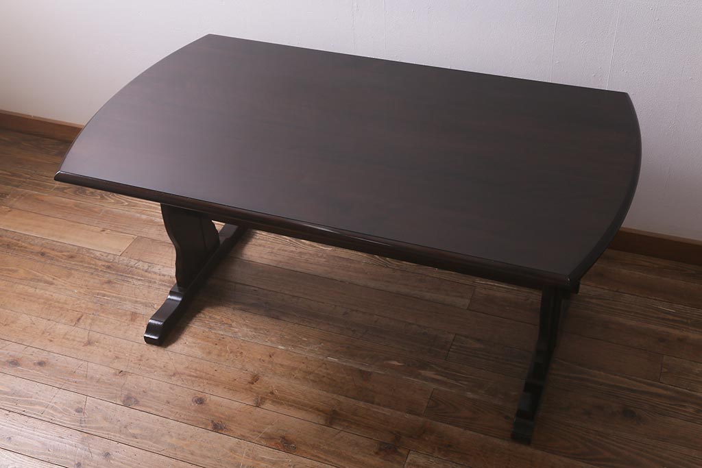 ビンテージ家具 北海道民芸家具 脚のデザインが魅力のシックな4人掛けダイニングテーブル(机)(R-042814)