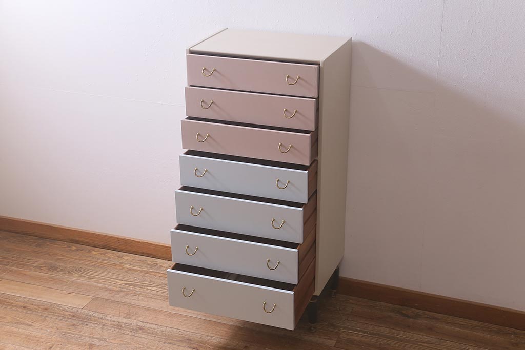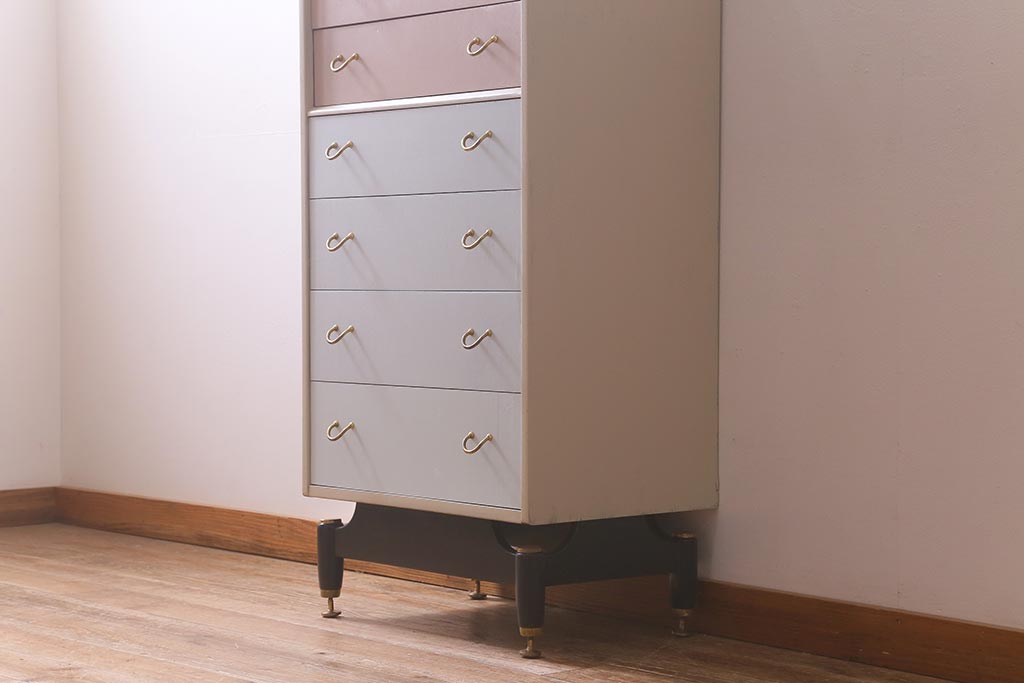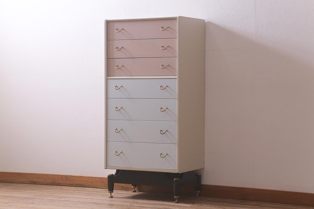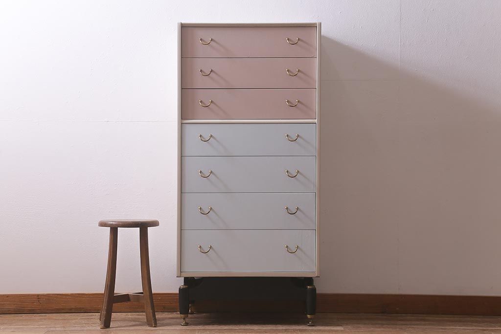 ヴィンテージ家具 北欧ビンテージ G-PLAN(ジープラン) リペイントがかわいらしいBBシリーズの縦型チェスト(サイドチェスト、引き出し)(R-042816)