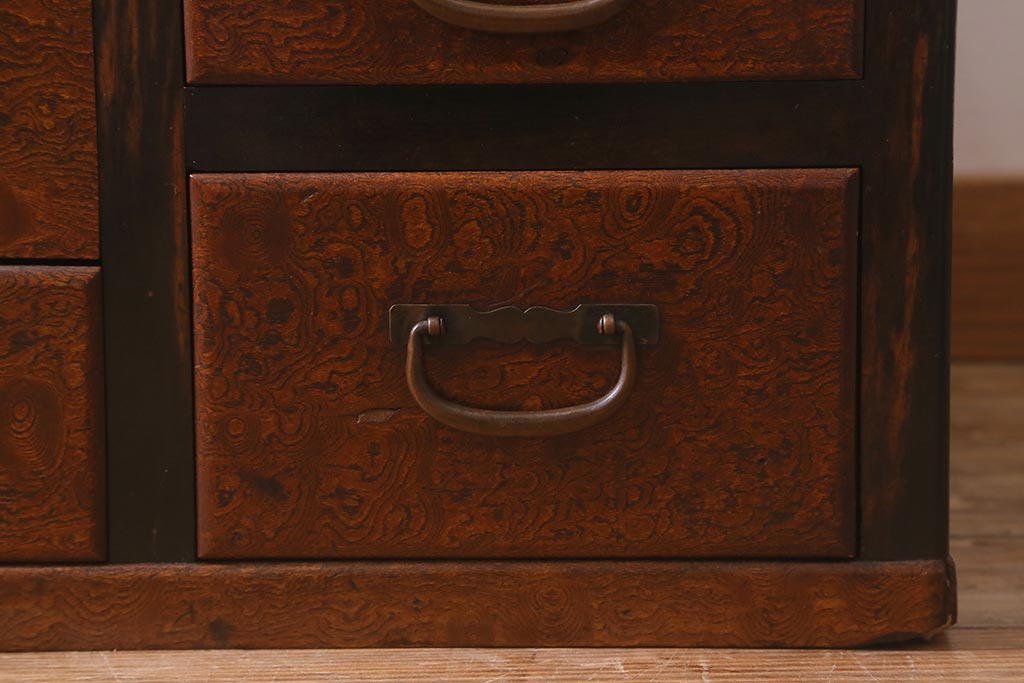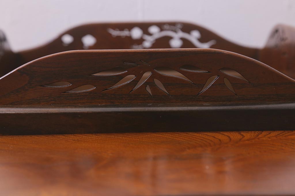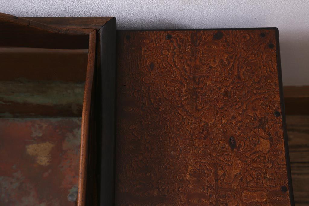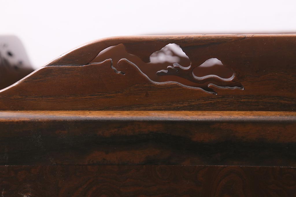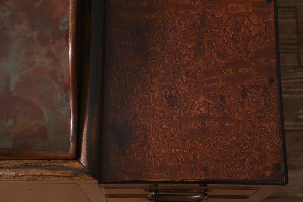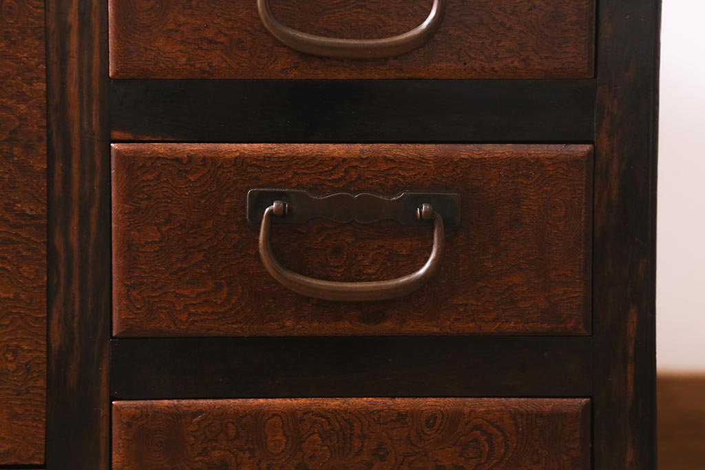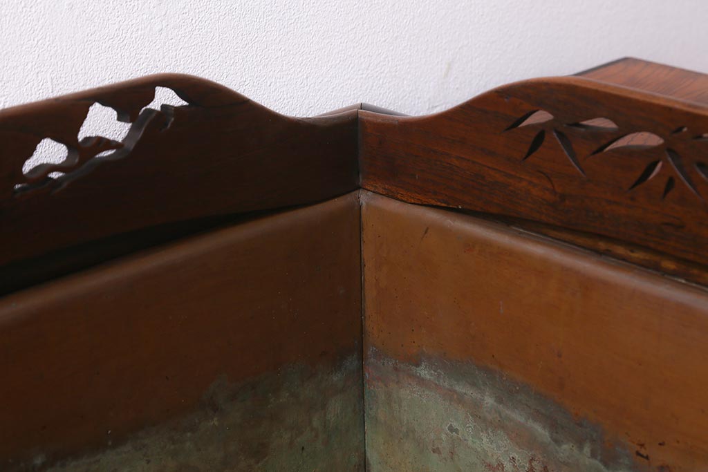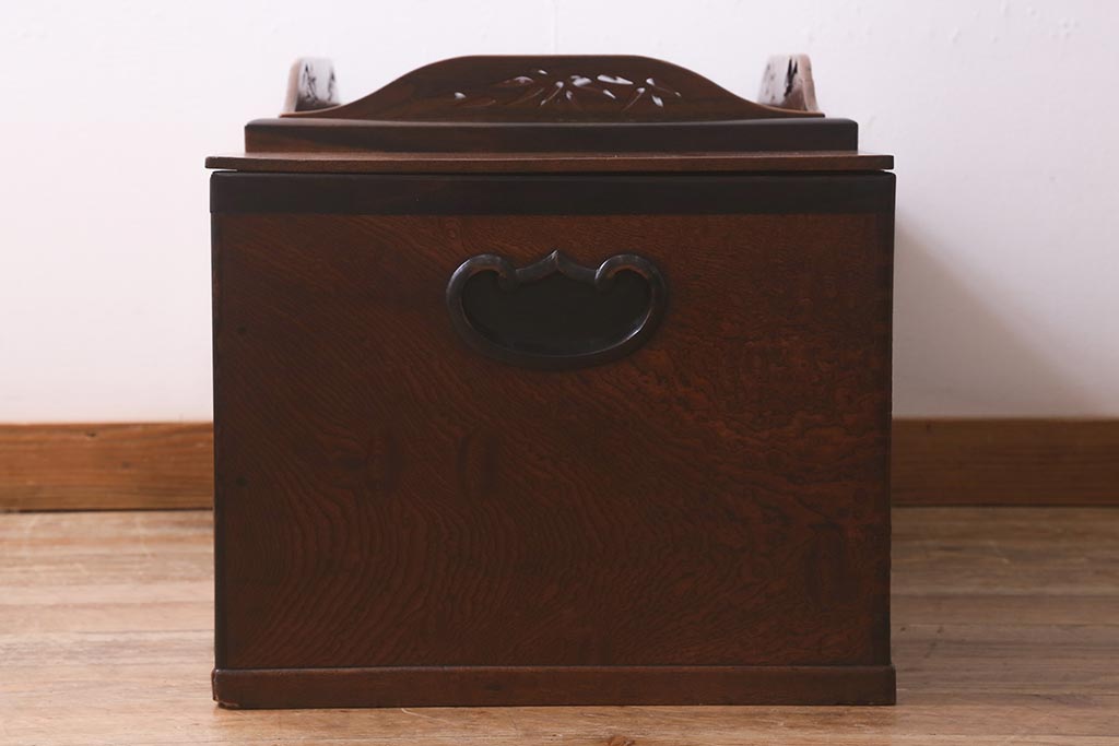 火鉢> 木製火鉢 > アンティーク家具 特注 透かし入り 黒柿・ケヤキ材 玉杢が美しい上手物の長火鉢(木製火鉢)(R-042817)