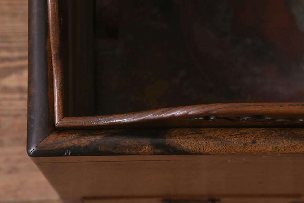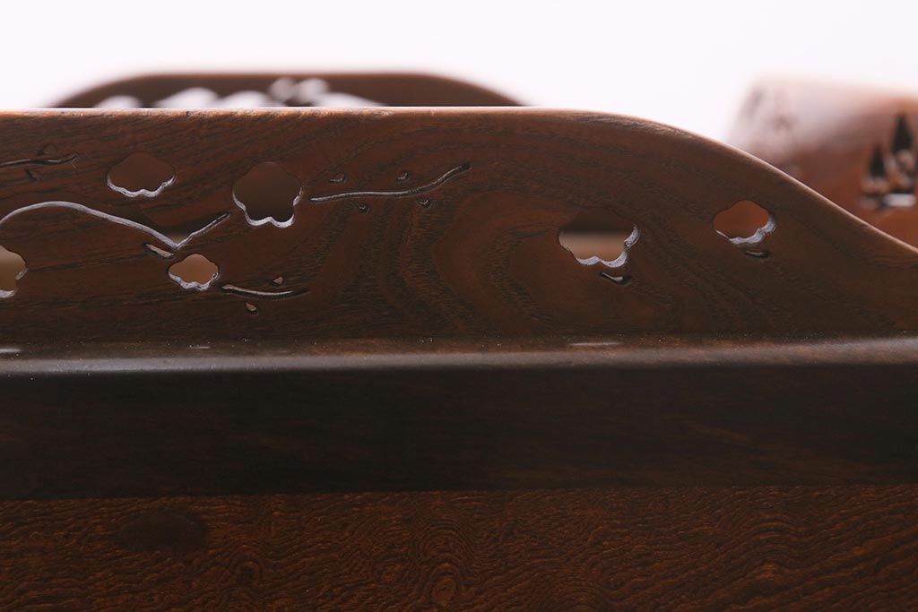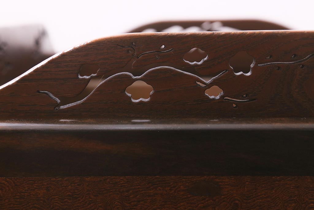 火鉢> 長火鉢 > アンティーク家具 特注 透かし入り 黒柿・ケヤキ材 玉杢が美しい上手物の長火鉢(木製火鉢)(R-042817)