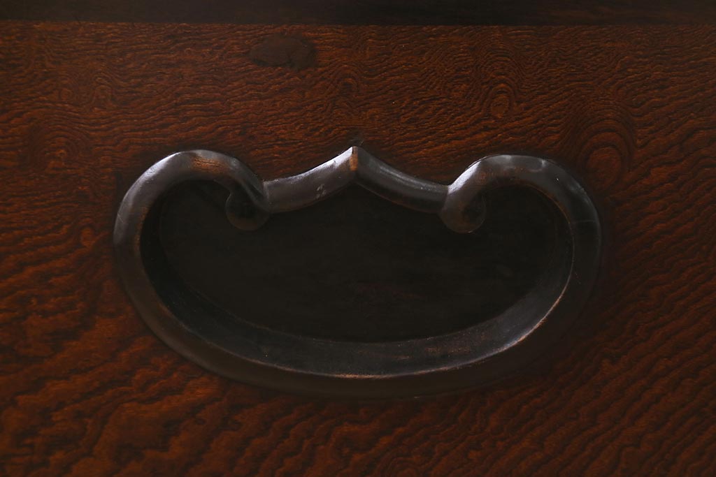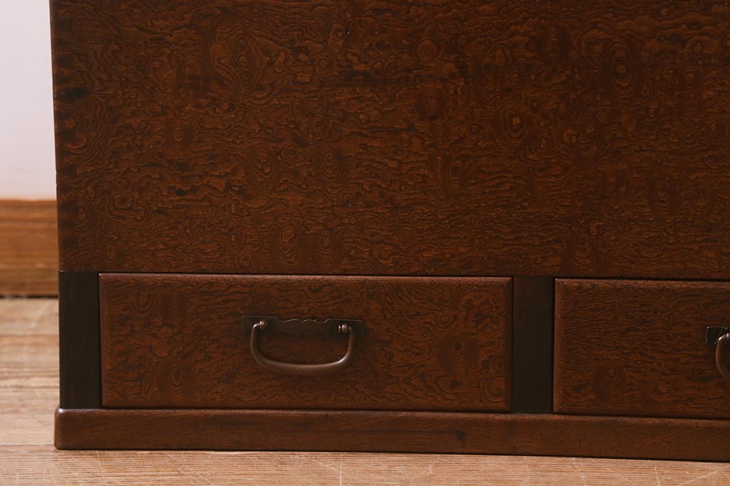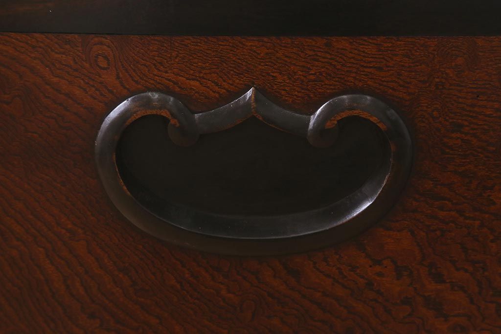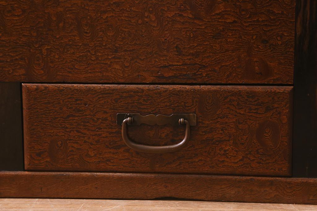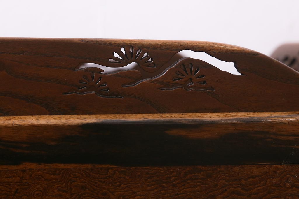 アンティーク家具 特注 透かし入り 黒柿・ケヤキ材 玉杢が美しい上手物の長火鉢(木製火鉢)(R-042817)