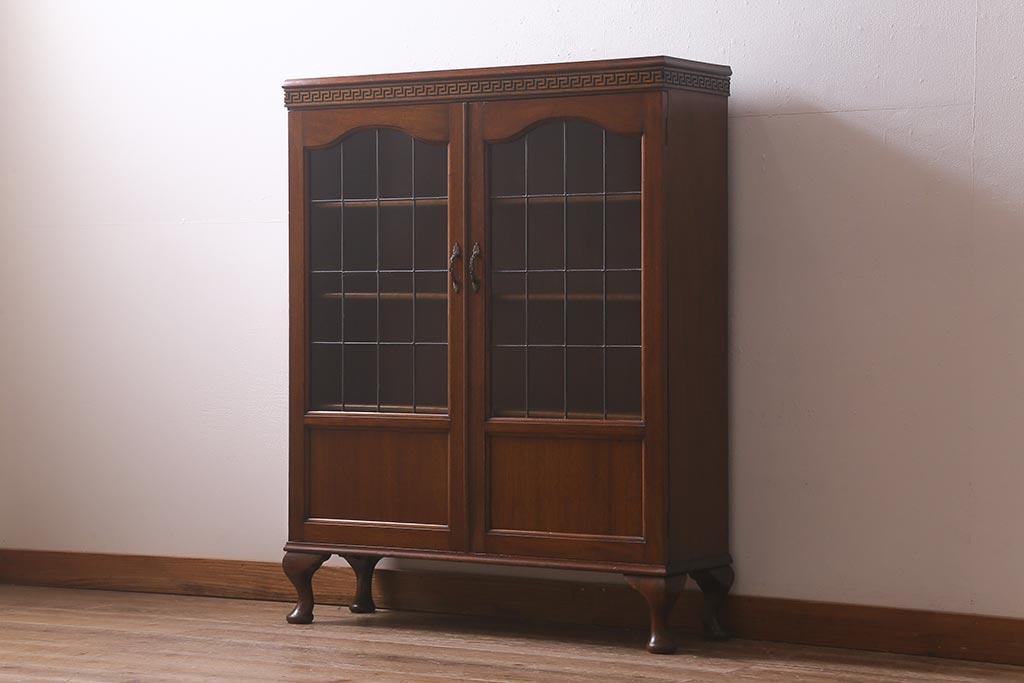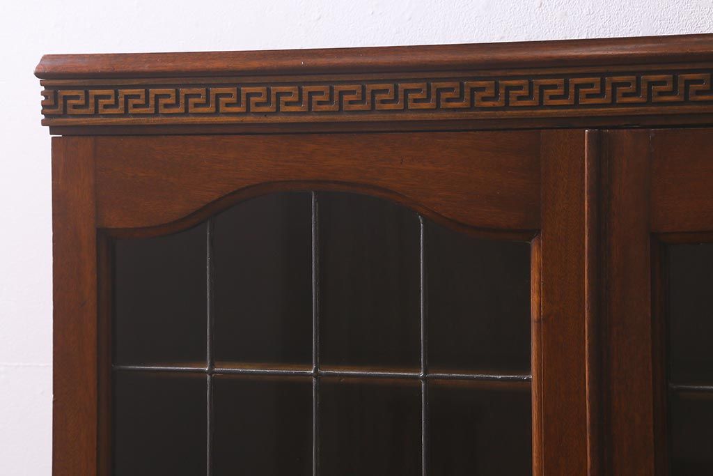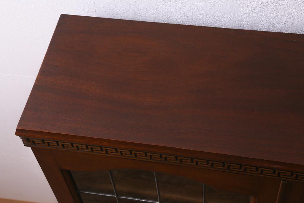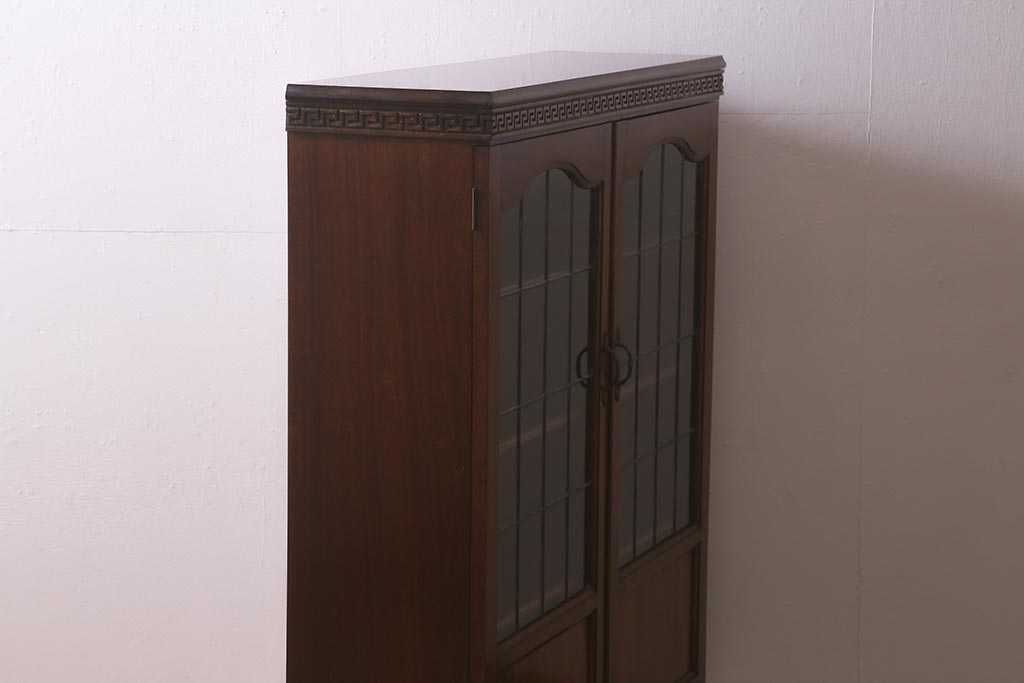 ステンドグラス > アンティーク家具 イギリスアンティーク マホガニー材 ステンドガラスが上品な大人の雰囲気漂うキャビネット(飾り棚、収納棚、食器棚)(R-042728)