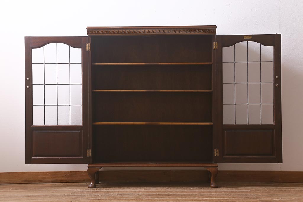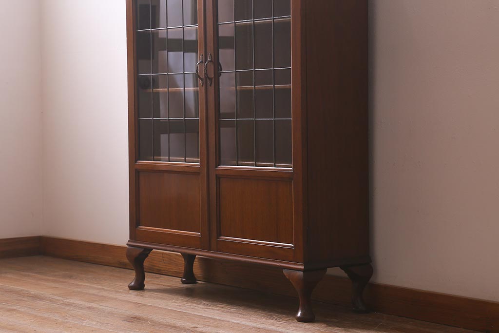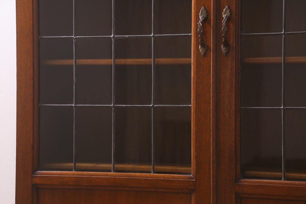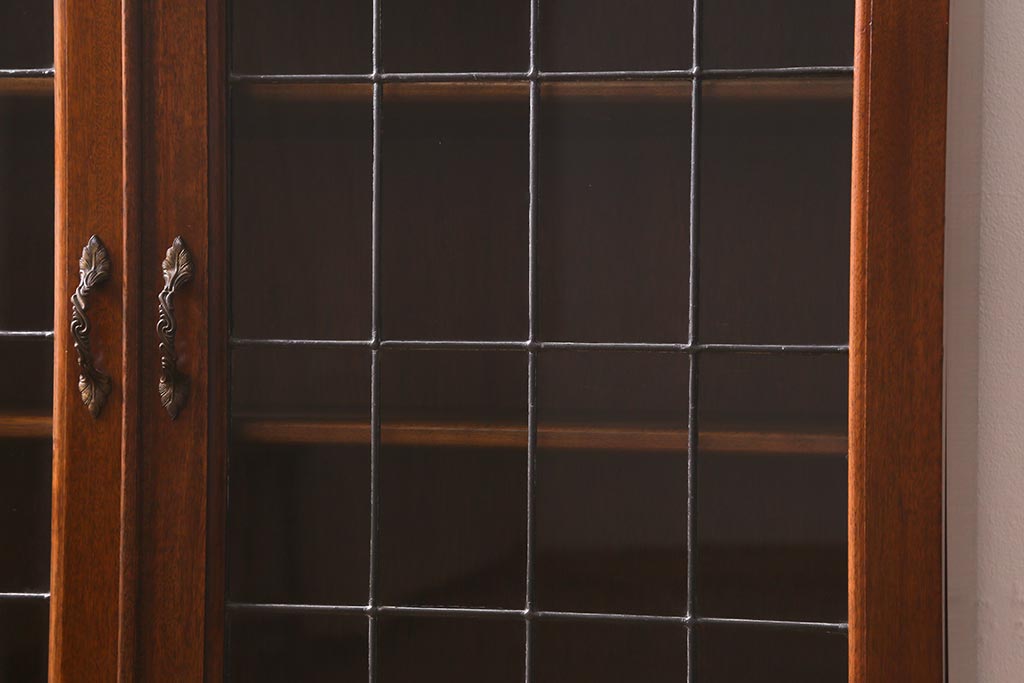 アンティーク家具 イギリスアンティーク マホガニー材 ステンドガラスが上品な大人の雰囲気漂うキャビネット(飾り棚、収納棚、食器棚)(R-042728)