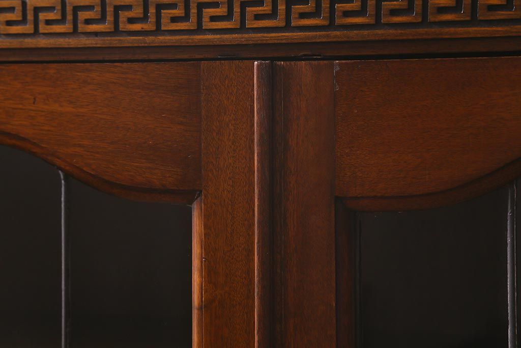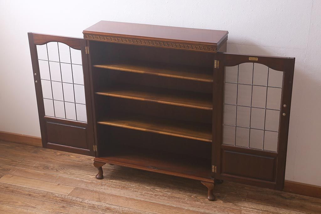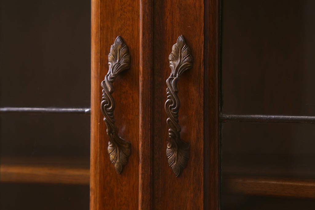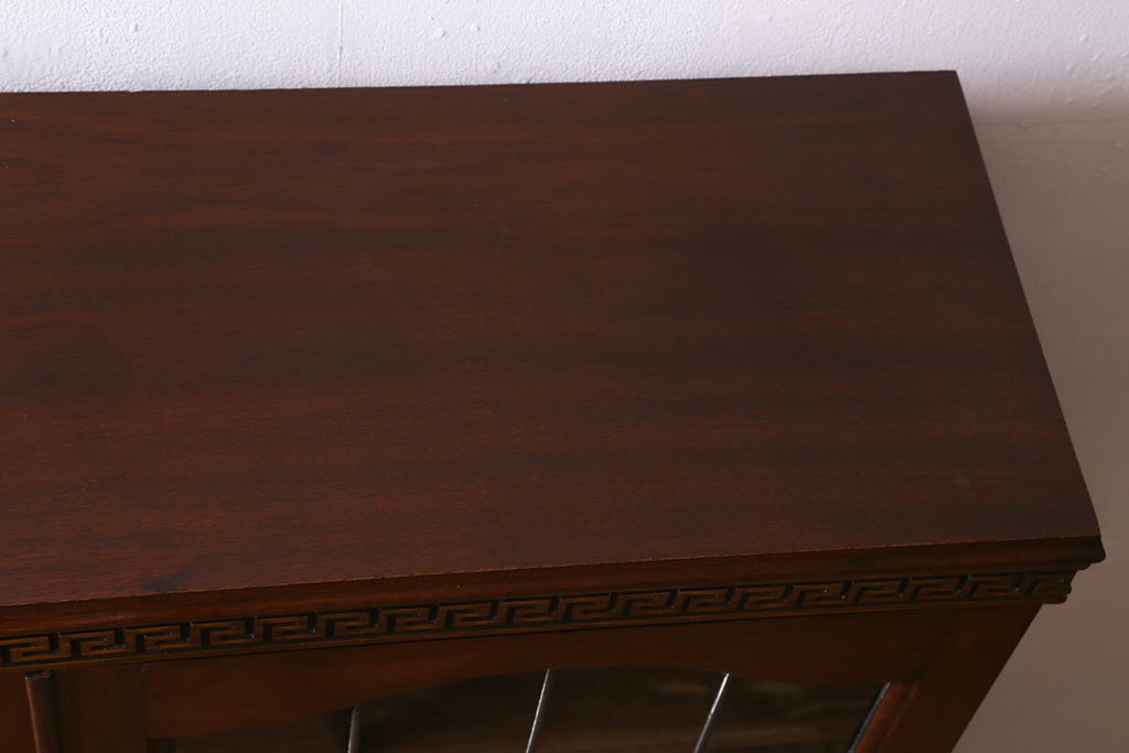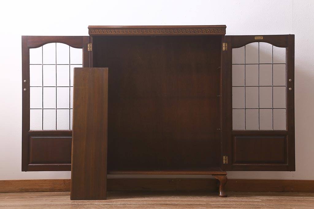キャビネット・戸棚> 食器棚・カップボード > アンティーク家具 イギリスアンティーク マホガニー材 ステンドガラスが上品な大人の雰囲気漂うキャビネット(飾り棚、収納棚、食器棚)(R-042728)
