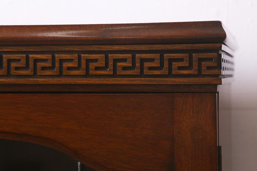 アンティーク家具 イギリスアンティーク マホガニー材 ステンドガラスが上品な大人の雰囲気漂うキャビネット(飾り棚、収納棚、食器棚)(R-042728)です。