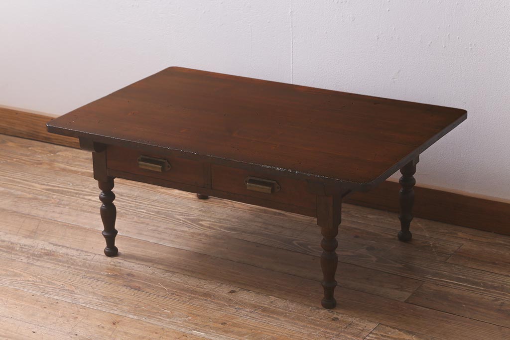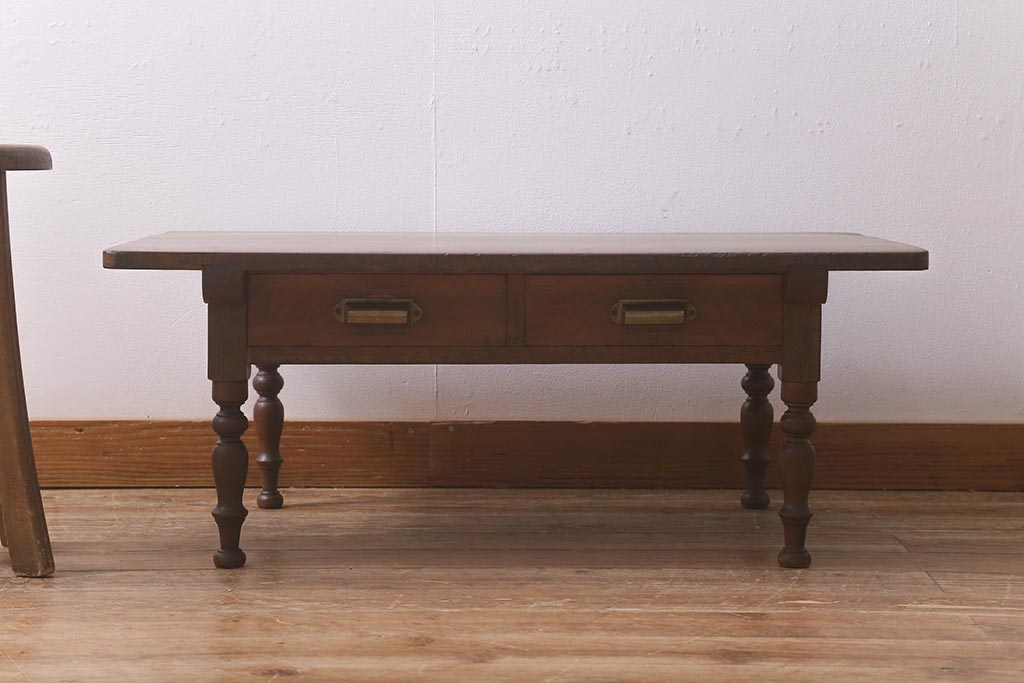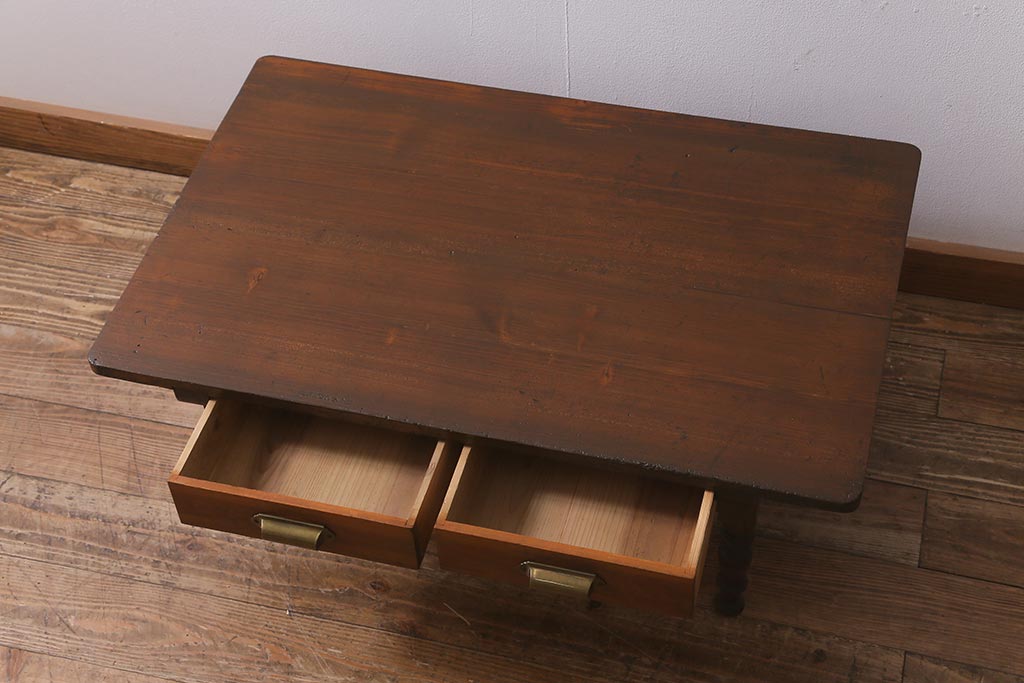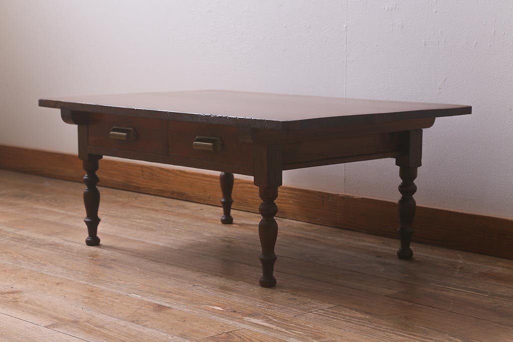アンティーク家具 和製アンティーク 昭和初期 ヒノキ材 大正ロマンの雰囲気漂う文机(座卓、座机、ローテーブル、センターテーブル)(R-042882)です。