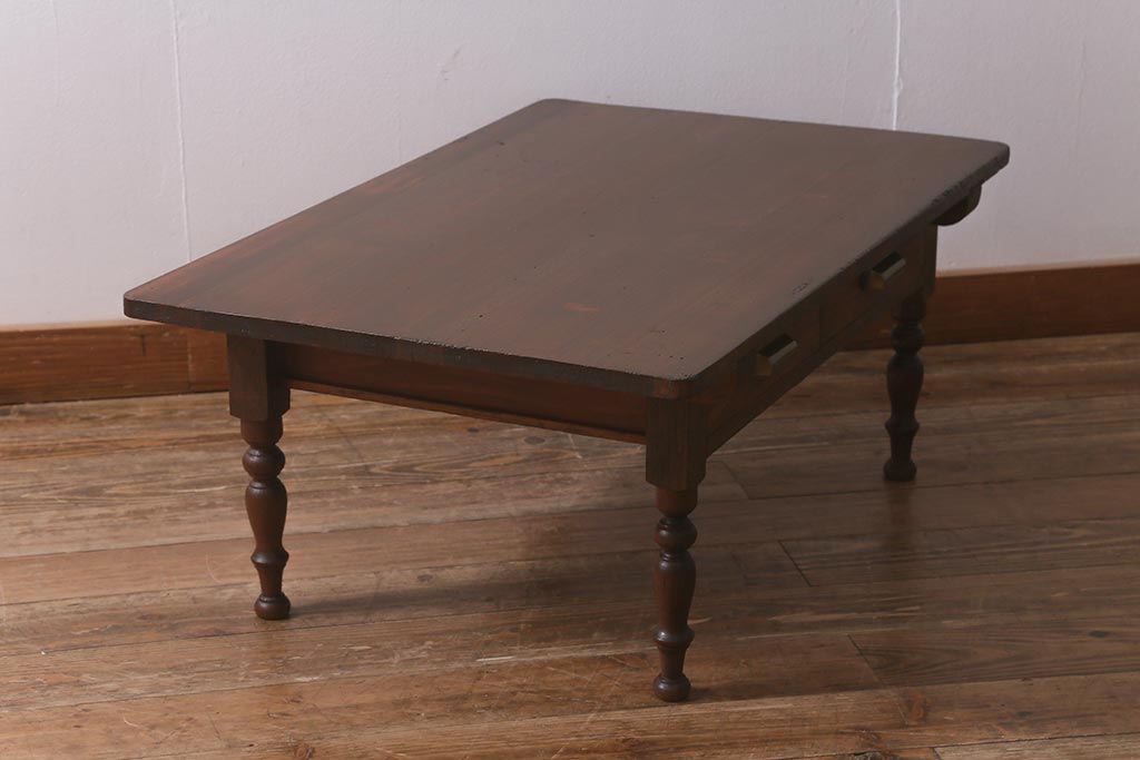 テーブル> 座卓 > アンティーク家具 和製アンティーク 昭和初期 ヒノキ材 大正ロマンの雰囲気漂う文机(座卓、座机、ローテーブル、センターテーブル)(R-042882)