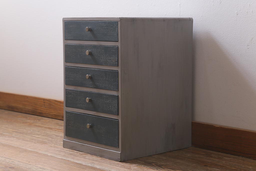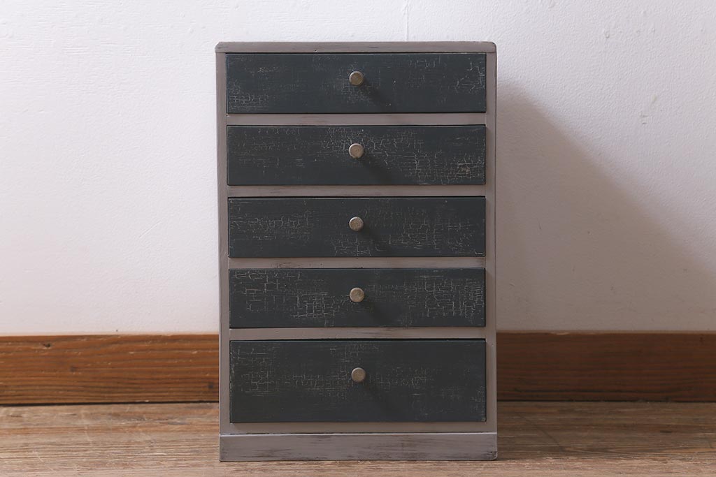 和製アンティーク アンティークペイント 昭和中期 ユニセックスなデザインが魅力の小引き出し(小物収納)(R-042883)