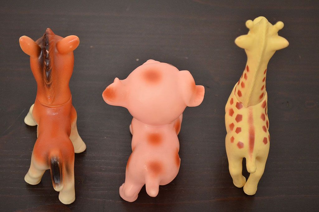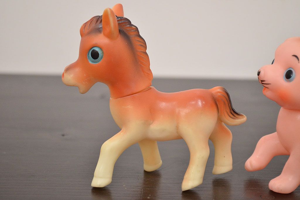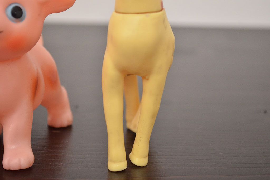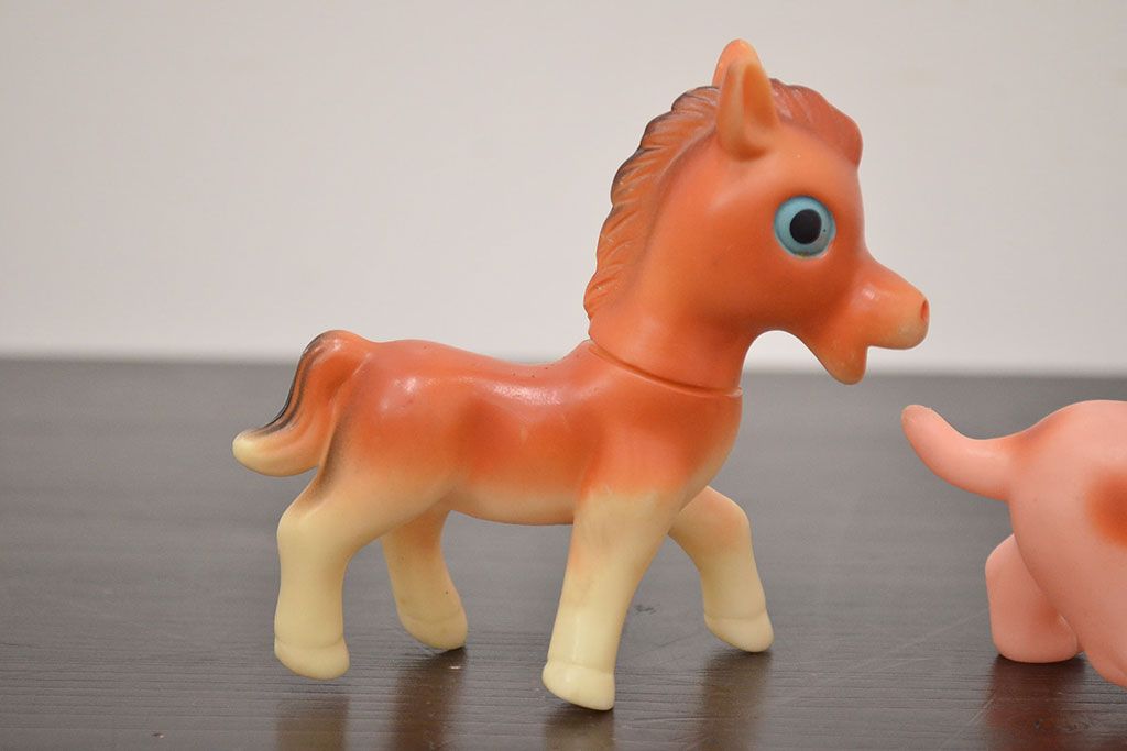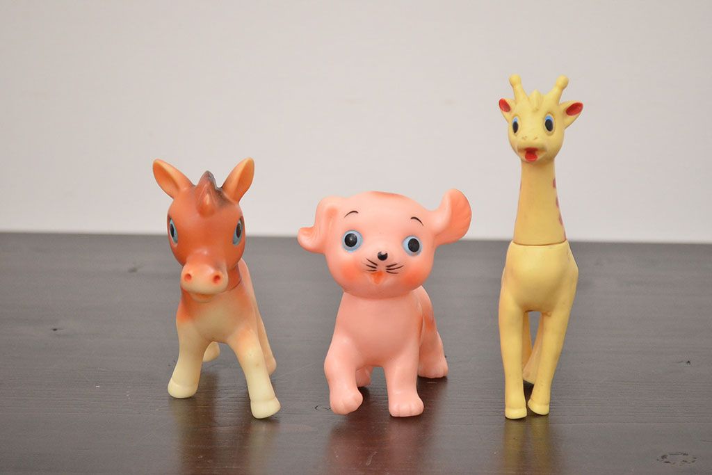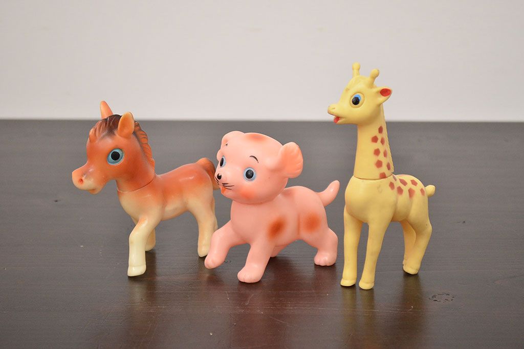 アンティーク雑貨 昭和レトロ ビンテージラバードール3点(馬、犬、きりん、ビニール人形)(R-042446)