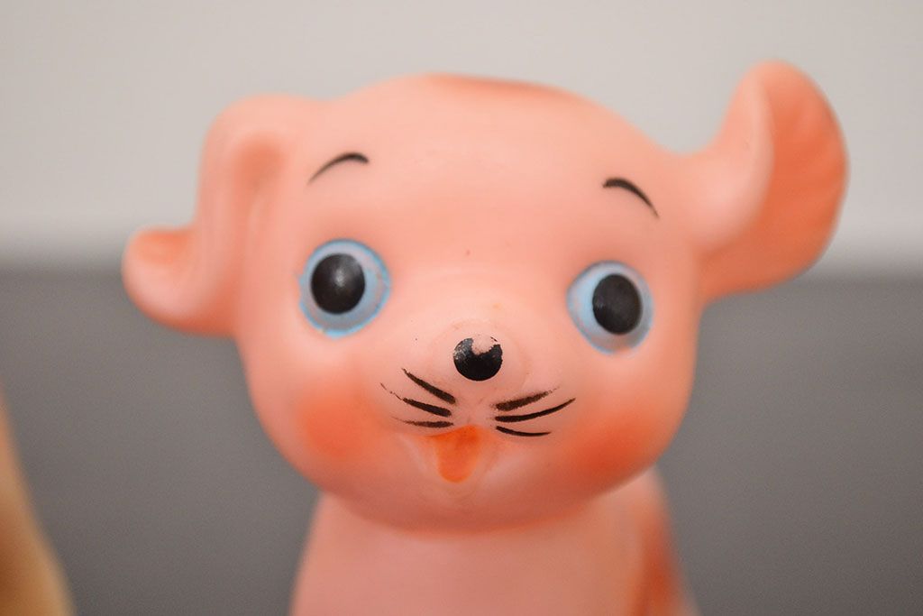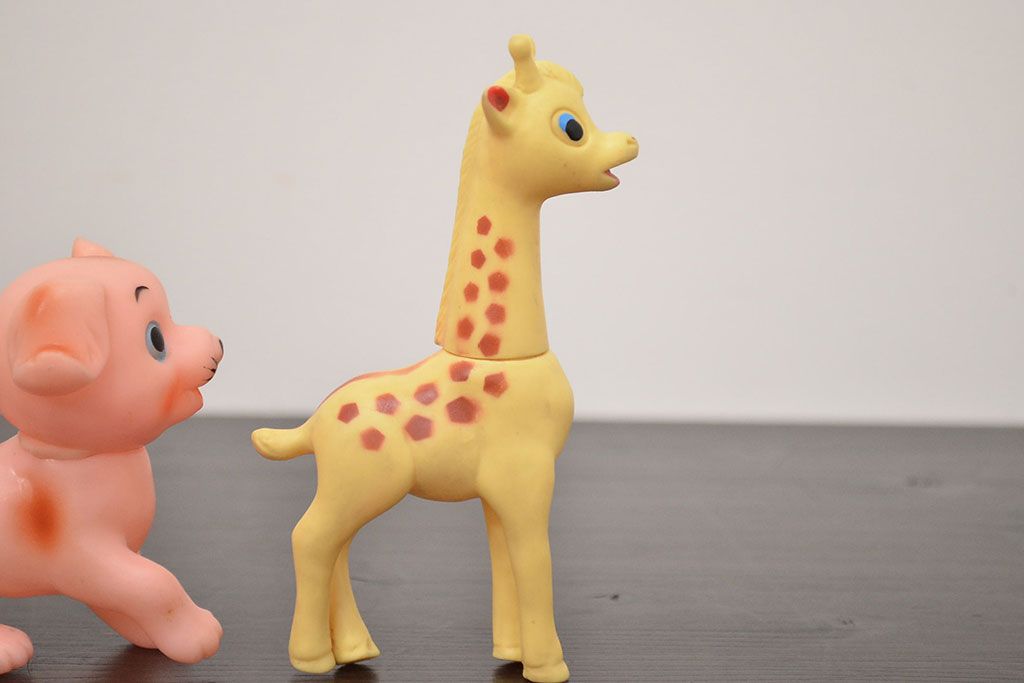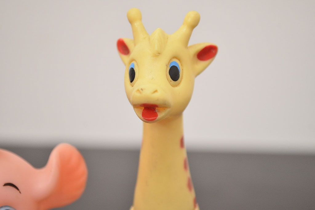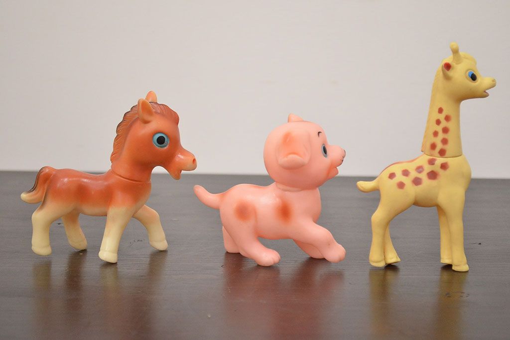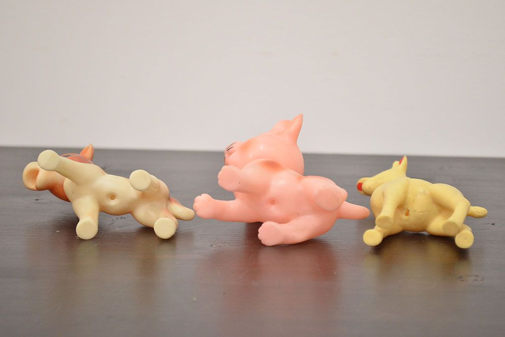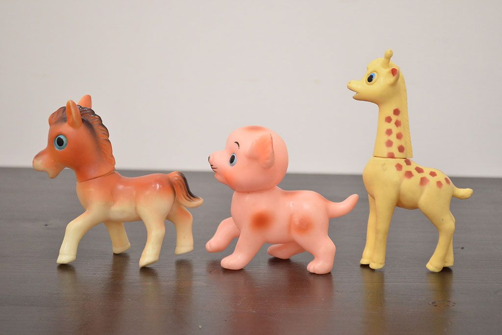アンティーク雑貨 昭和レトロ ビンテージラバードール3点(馬、犬、きりん、ビニール人形)(R-042446)