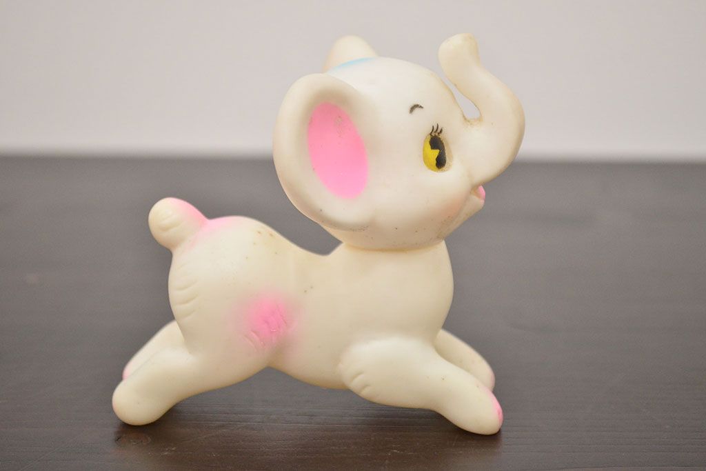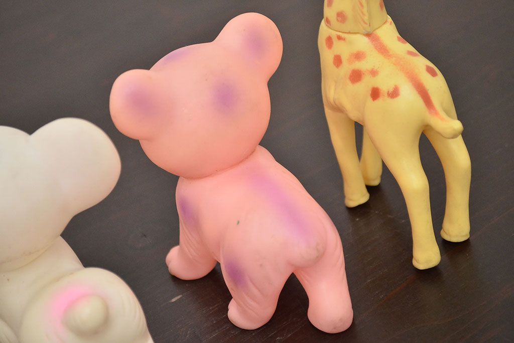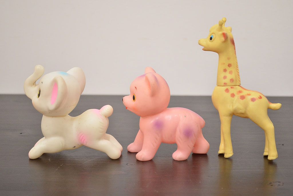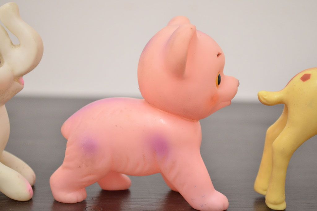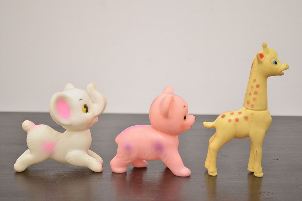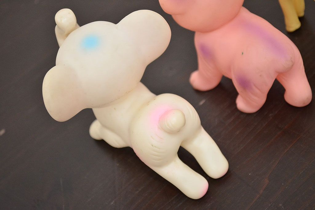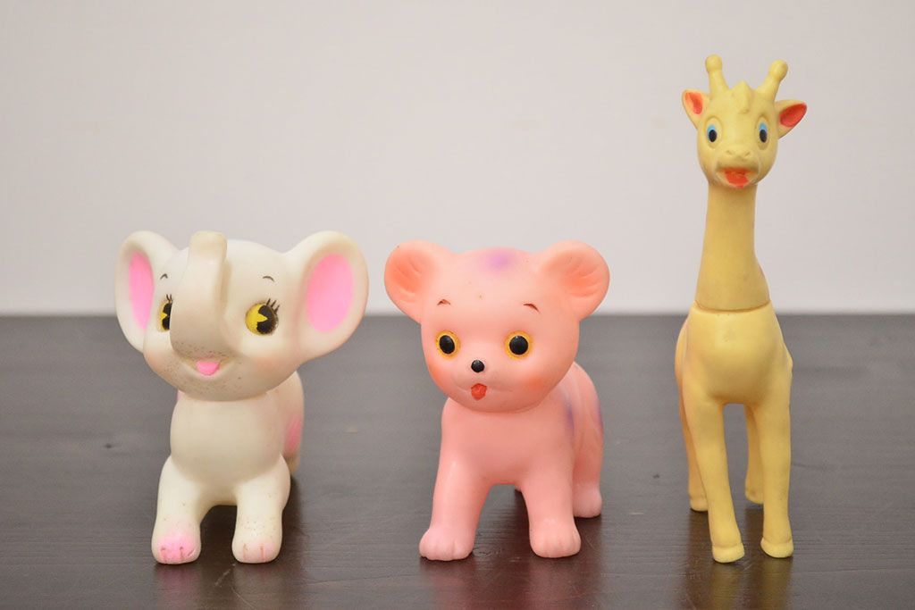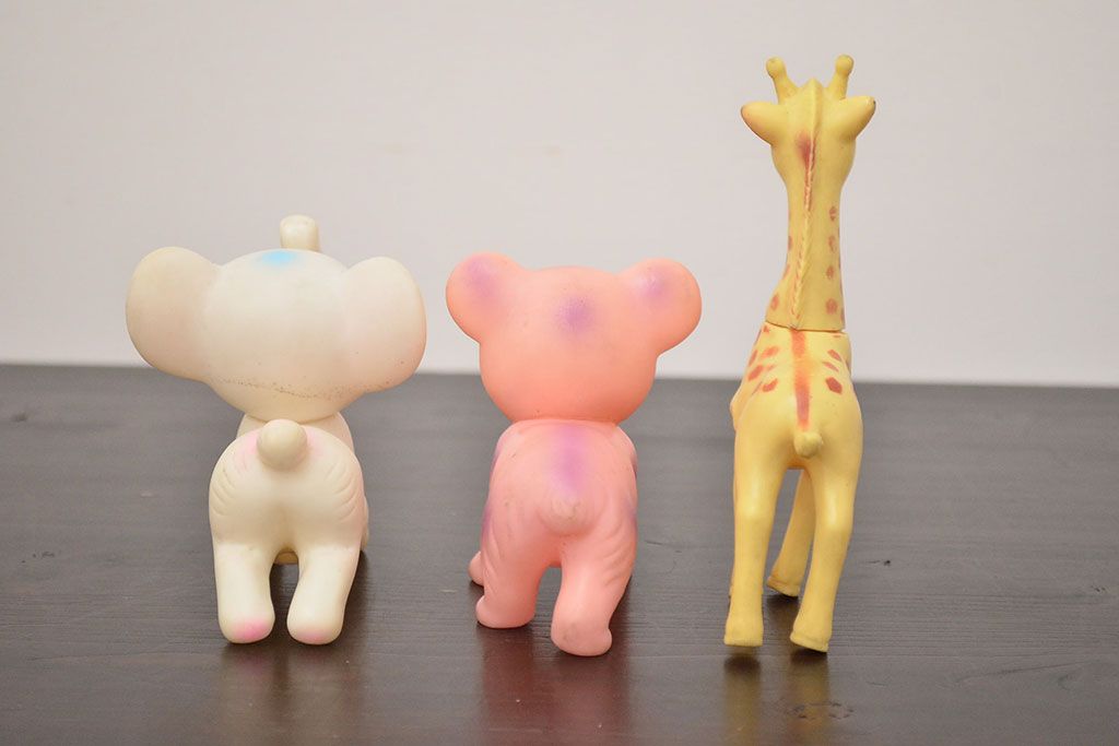 アンティーク雑貨 昭和レトロ ビンテージラバードール3点(象、ねこ、きりん、ビニール人形)(R-042447)