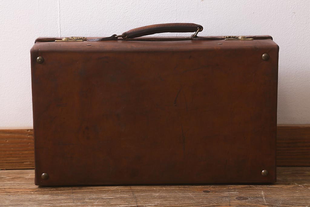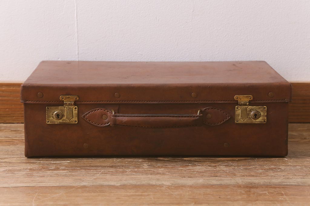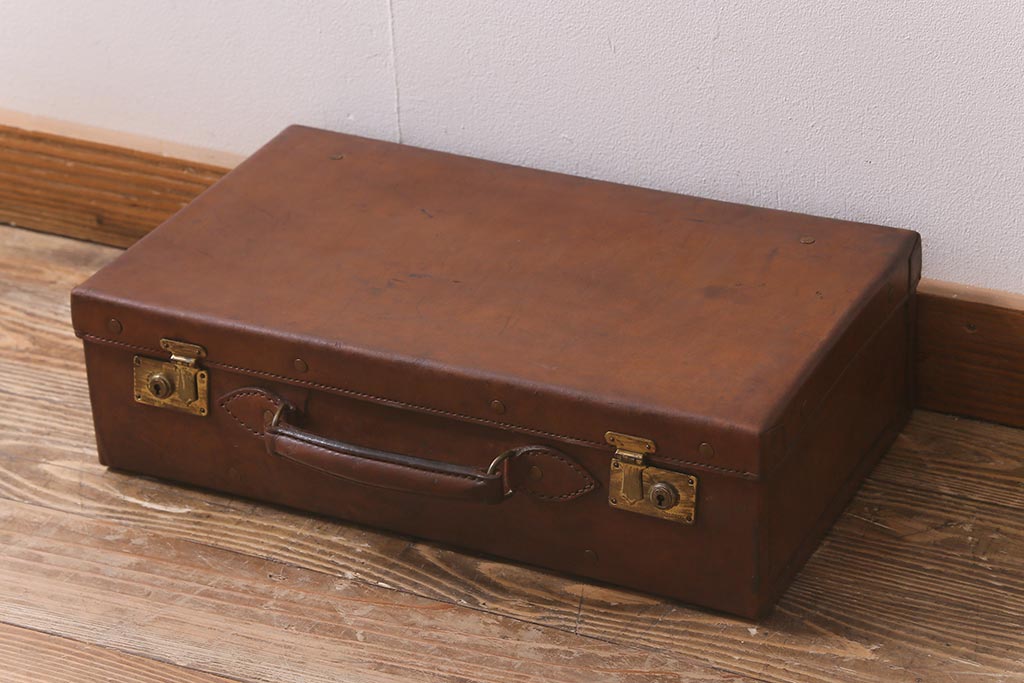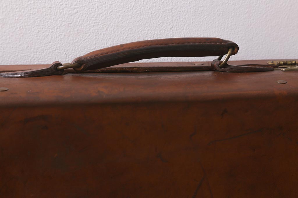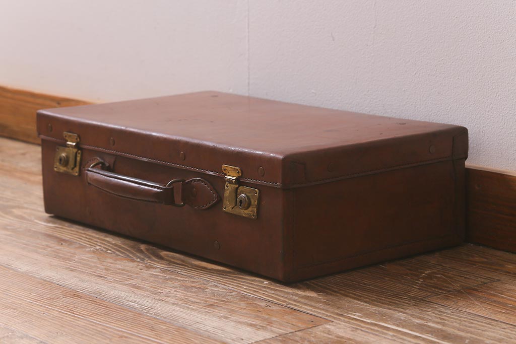 アンティーク雑貨 本革 レトロな魅力が漂うトランク(鞄、カバン、収納、ディスプレイ)(R-042823)です。