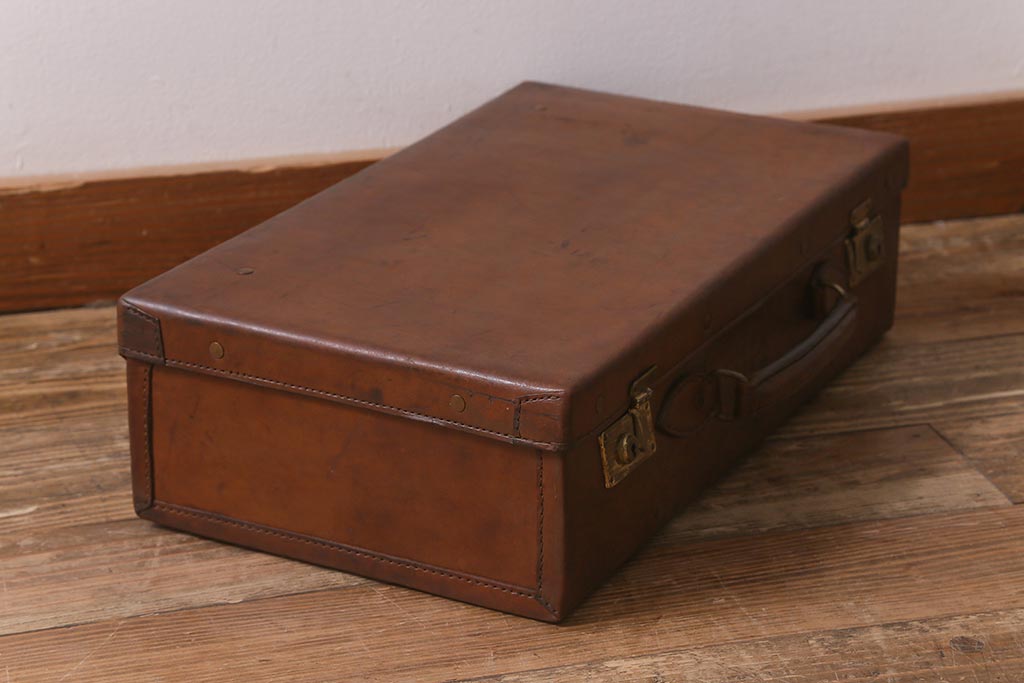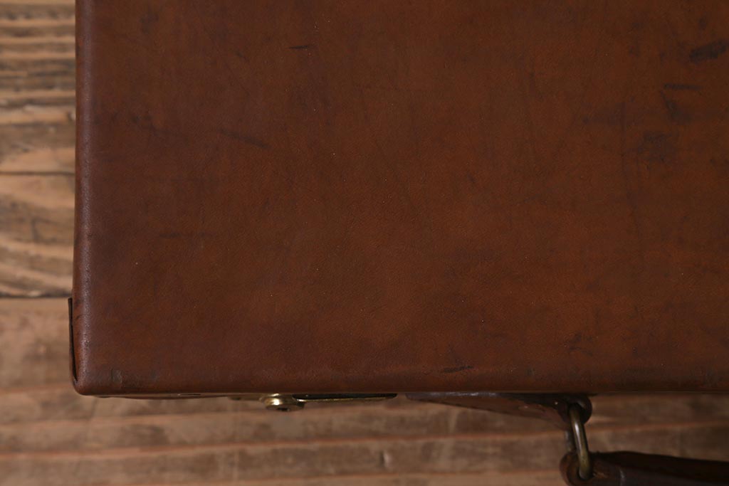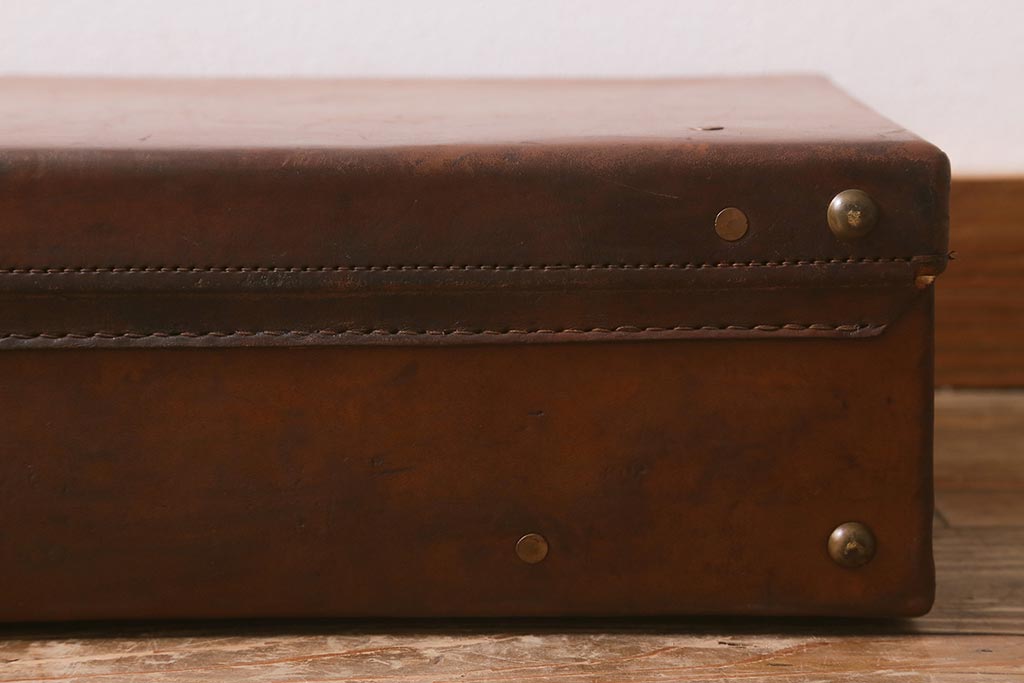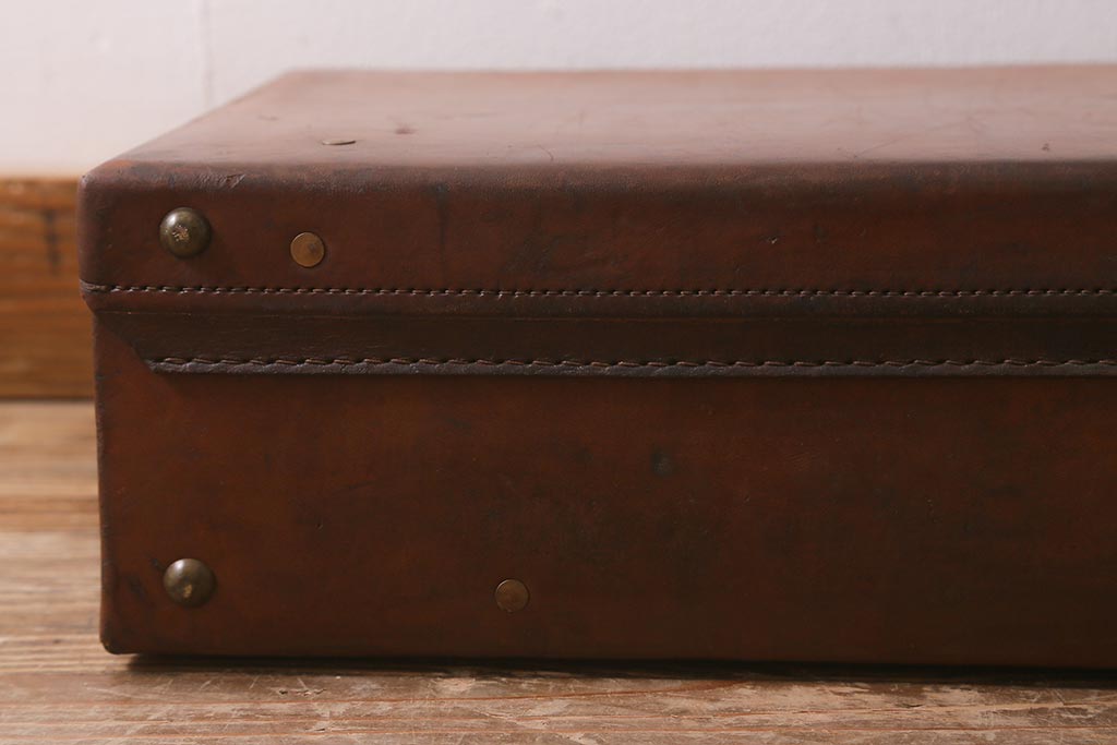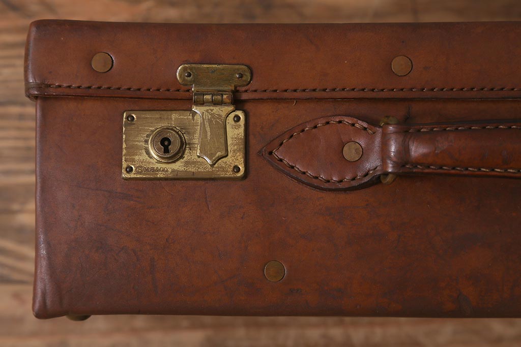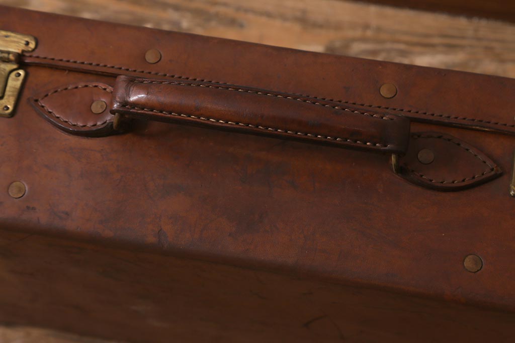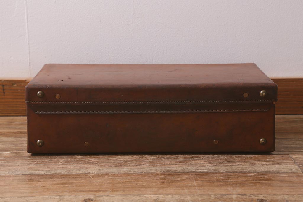 アンティーク 本革 レトロな魅力が漂うトランク(鞄、カバン、収納、ディスプレイ)(R-042823)