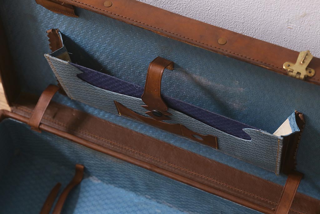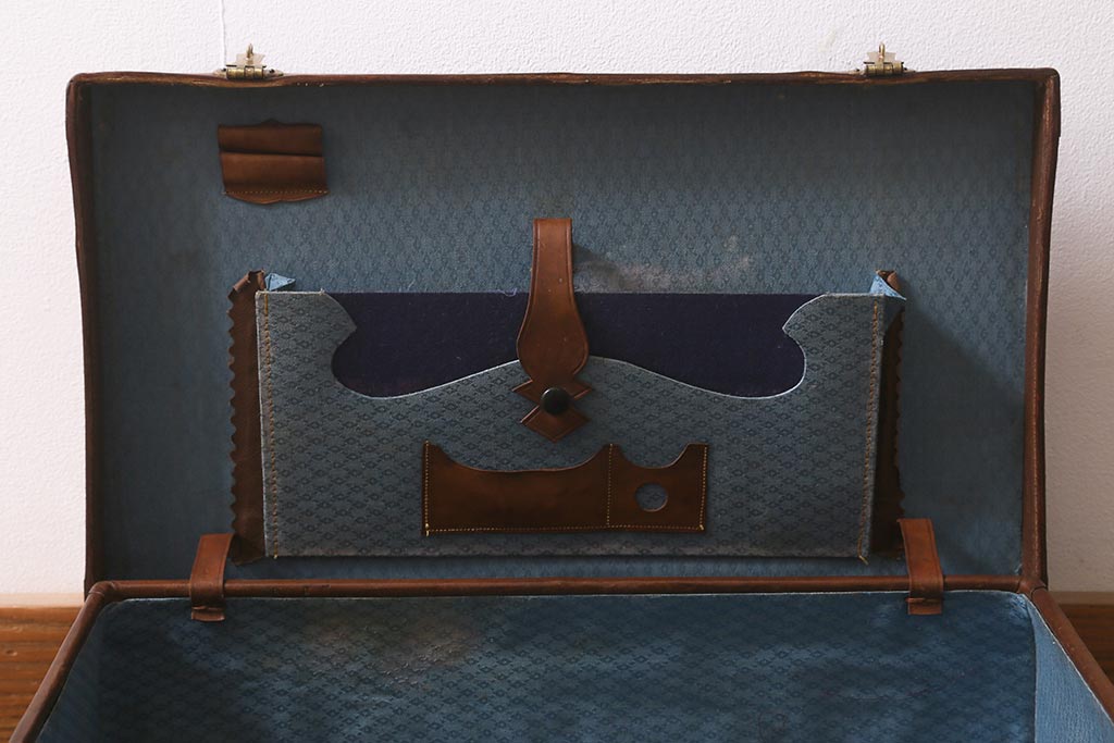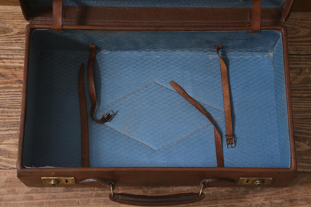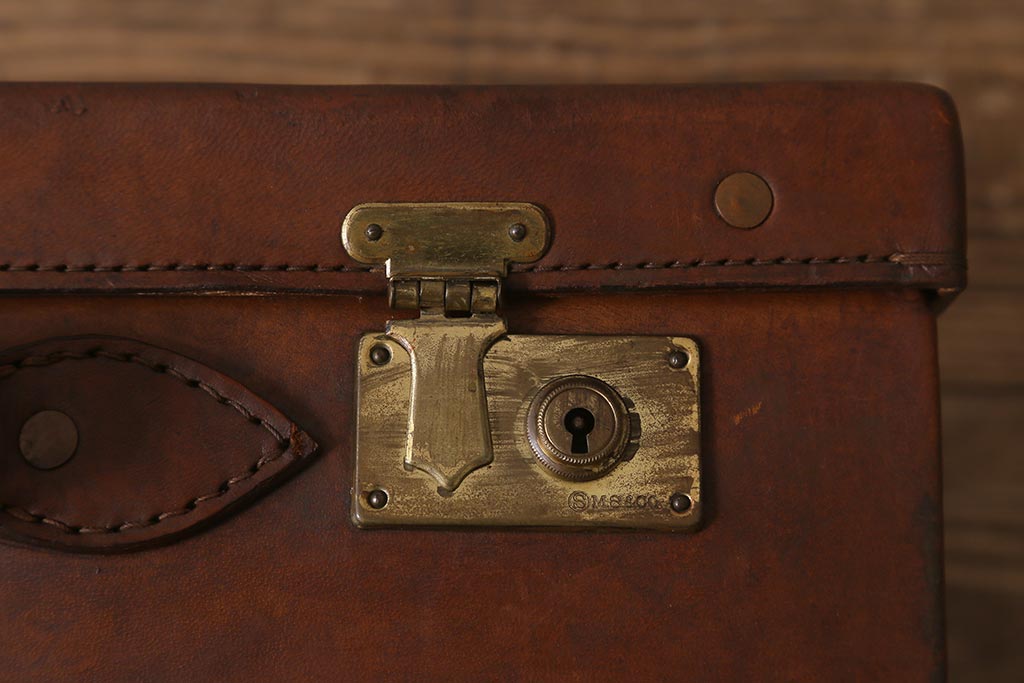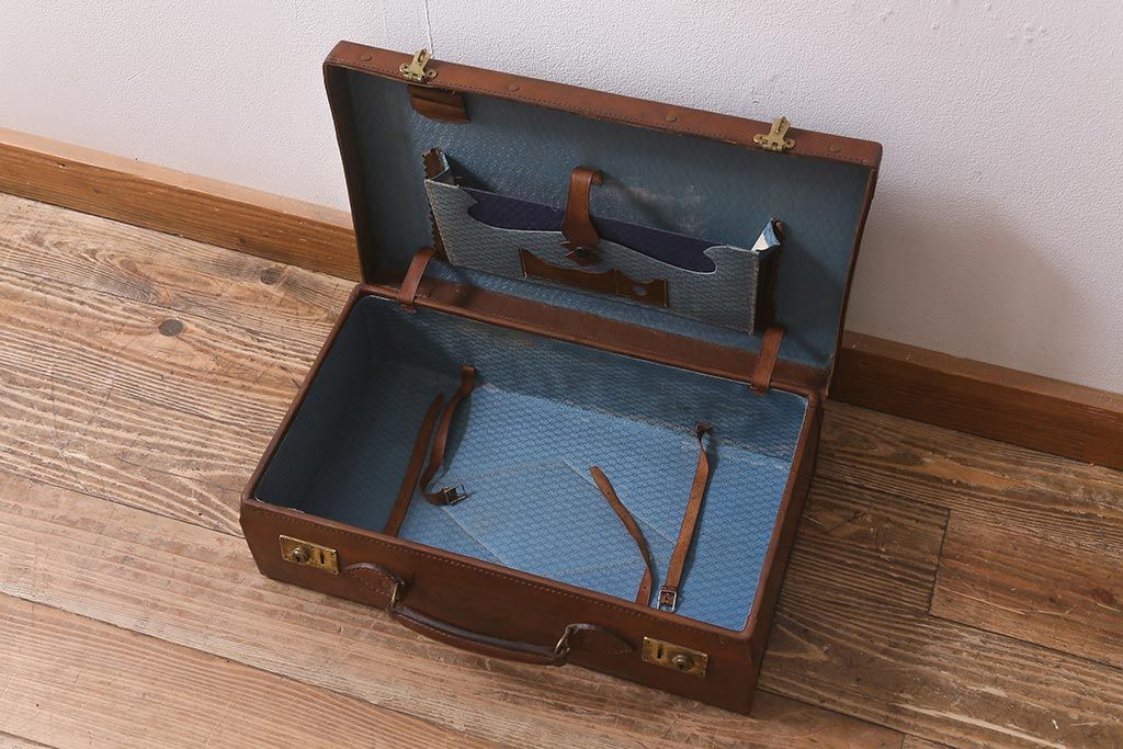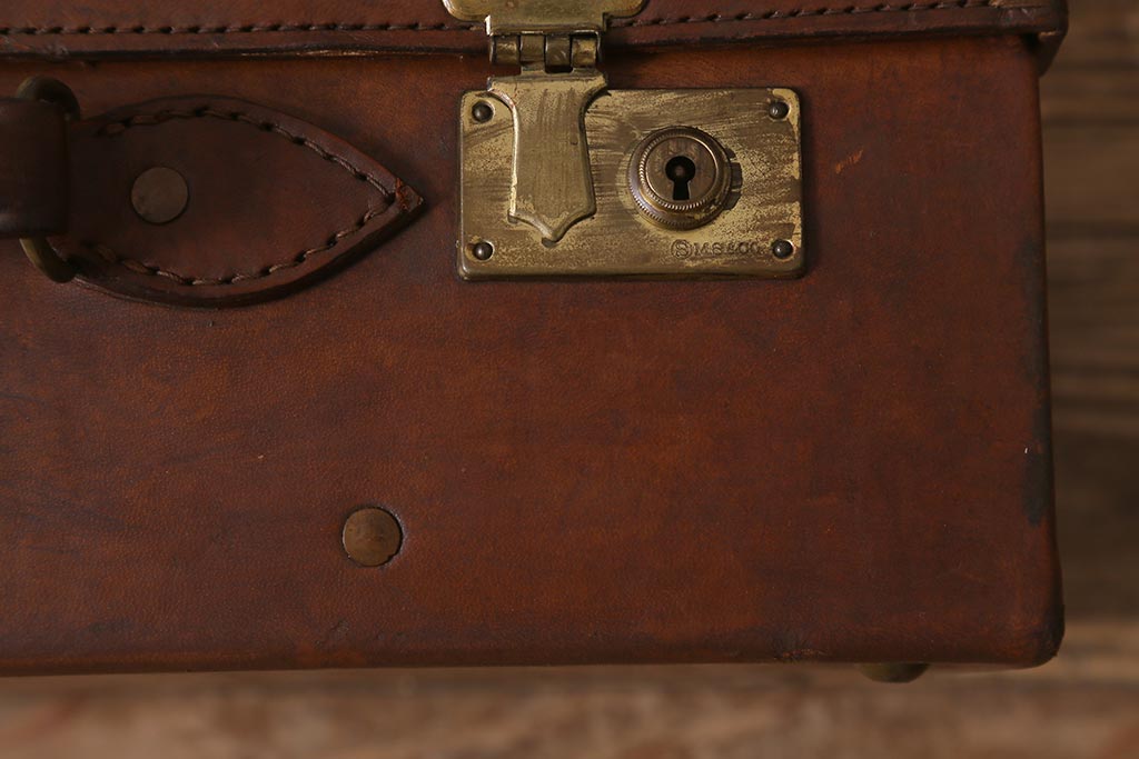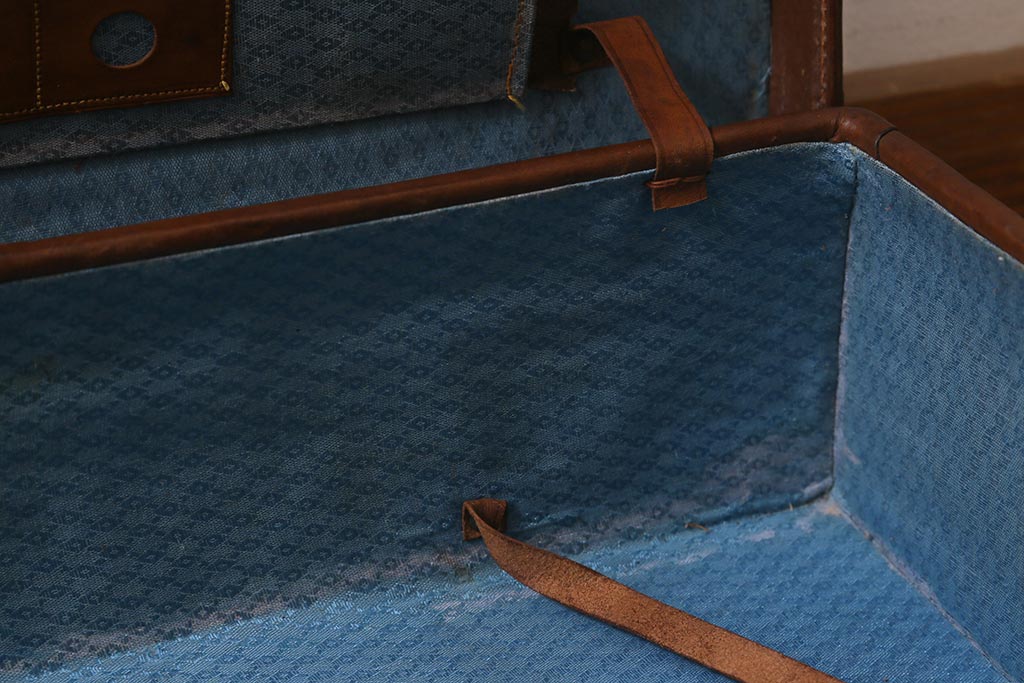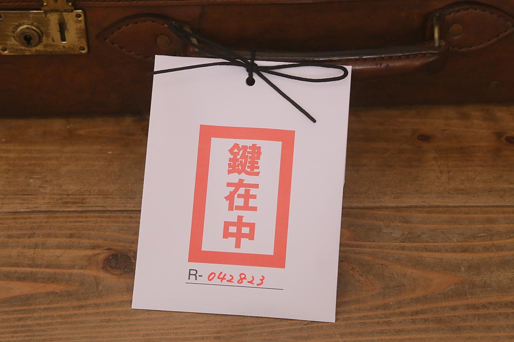アンティーク 本革 レトロな魅力が漂うトランク(鞄、カバン、収納、ディスプレイ)(R-042823)
