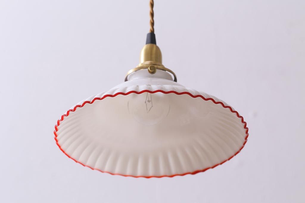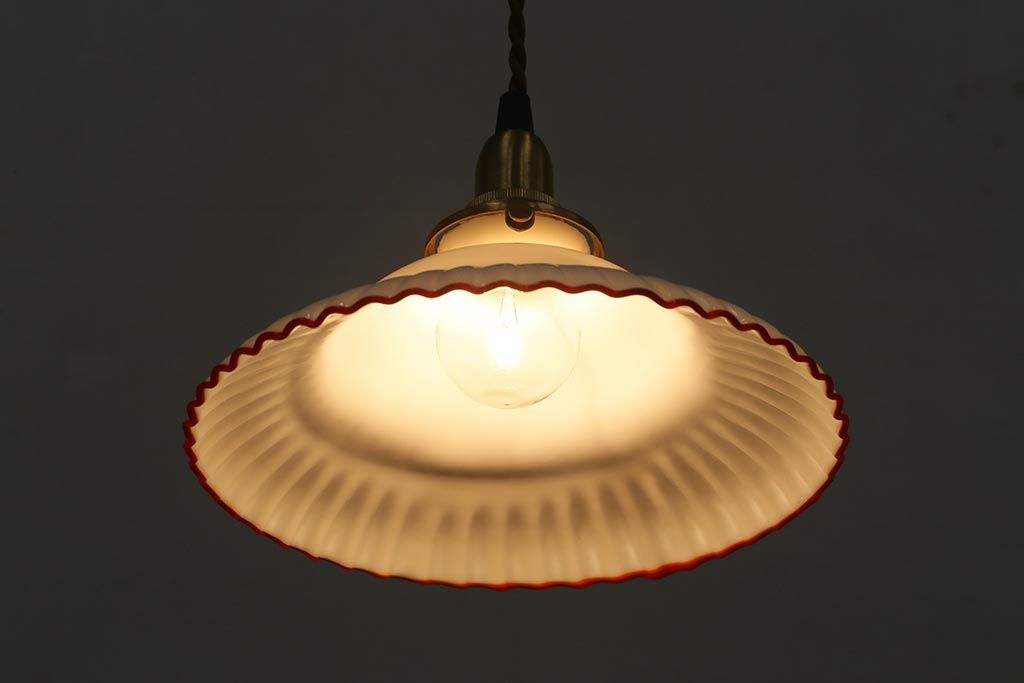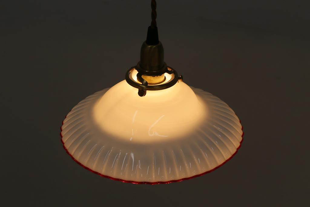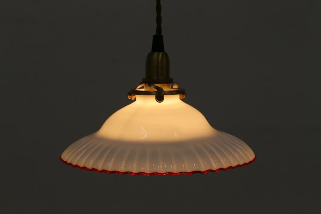 アンティーク照明 レトロ ミルクガラス 赤縁フリルのペンダントライト(ランプシェード、天井照明)(R-042861)です。
