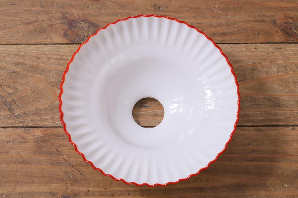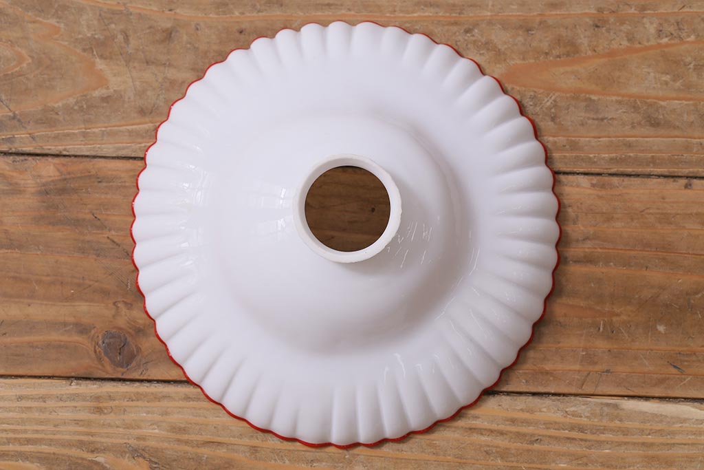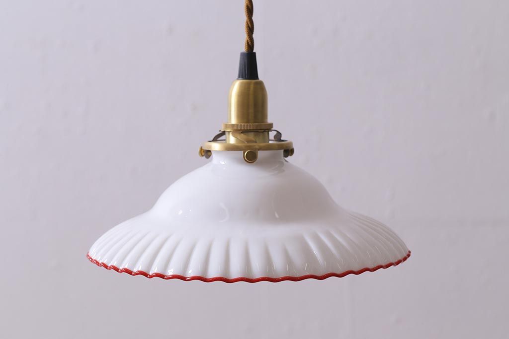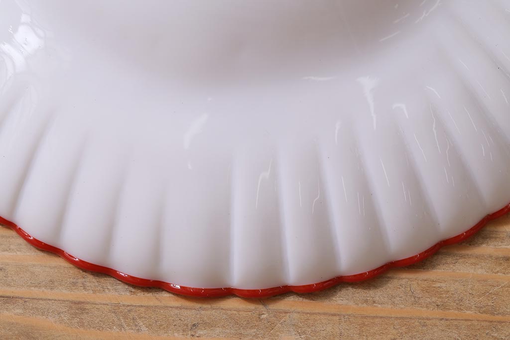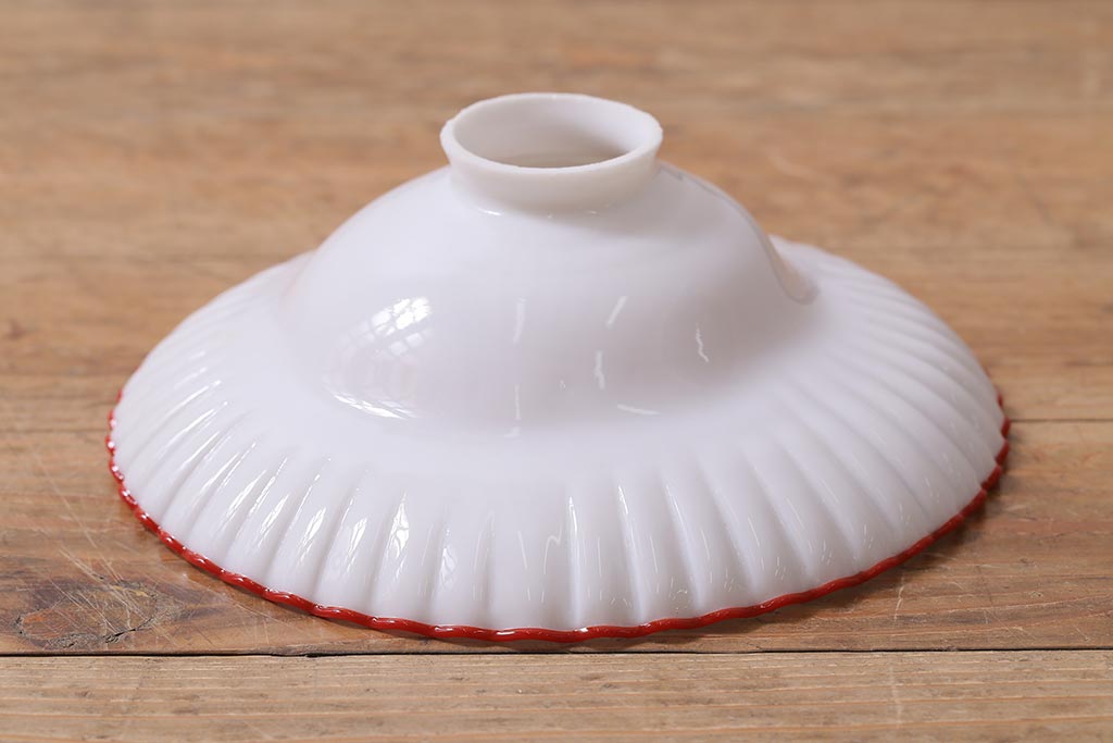 アンティーク照明 レトロ ミルクガラス 赤縁フリルのペンダントライト(ランプシェード、天井照明)(R-042861)です。