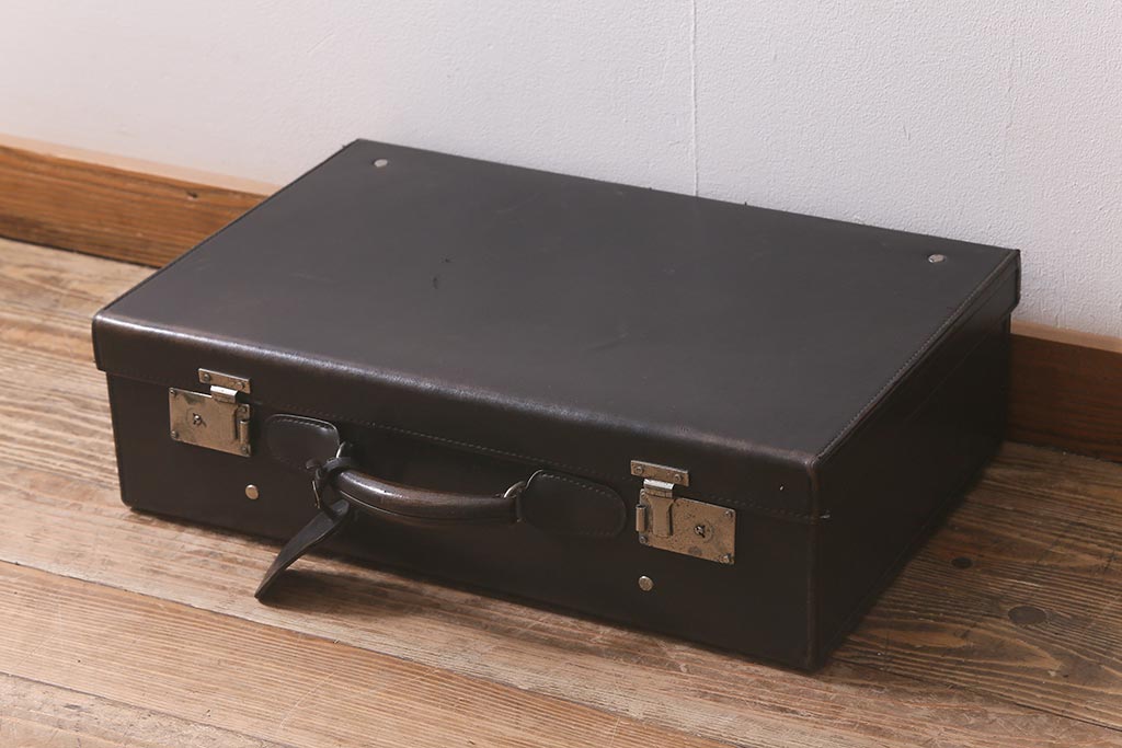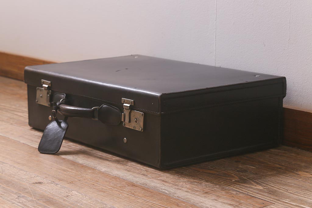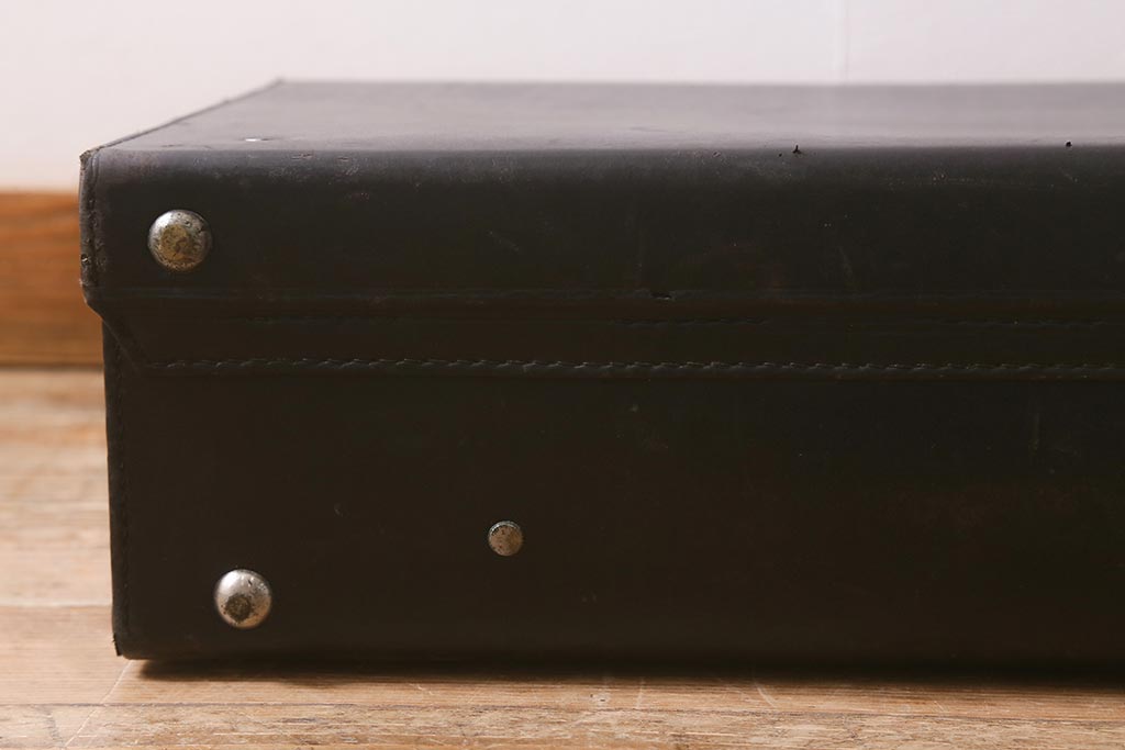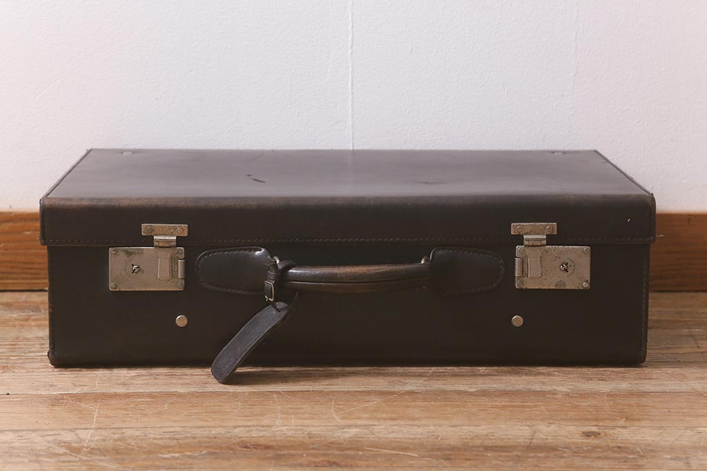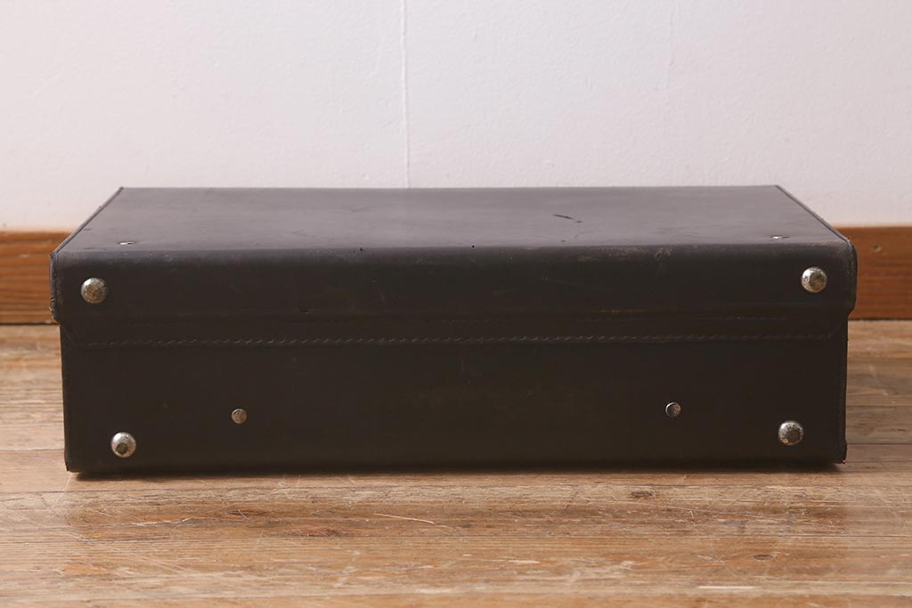 アンティーク雑貨 本革 黒いレザーが格好いいトランク(鞄、カバン、収納、ディスプレイ)(R-042821)です。