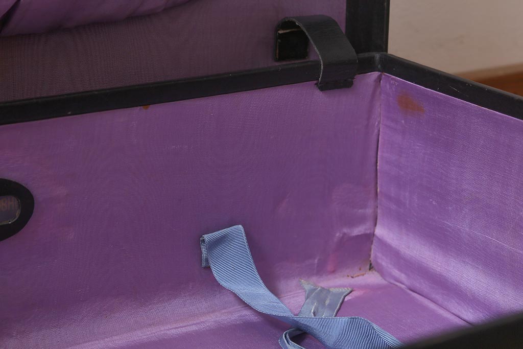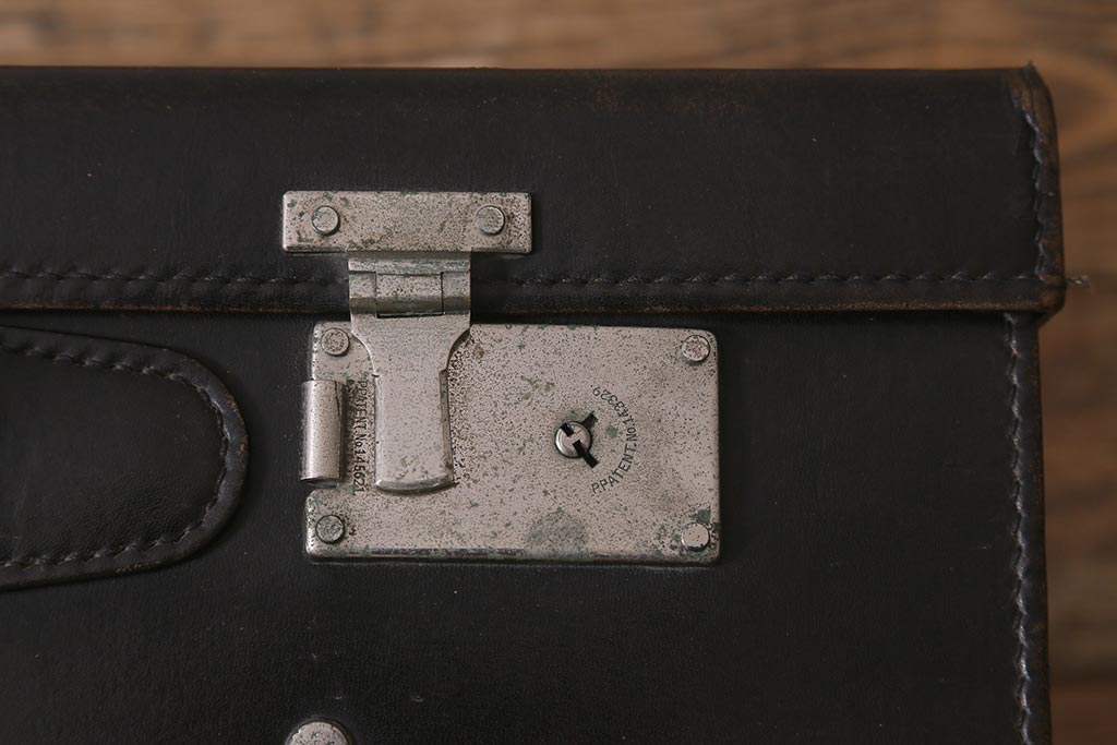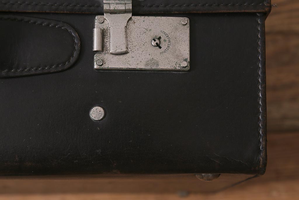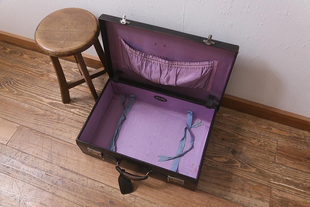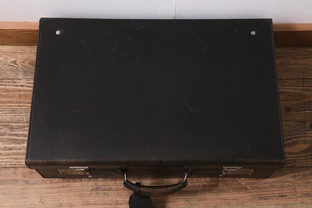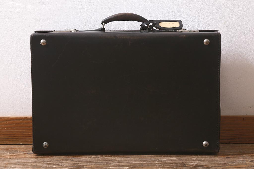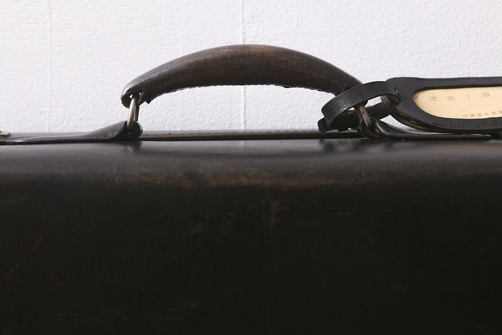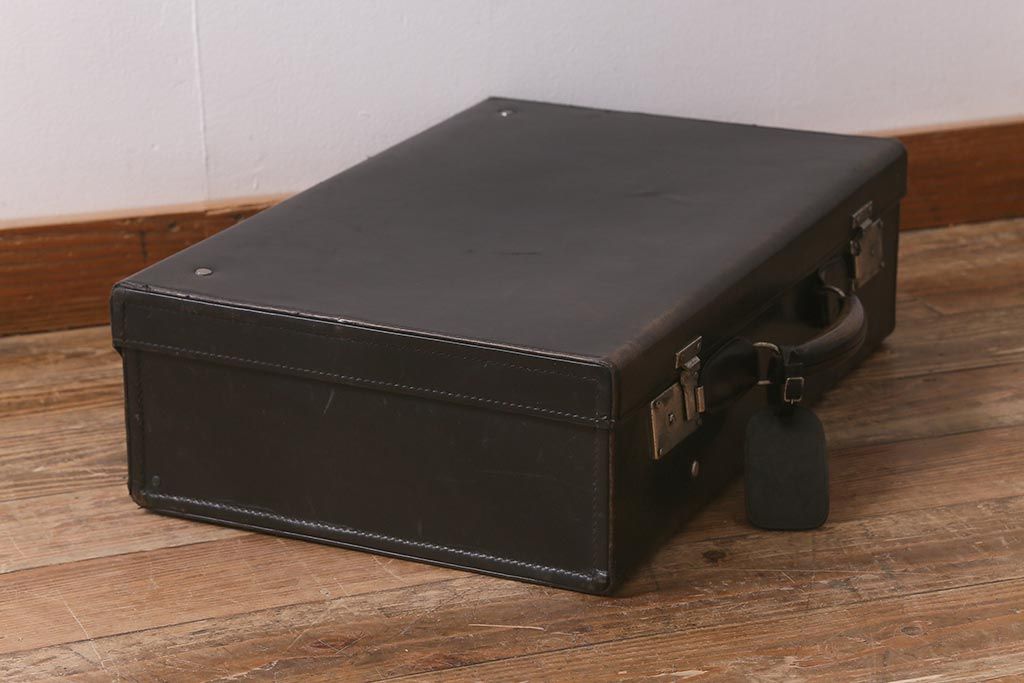 アンティーク 本革 黒いレザーが格好いいトランク(鞄、カバン、収納、ディスプレイ)(R-042821)